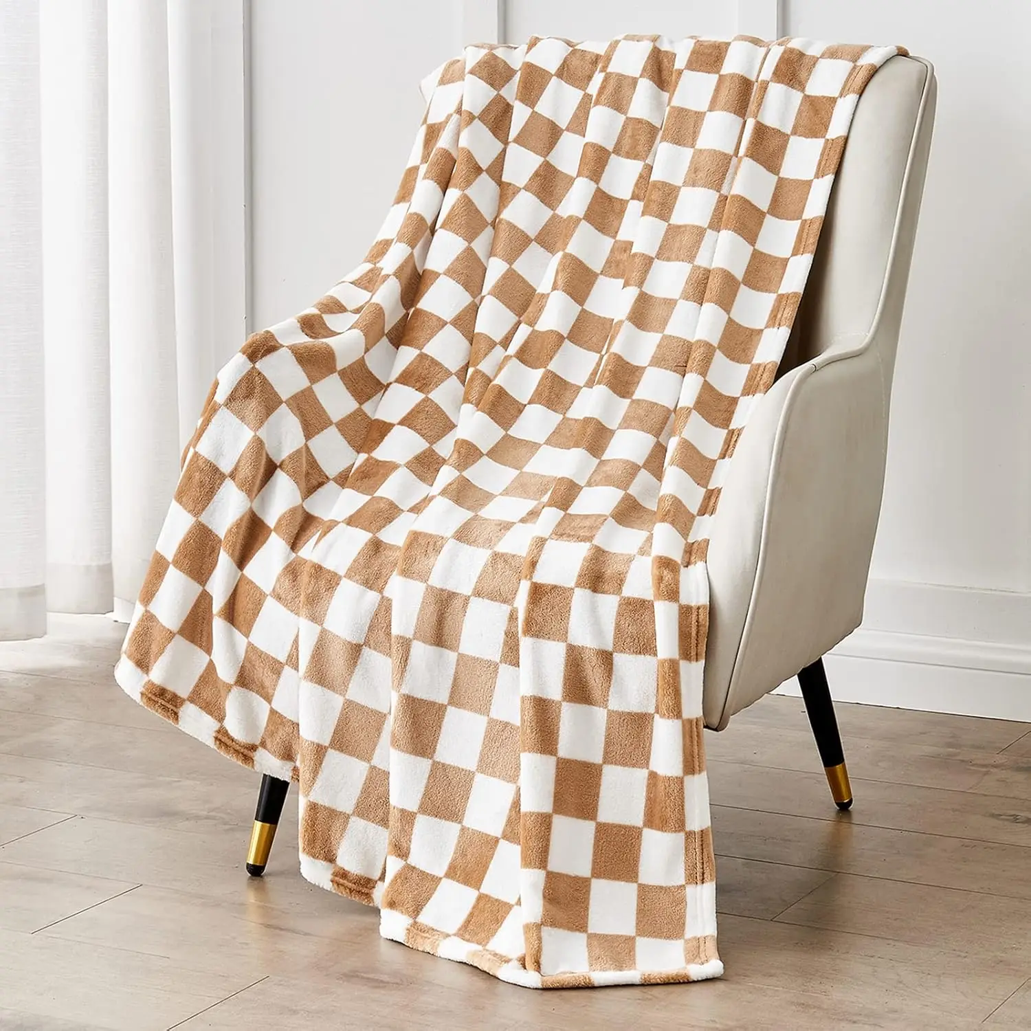 Qfdian Throw Blankets Flannel Blanket with Checkerboard Grid Pattern Soft Throw Blanket for Couch, Sofa Warm and Cozy for All Seasons