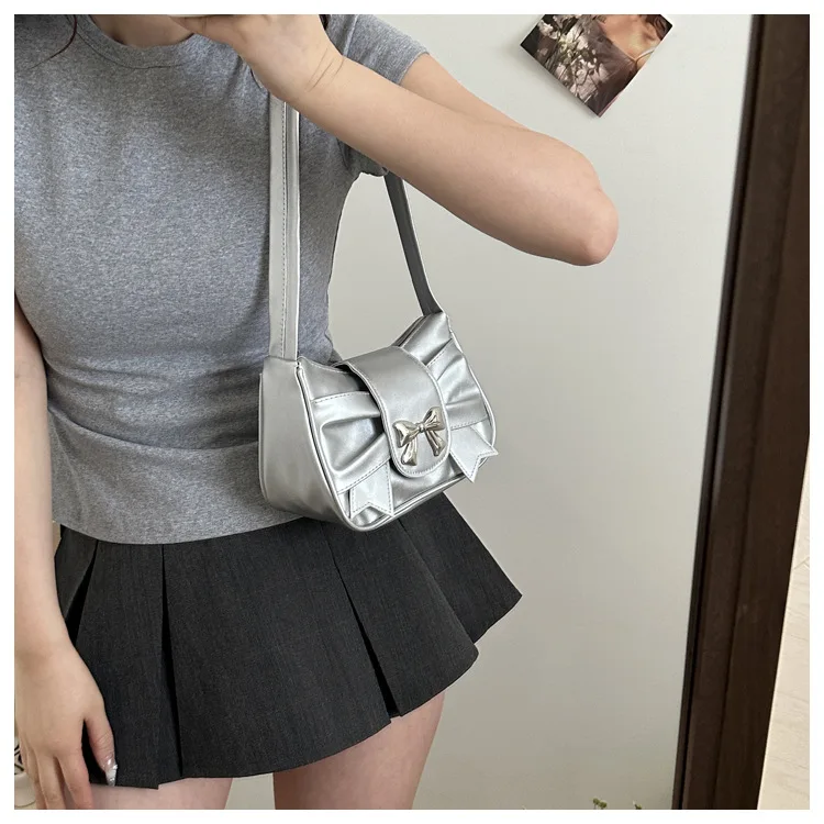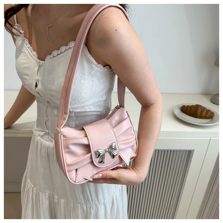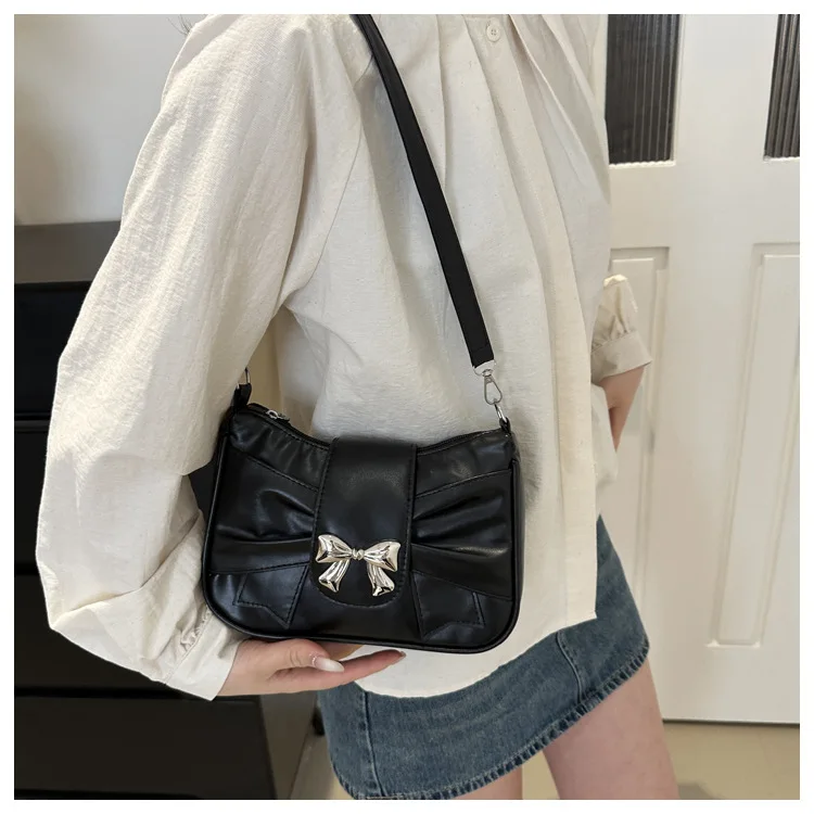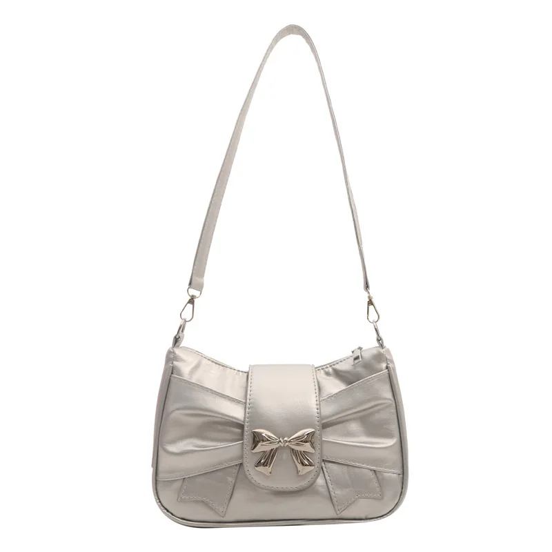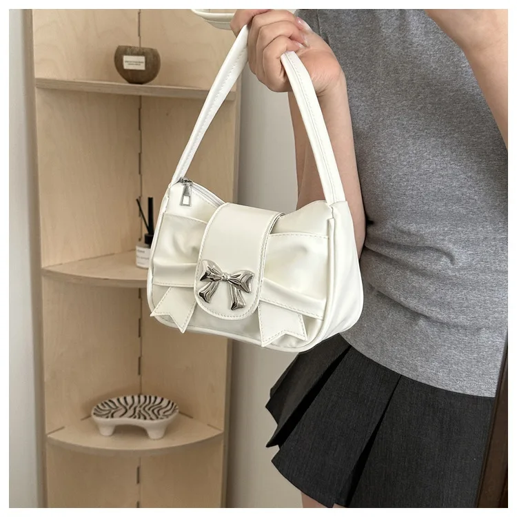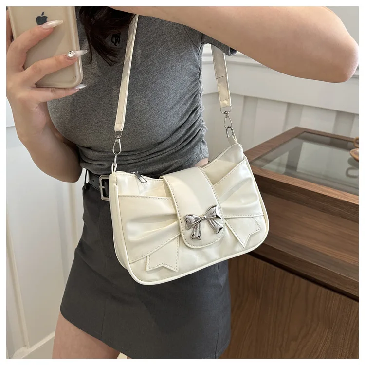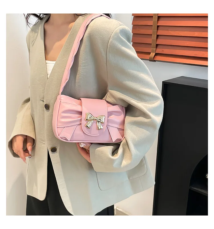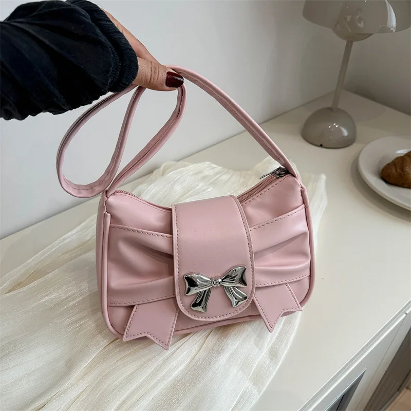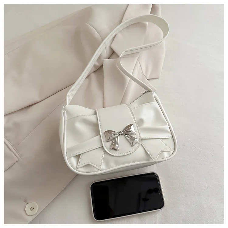 Qfdian Underarm Small Square Bag Butterfly Knot PU Single Shoulder Handbag Women's Crossbody Tote