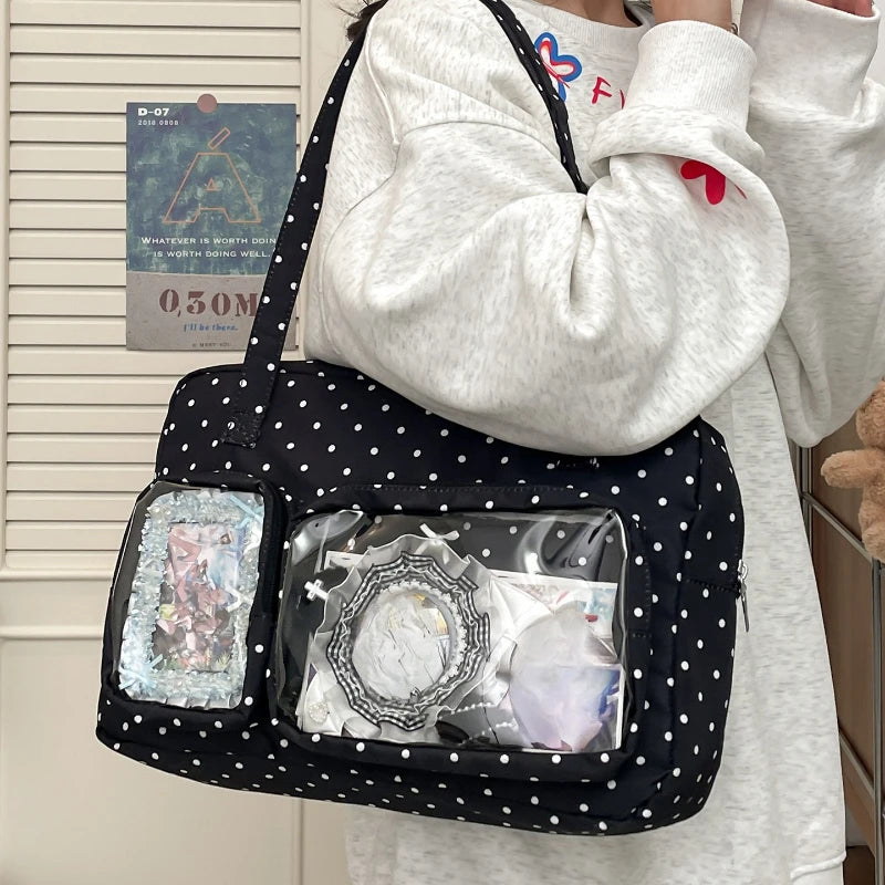 Qfdian Vintage All Match Dots Women's Handbags Casual Y2k Aesthetic Transparent Ita Bags Streetwear Fashion Ins Shoulder Underarm Bag
