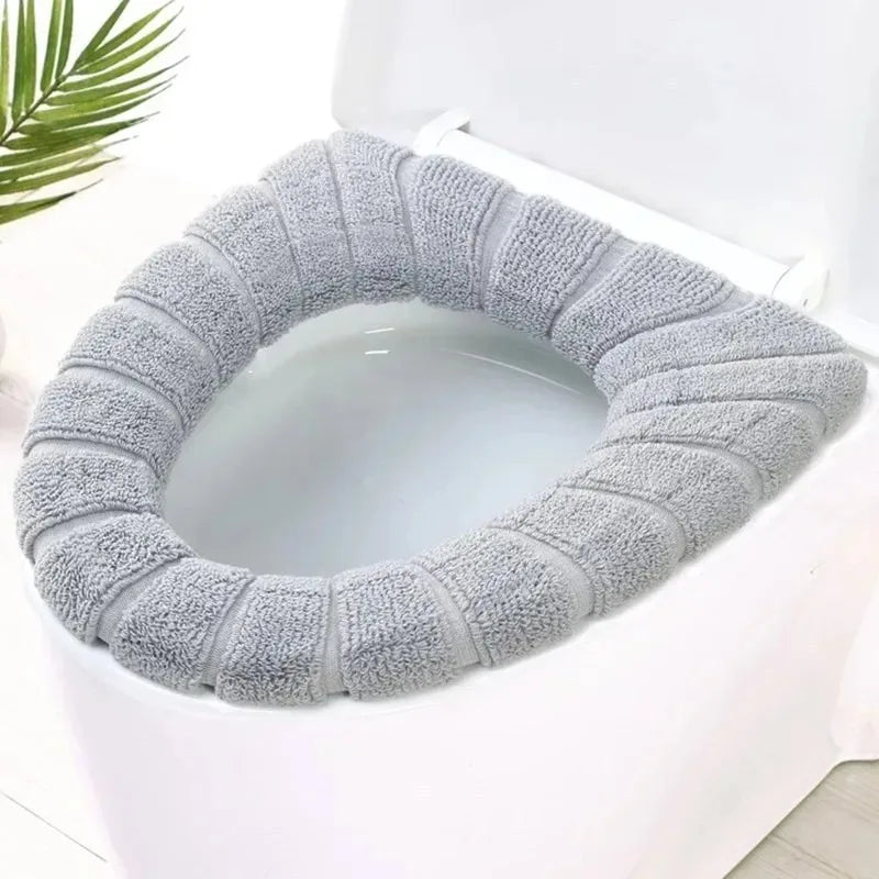 Qfdian Washable Knitting Pure Color Soft Pad Toilet Seat Soft Thick Warm And Comfortable Pumpkin Shape Cover Closestool Mat Universal