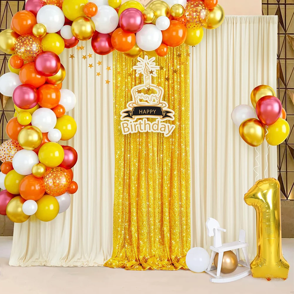 Polyester Curtain Backdrop Make Your Party Pops:You can add some flowers,greenery,balloons, party streamers, fun banners, balloon arch, butterflies, paper stars, tissue paper flower prop, confetti,twinkle lights to make your polyester backdrop for a gorgeous look! Drapes can be hand wash or machine wash.