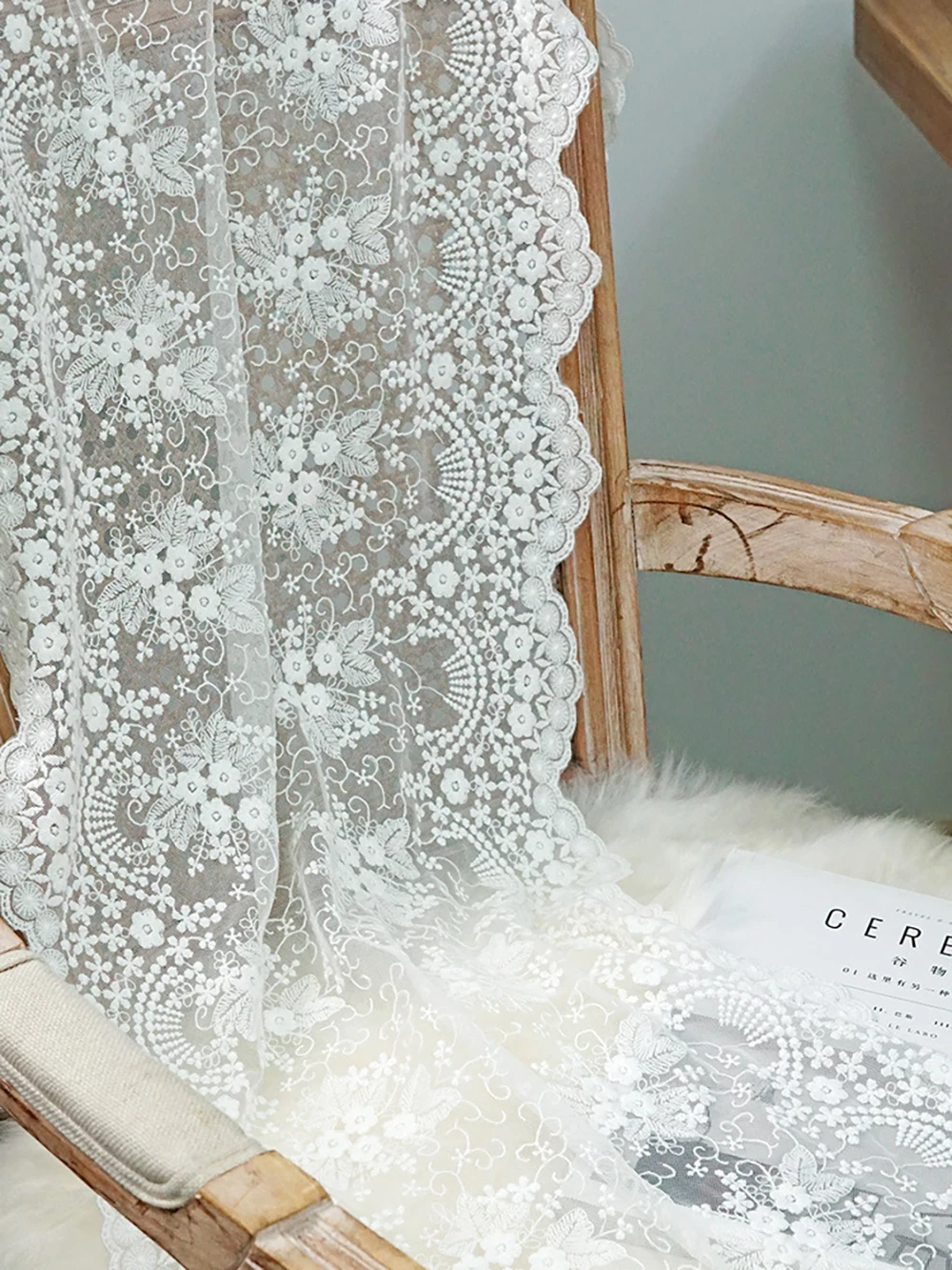EXQUISITELY EMBROIDERED FLORAL PATTERN: the vintage table runner is heavily embroidered with elegant flower patterns in soft lace fabric, which adds a perfect touch of chic and elegance to your table setting. Matching this antique lace runner with a linen tablecloth or a farmhouse wooden table will bring you an unexpected aesthetic of vintage and elegance.
