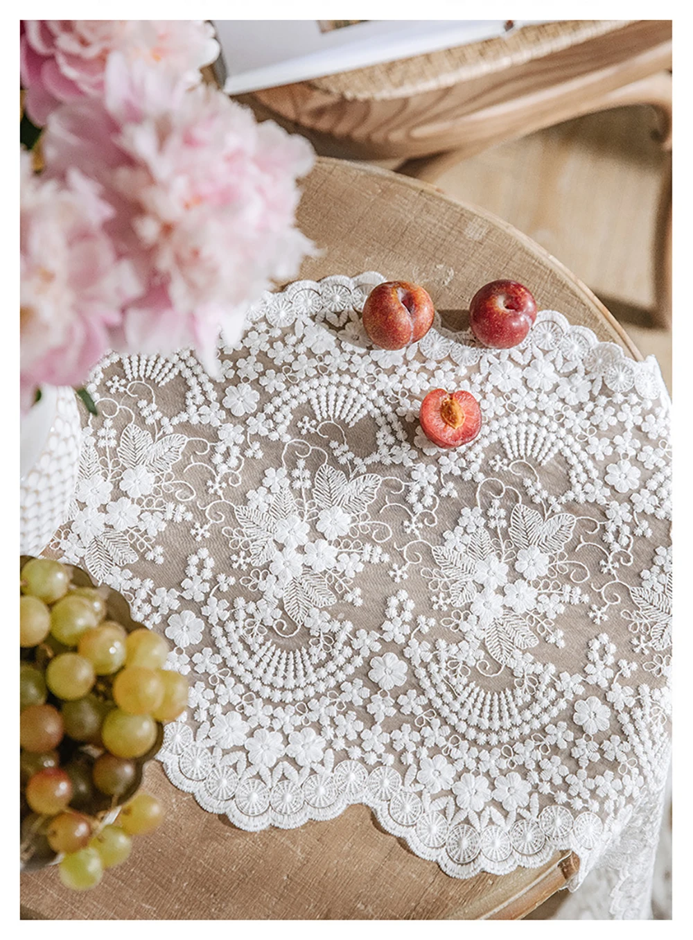 Qfdian White Lace Table Runner Floral Embroidered Tables Lace Doilies Dressers End Tables for Wedding Decorations Tea Party Baby Shower