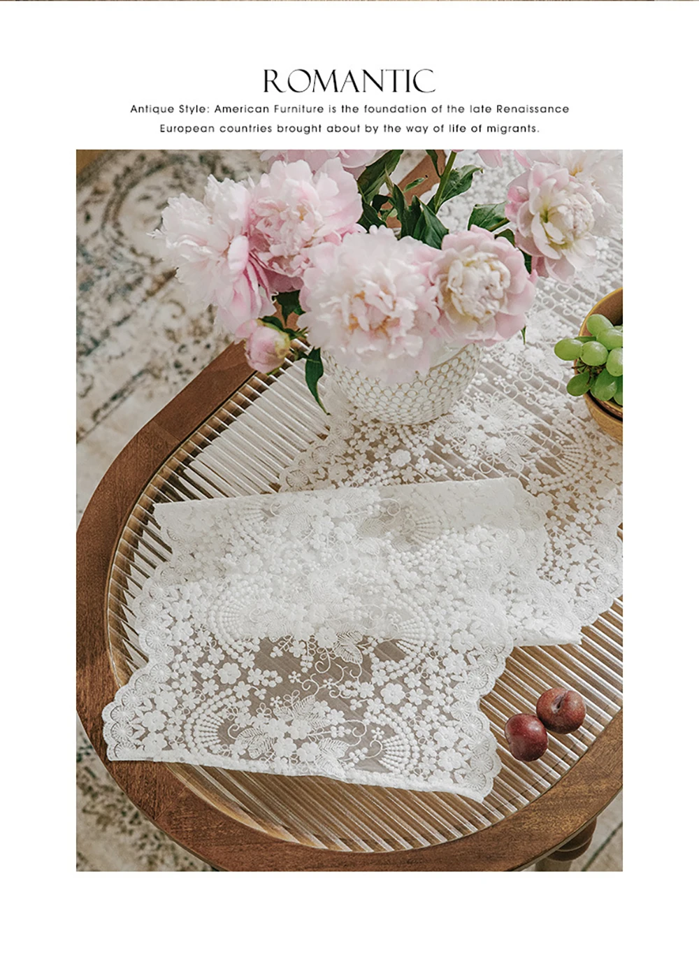 ELEGANT LACE: nothing is more suitable than an embroidered lace table runner to add atmosphere and dimension to your dinning table and kitchen. Home is where we live with all the little things that make us happy.