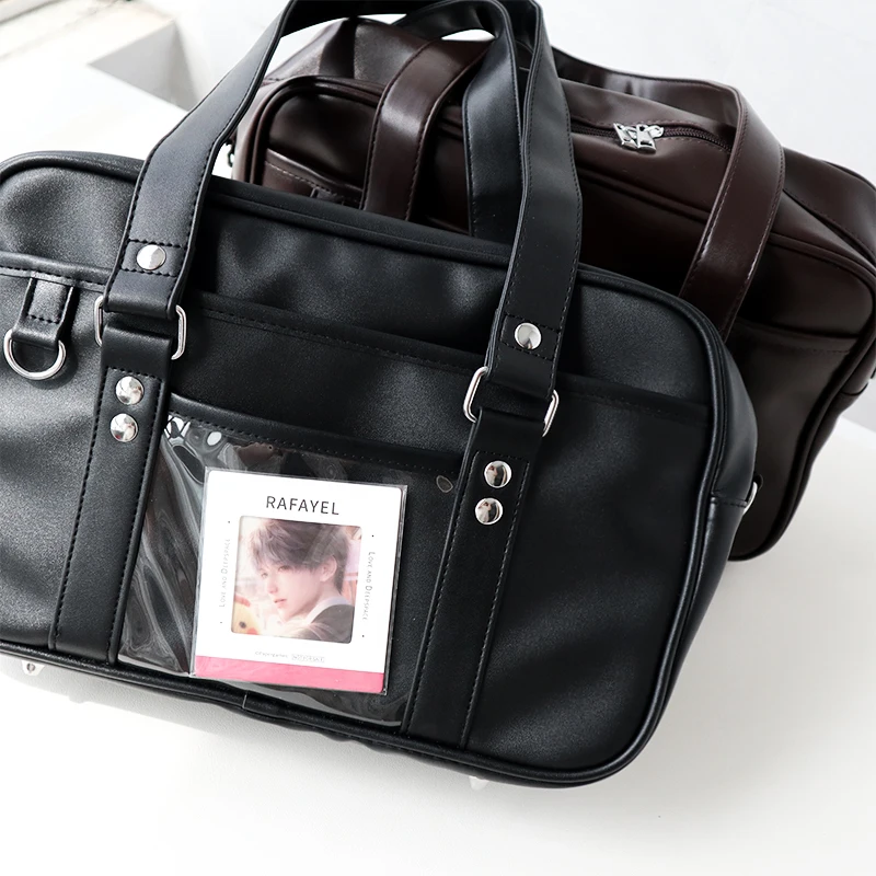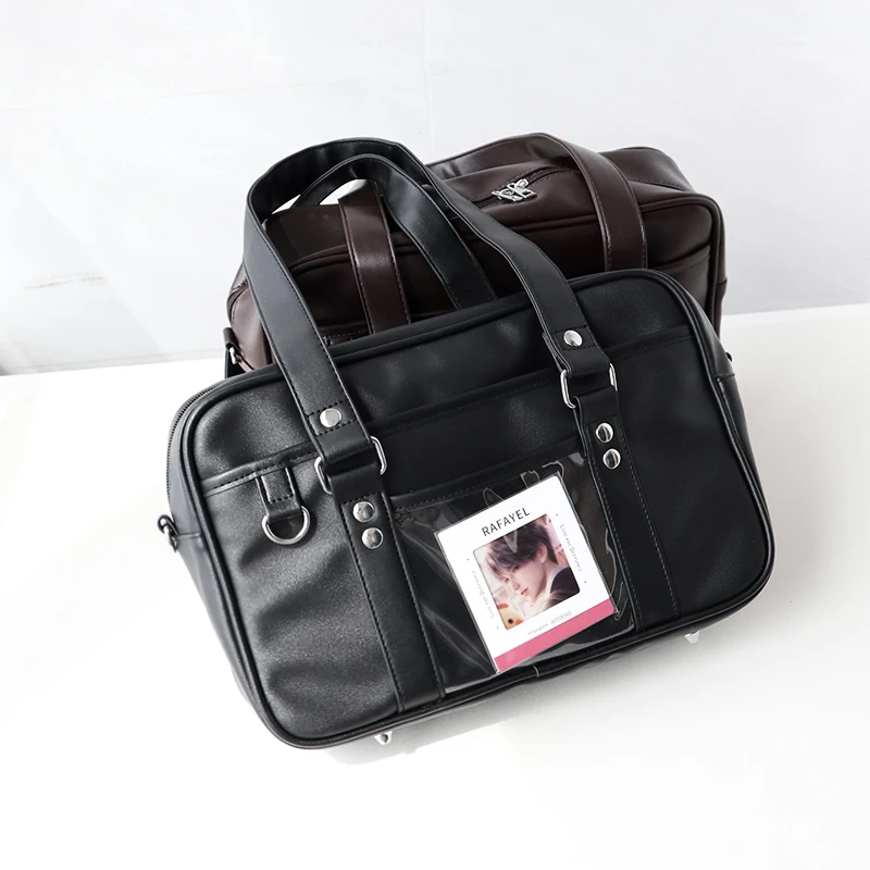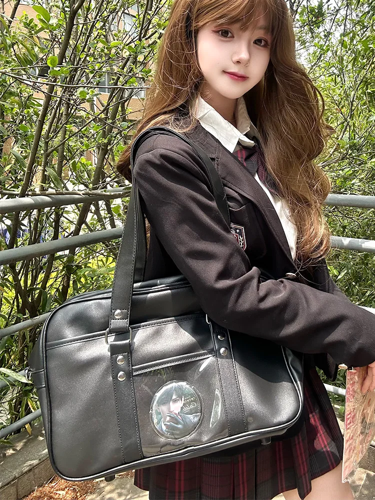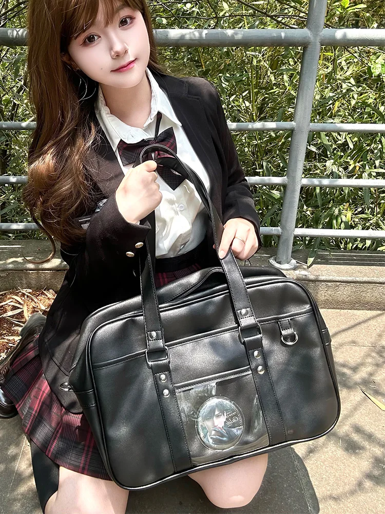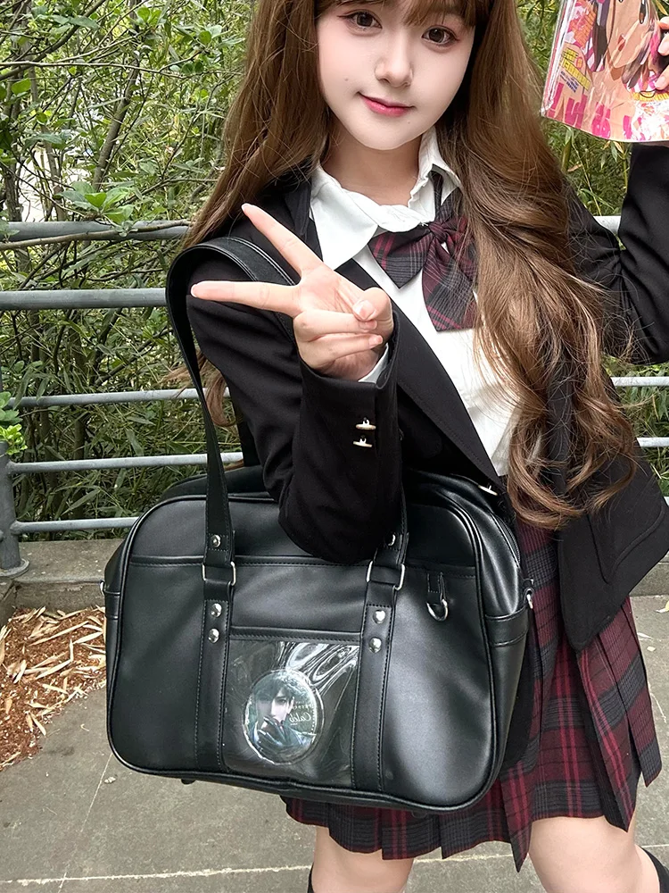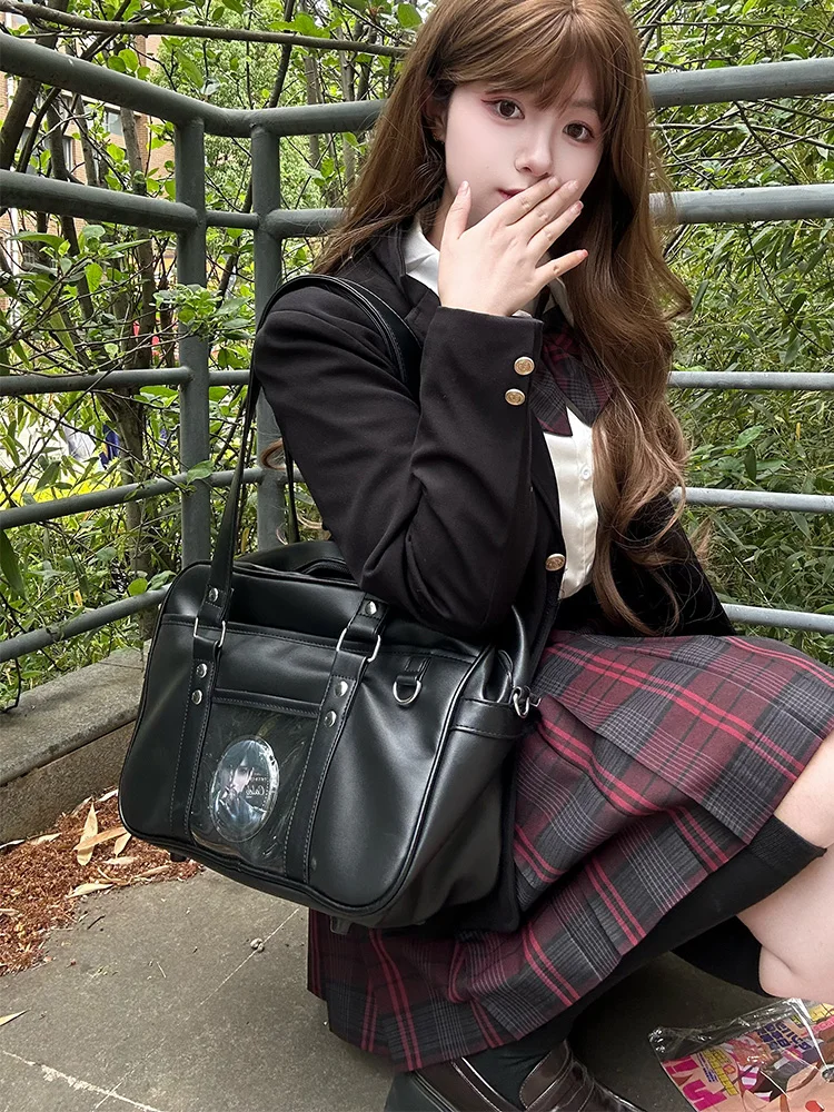 Qfdian Y2k Aesthetic Jk Casual Ita Bags Preppy Vintage All Match Pu Women's Handbags Japanese Preppy Transparent Shoulder Underarm Bag