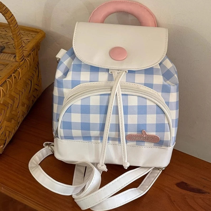 Qfdian Y2k Aesthetic Mini All Match Backpacks Contrast Color Plaid Fashion Casual Preppy Schoolbags Japanese Kawaii Chic Bags for Women