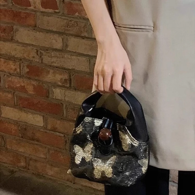 Qfdian Y2k Harajuku Butterfly Purses Luxury Design Mini Handbags Vintage Fashion Ins Top-Handle Bag All Match Shoulder Crossbody Bags