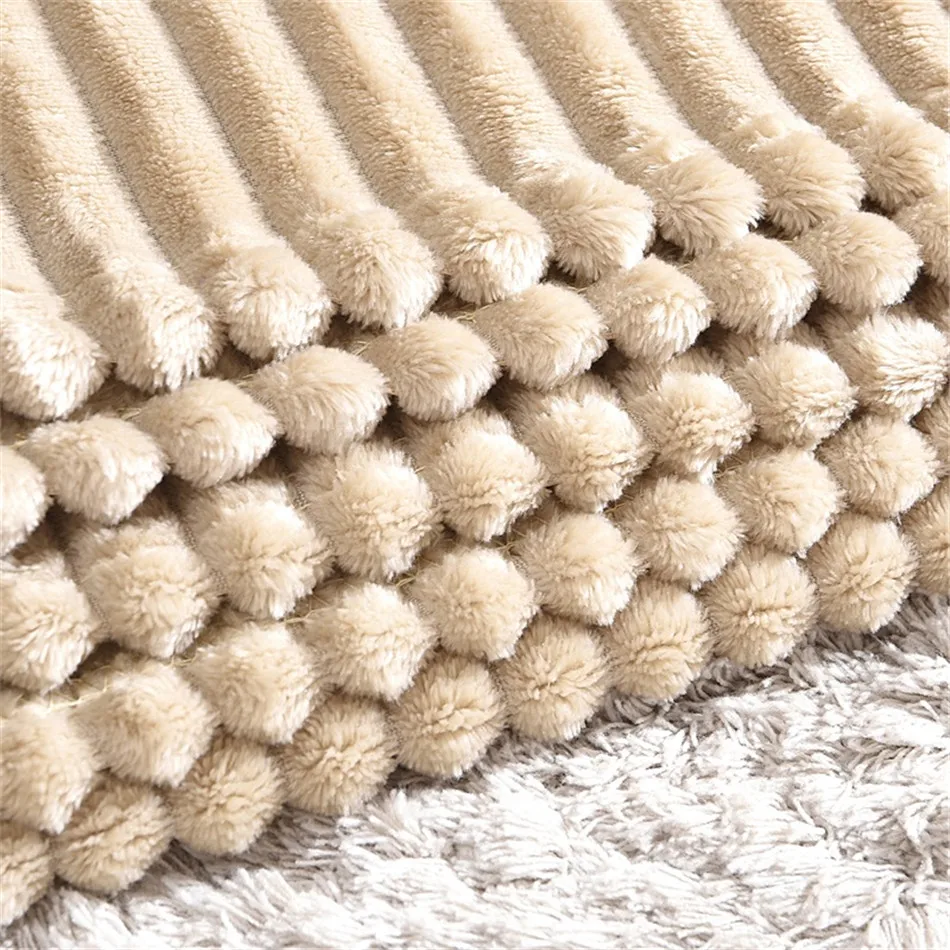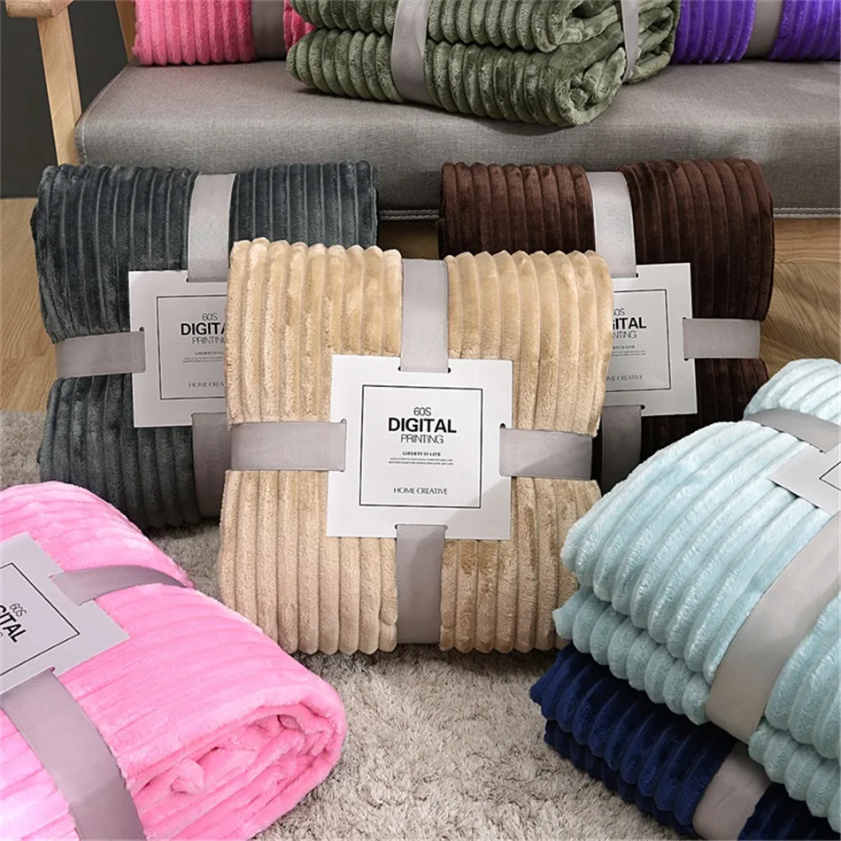 Flannel Winter Bed Blanket Super Soft Throw Blankets Solid Striped Fluffy Bed Cover Home Sheets Warm Bedspread For Sofa Bedroom