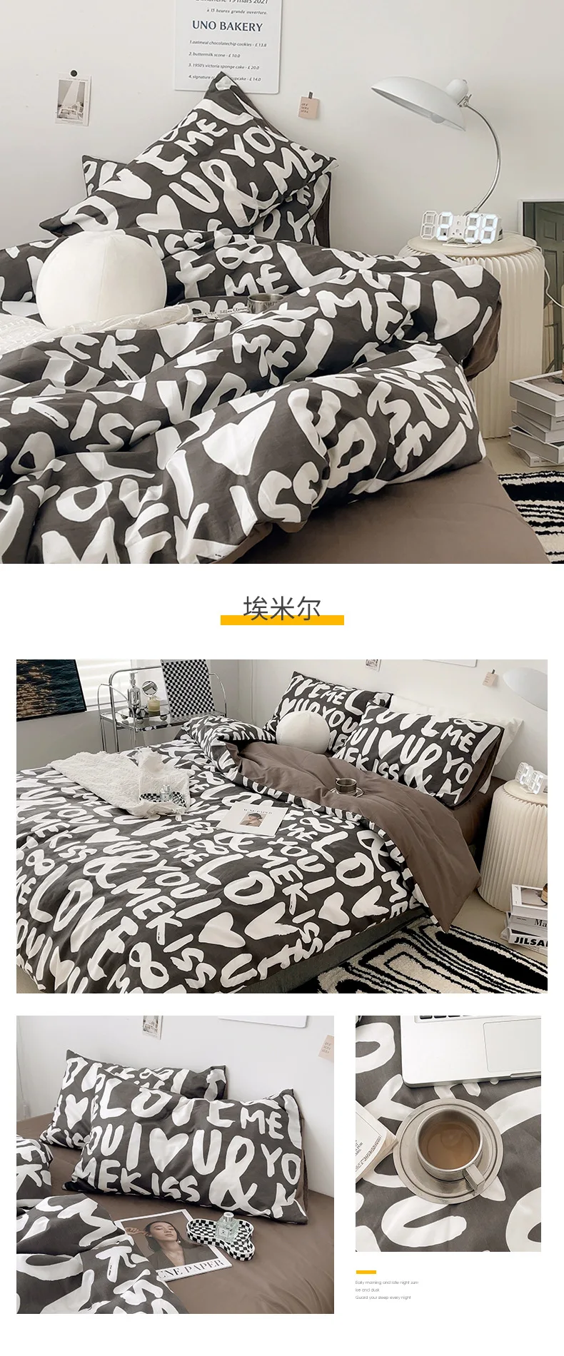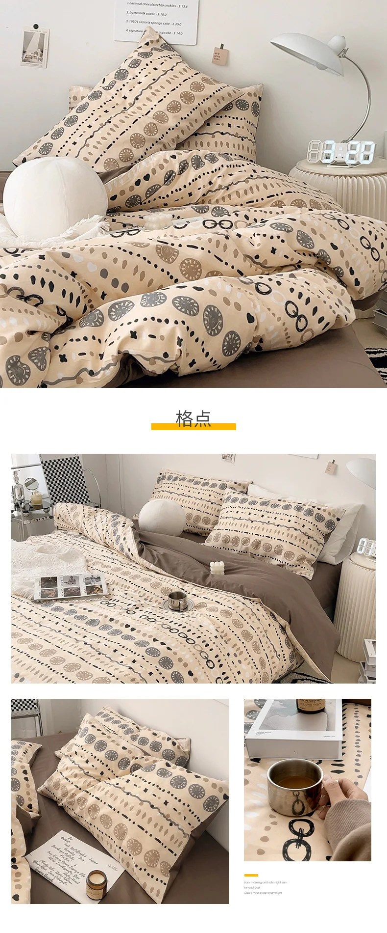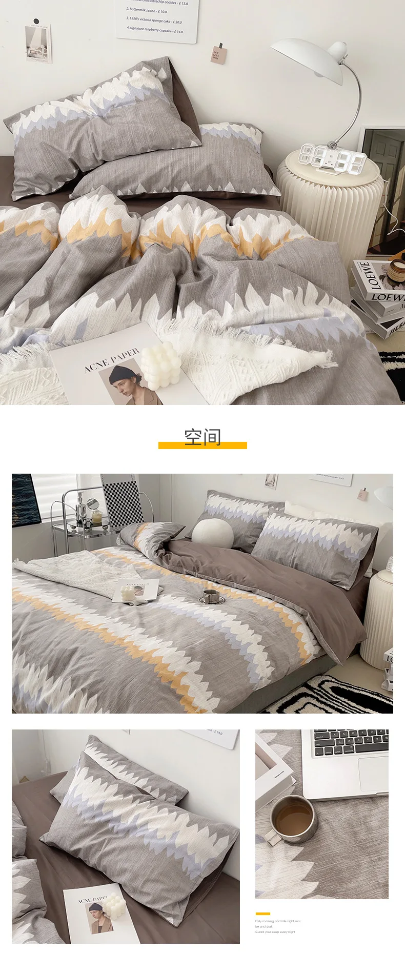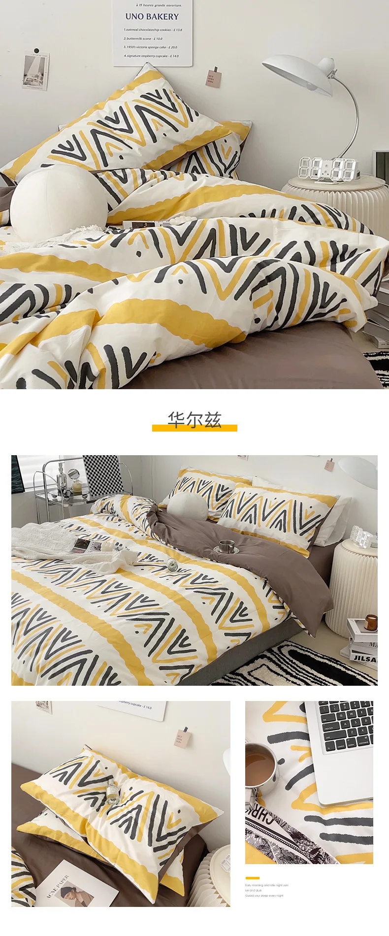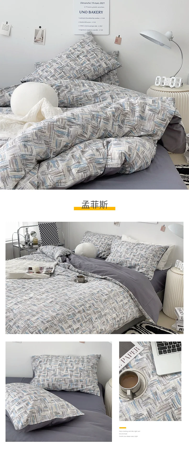 Qfdian Classic Stripes Bedding Set Soft Pure Cotton Breathable Flat Sheet Duvet Cover Pillowcases Single Queen Size Dormitory Bed Linen