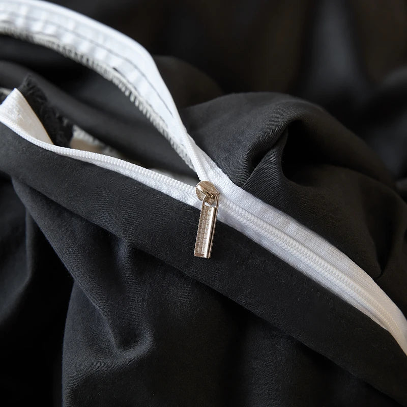 Qfdian Jacquard Duvet Cover Set with Lace Washed Cotton Queen/King Size Black Comforter Cover housse de couette 220x240 Luxury Bedding