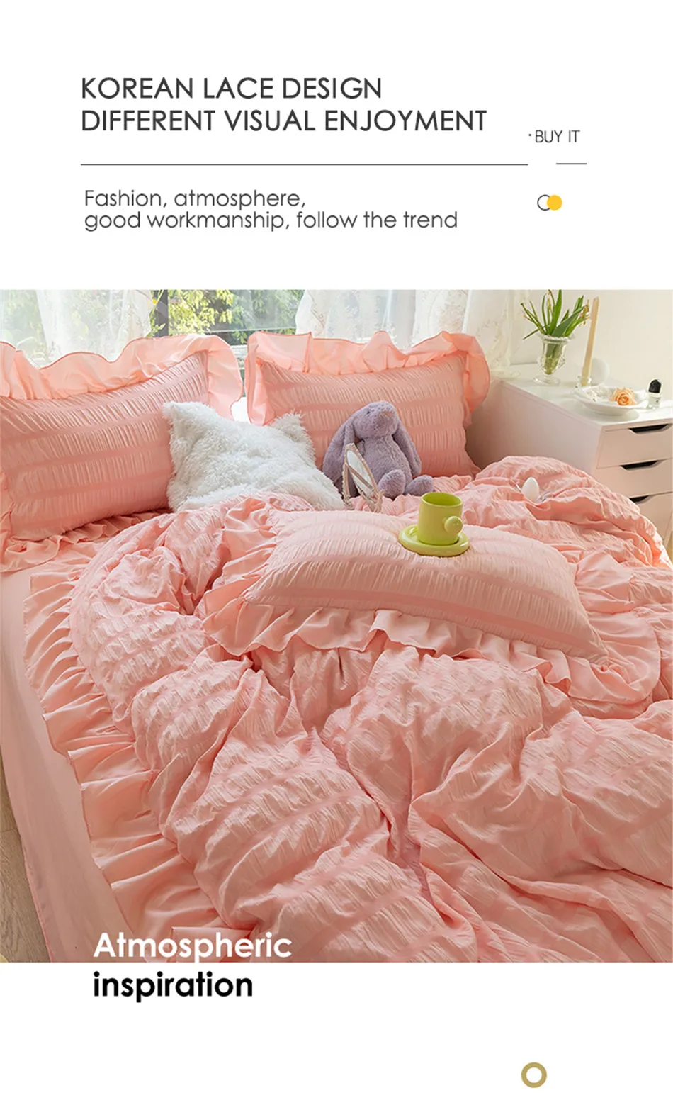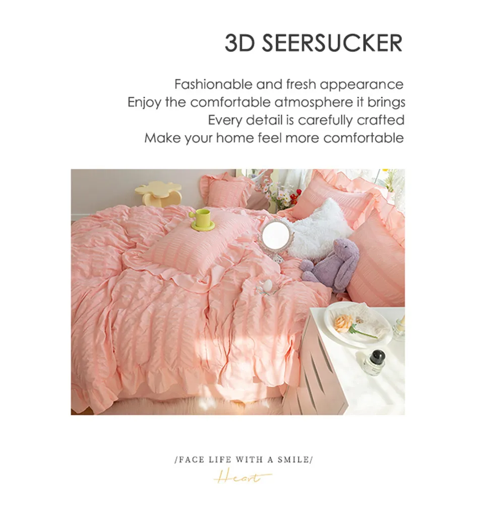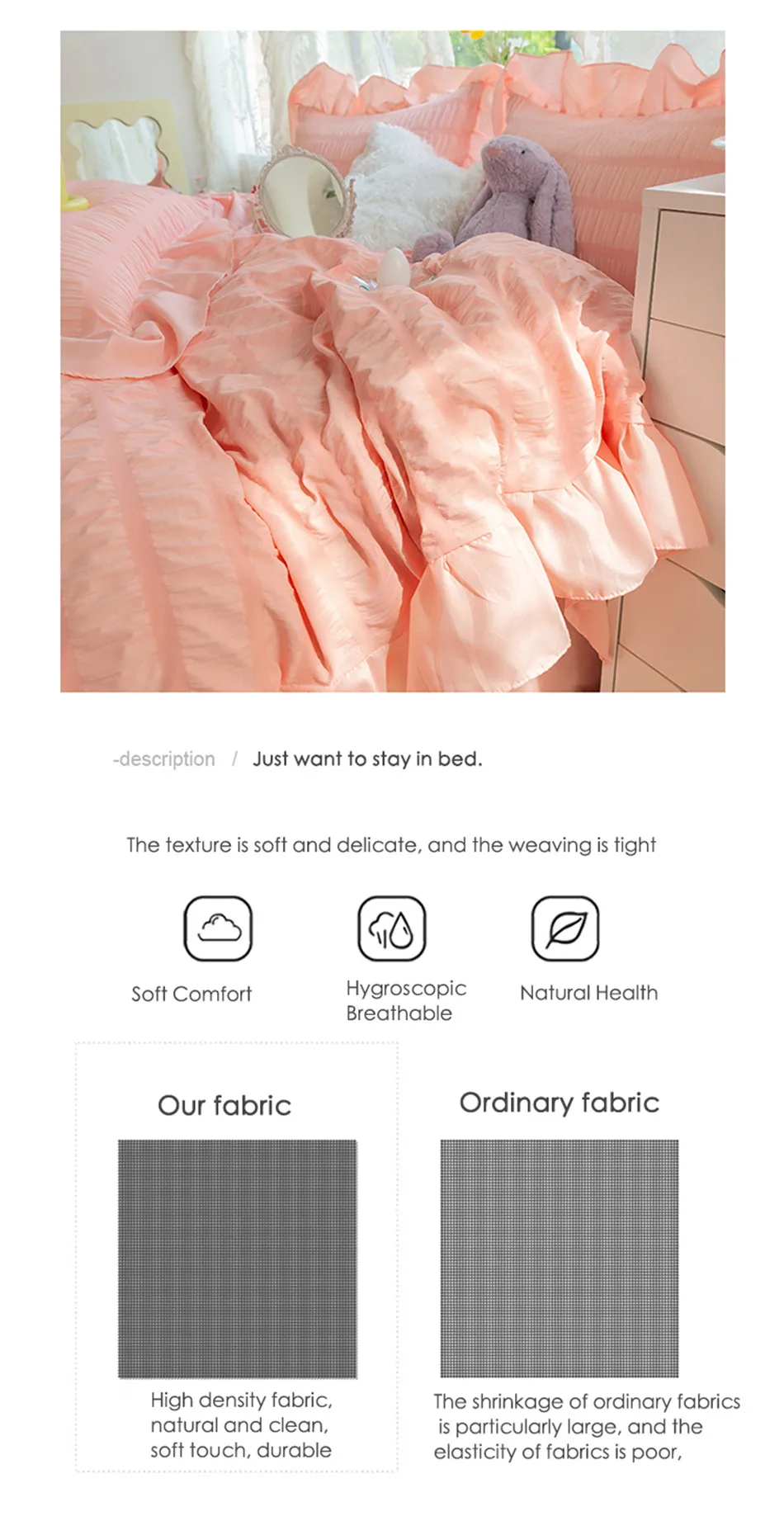 2. Compared to the other same solid color products, the seemingly irregular folds are embellished with the unique individuality and artistic sense of the duvet cover, which makes it look more beautiful.