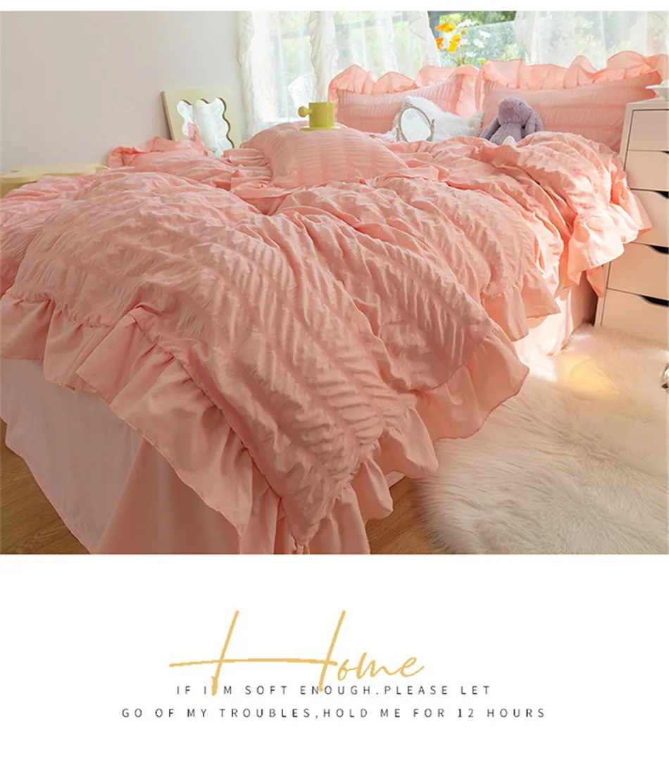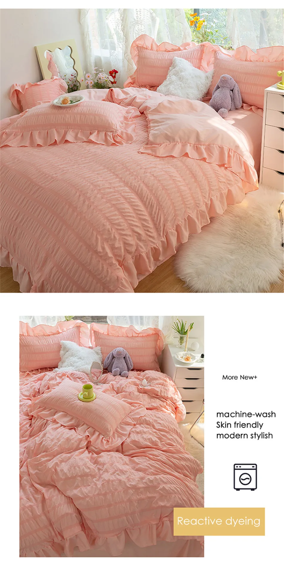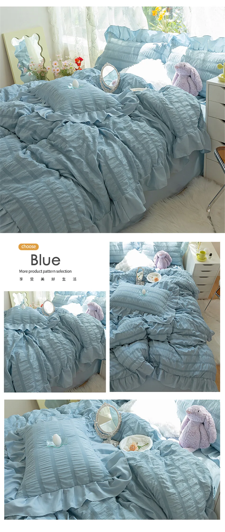 2. Compared to the other same solid color products, the seemingly irregular folds are embellished with the unique individuality and artistic sense of the duvet cover, which makes it look more beautiful.