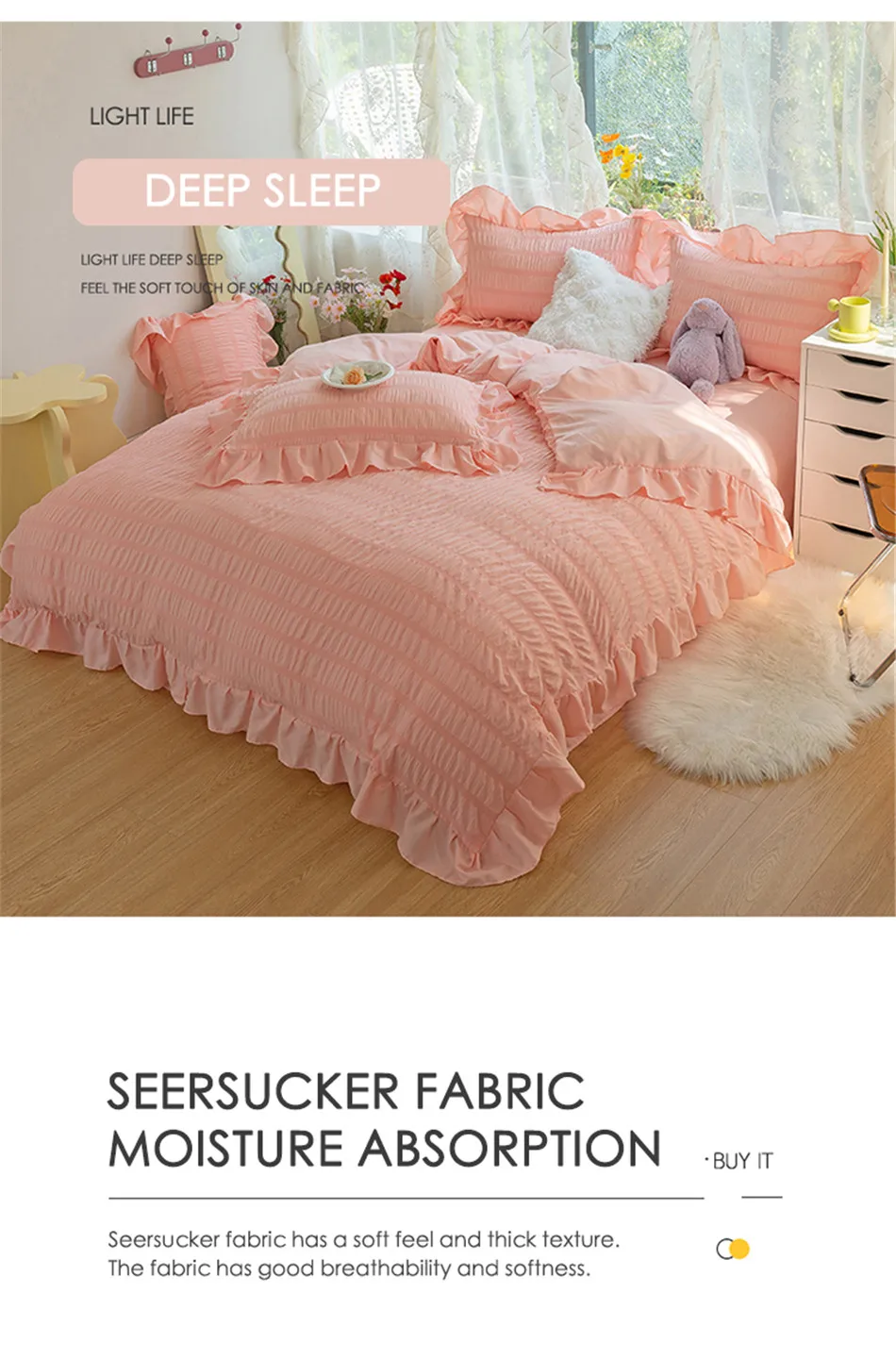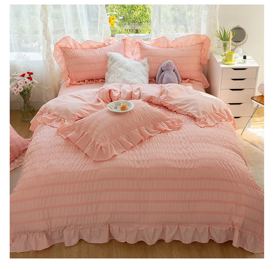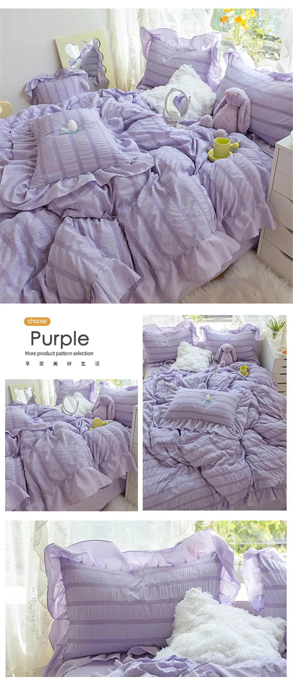 Qfdian Purple Princess Bedding Set Luxury Solid Color Duvet Cover Pillowcase Linens Twin Queen King Bed Sheet Set Woman Girl Kawaii Set