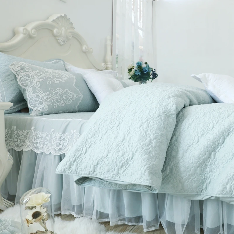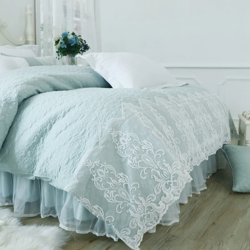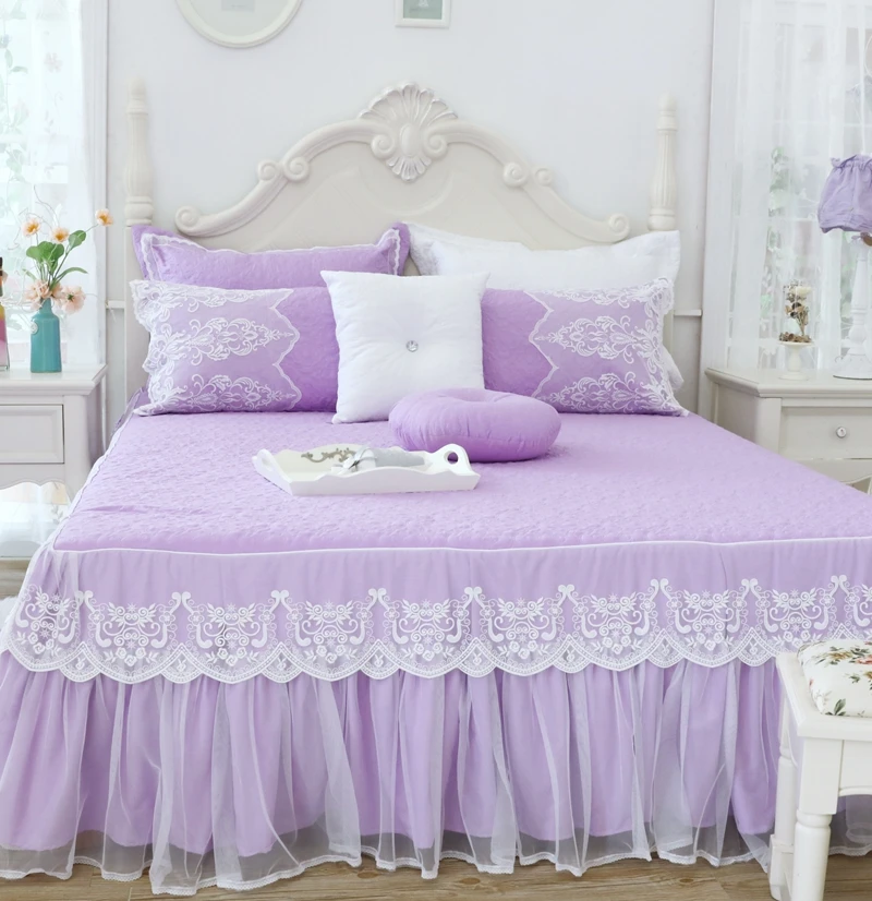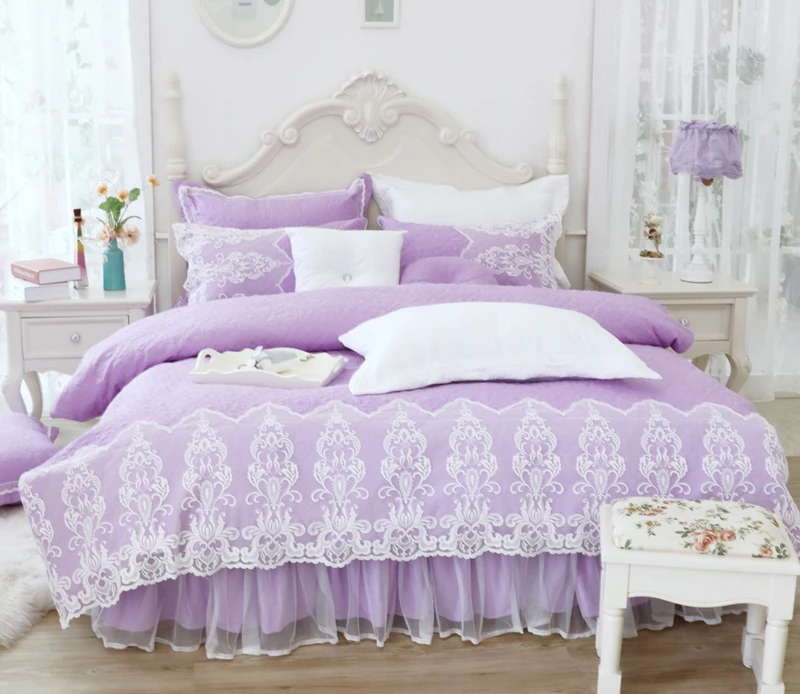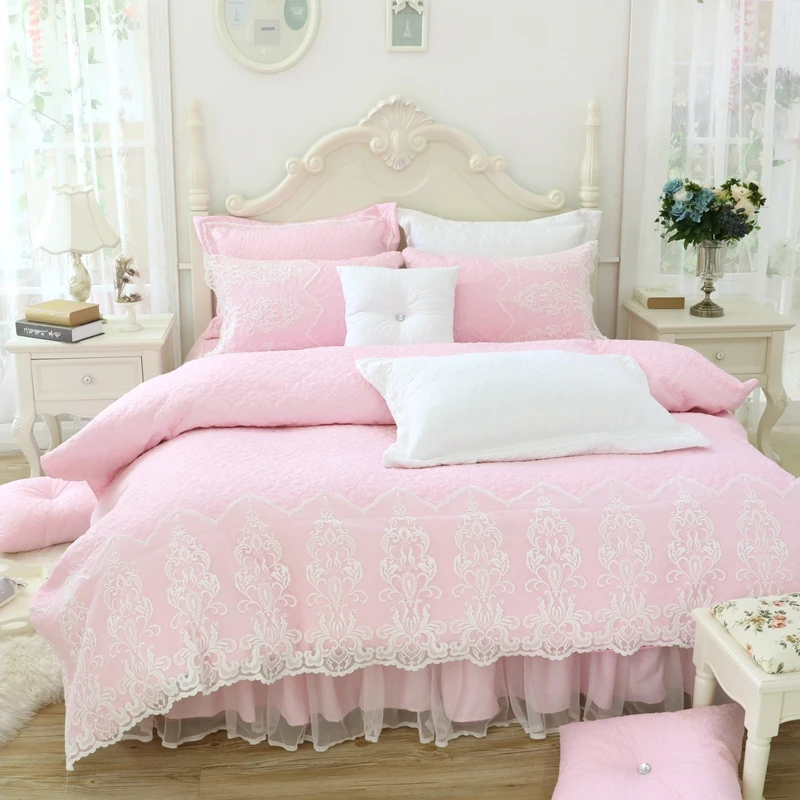 Thick cotton winter bed cover set lace princess girls bedding set twin queen king size 4/8pcduvet cover bed skirt set pillowcase