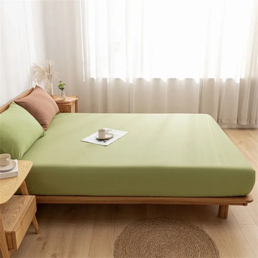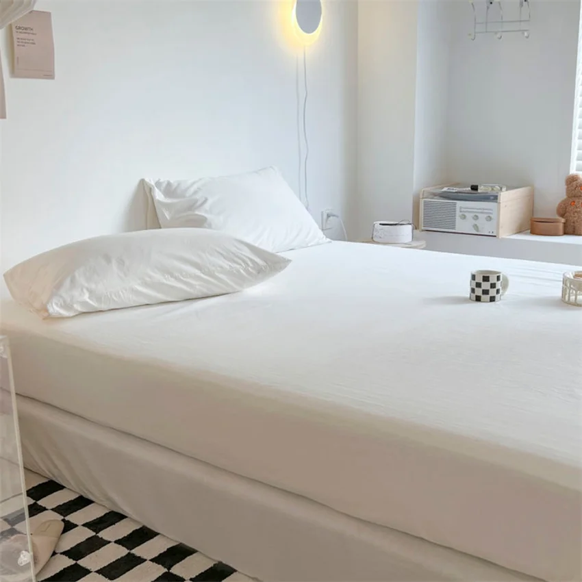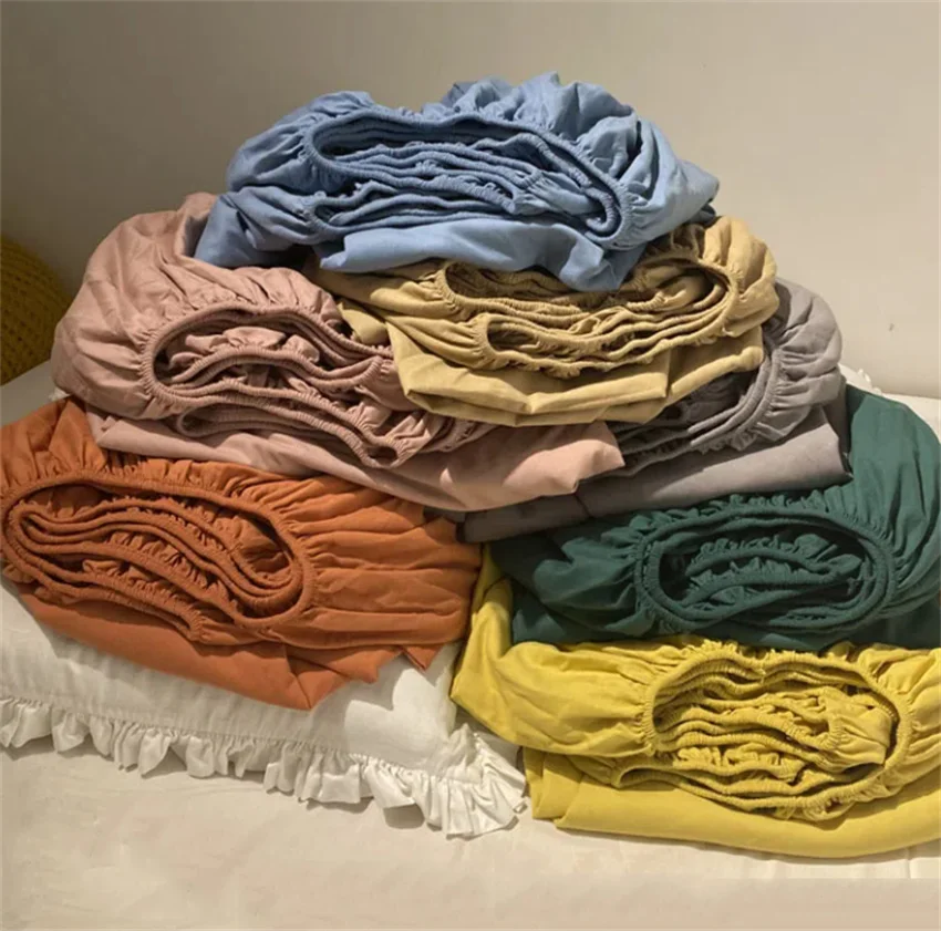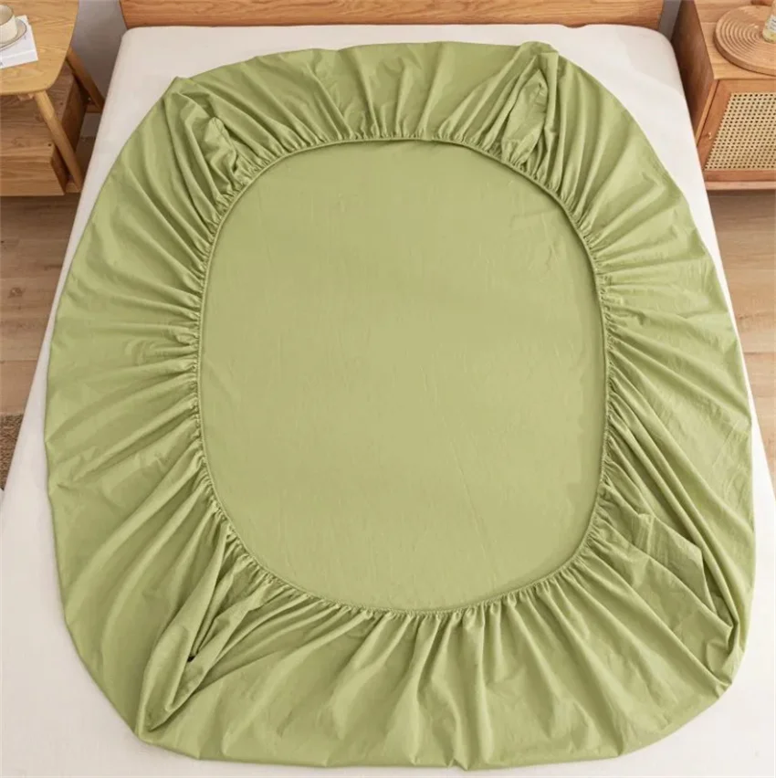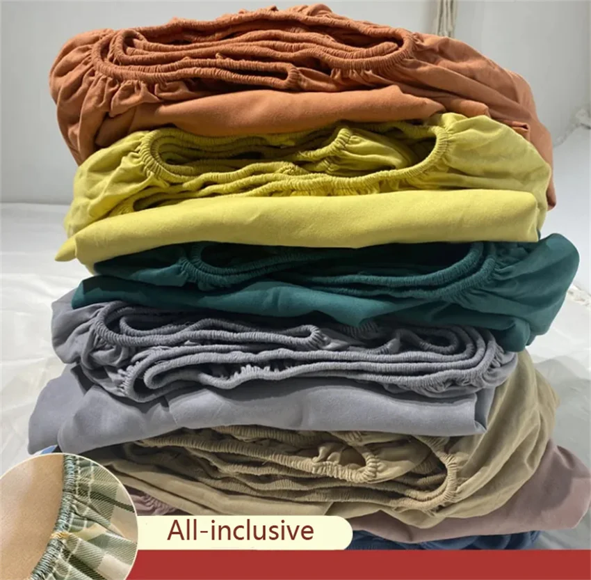 Washed Cotton Fitted Sheet with Elastic Band Non-Slip Adjustable Mattress Covers for Single Double Queen King Bed 120/150/180cm