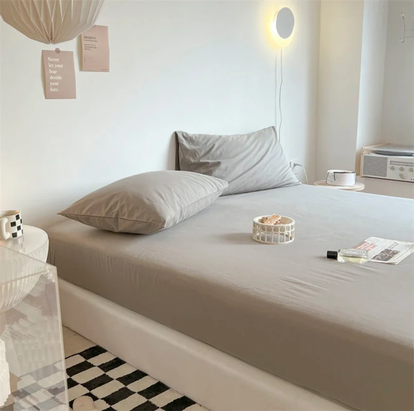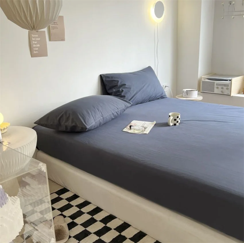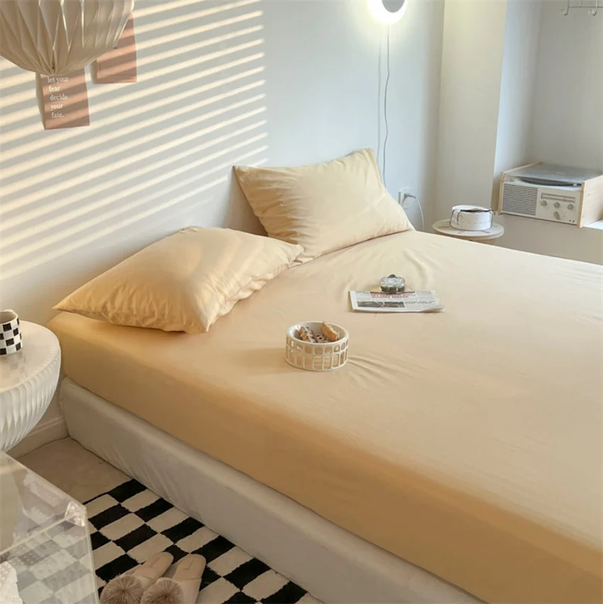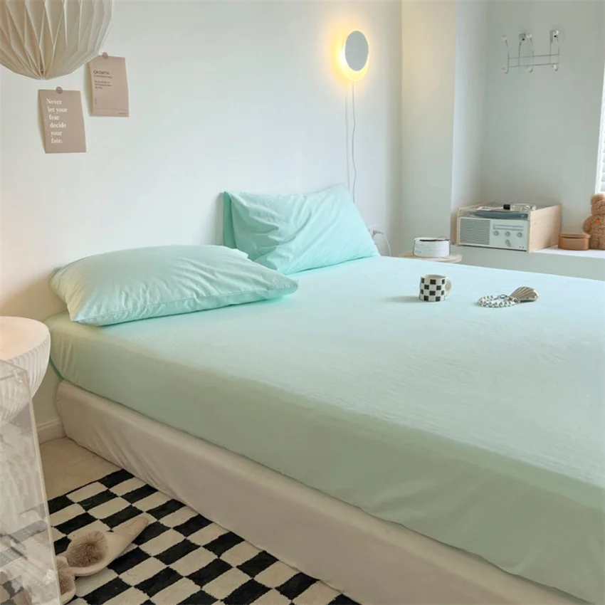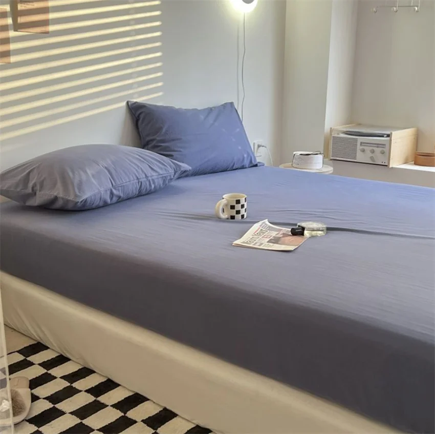 Washed Cotton Fitted Sheet with Elastic Band Non-Slip Adjustable Mattress Covers for Single Double Queen King Bed 120/150/180cm