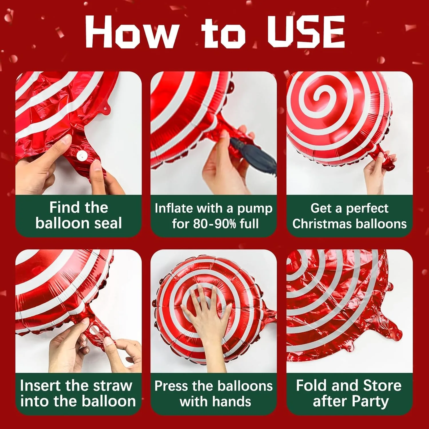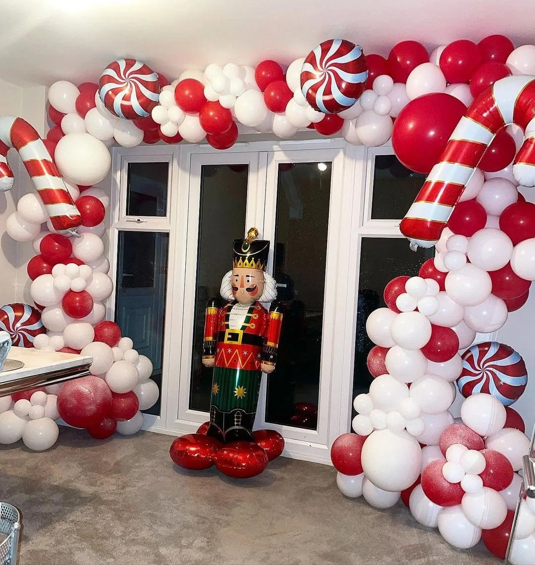 Qfdian 115pcs Red White Balloons Red Candy Cane Aluminum Film Balloon Garland Arch Kit,for Merry Christmas New Year Party Holiday Decor