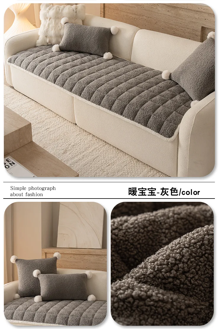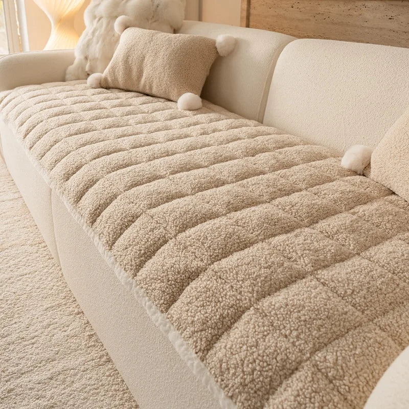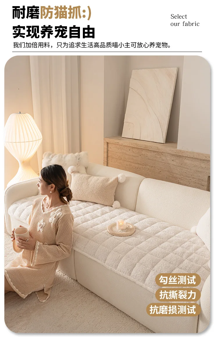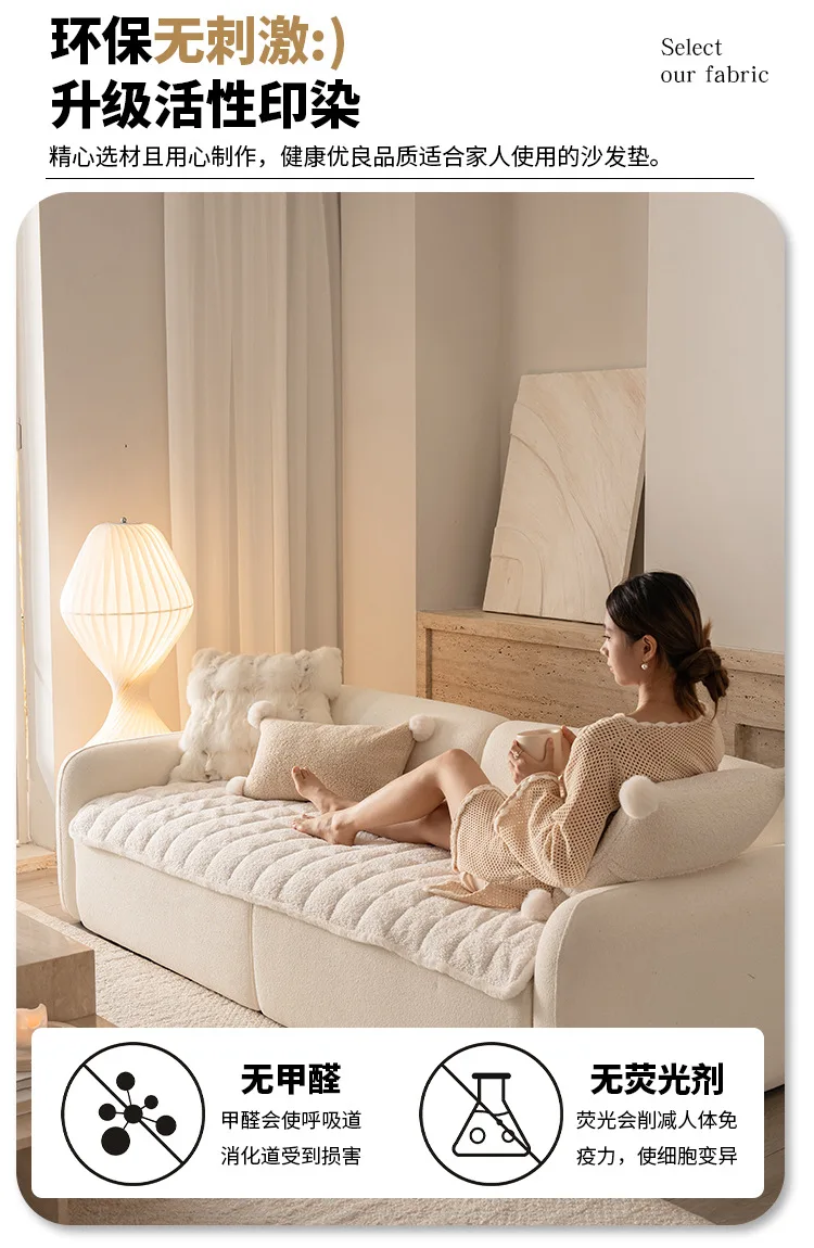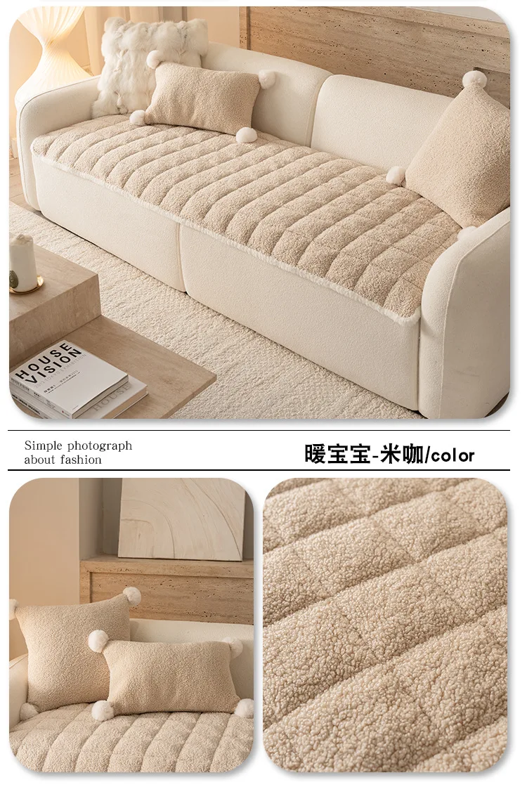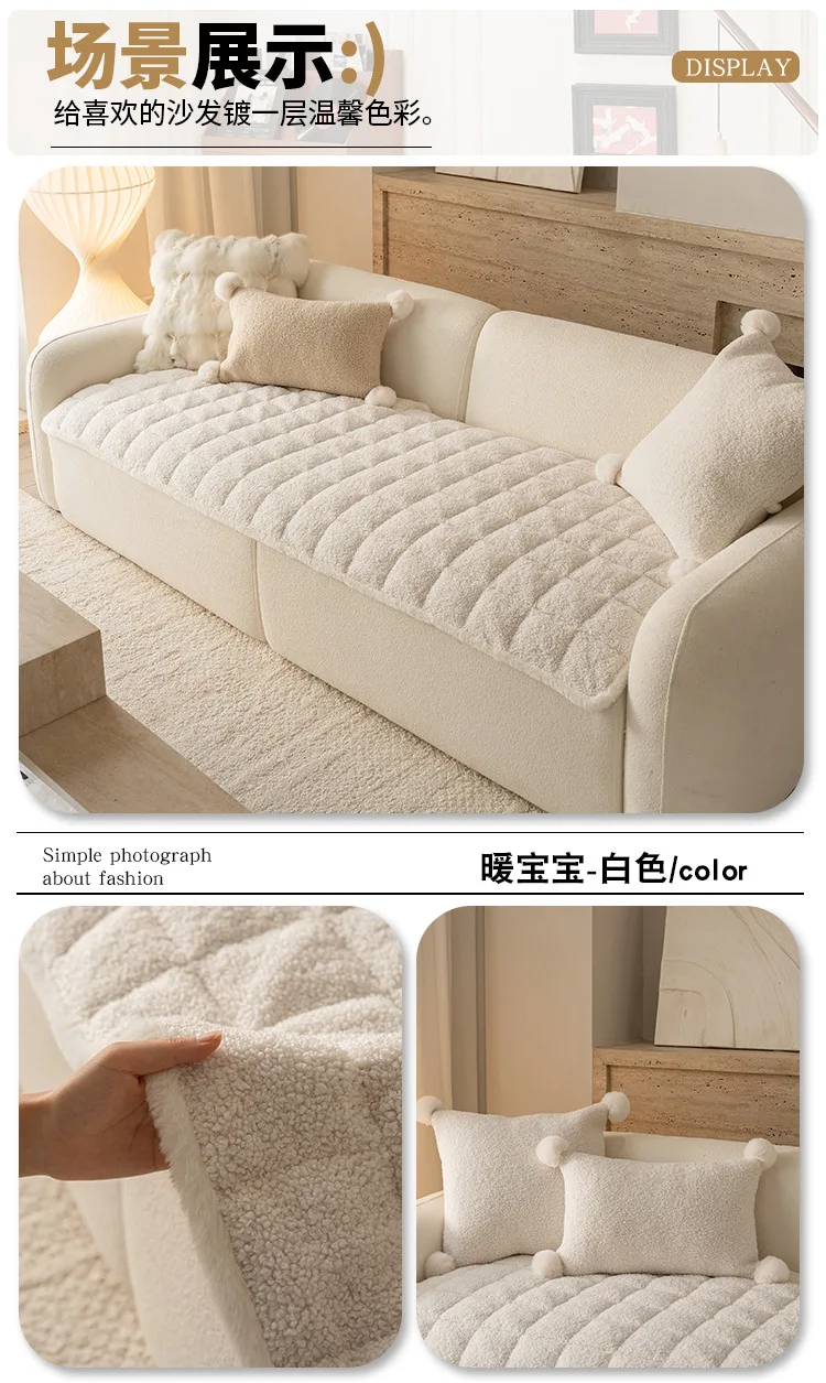 2025 Thick Plush Sofa Cover Cloth Creamy Style Anti Slip Sofa Cushion Solid Color Straight Row Simple Autumn and Winter Style