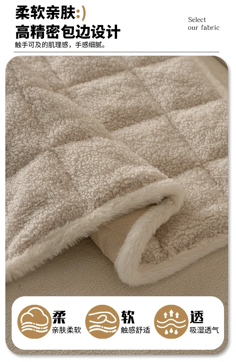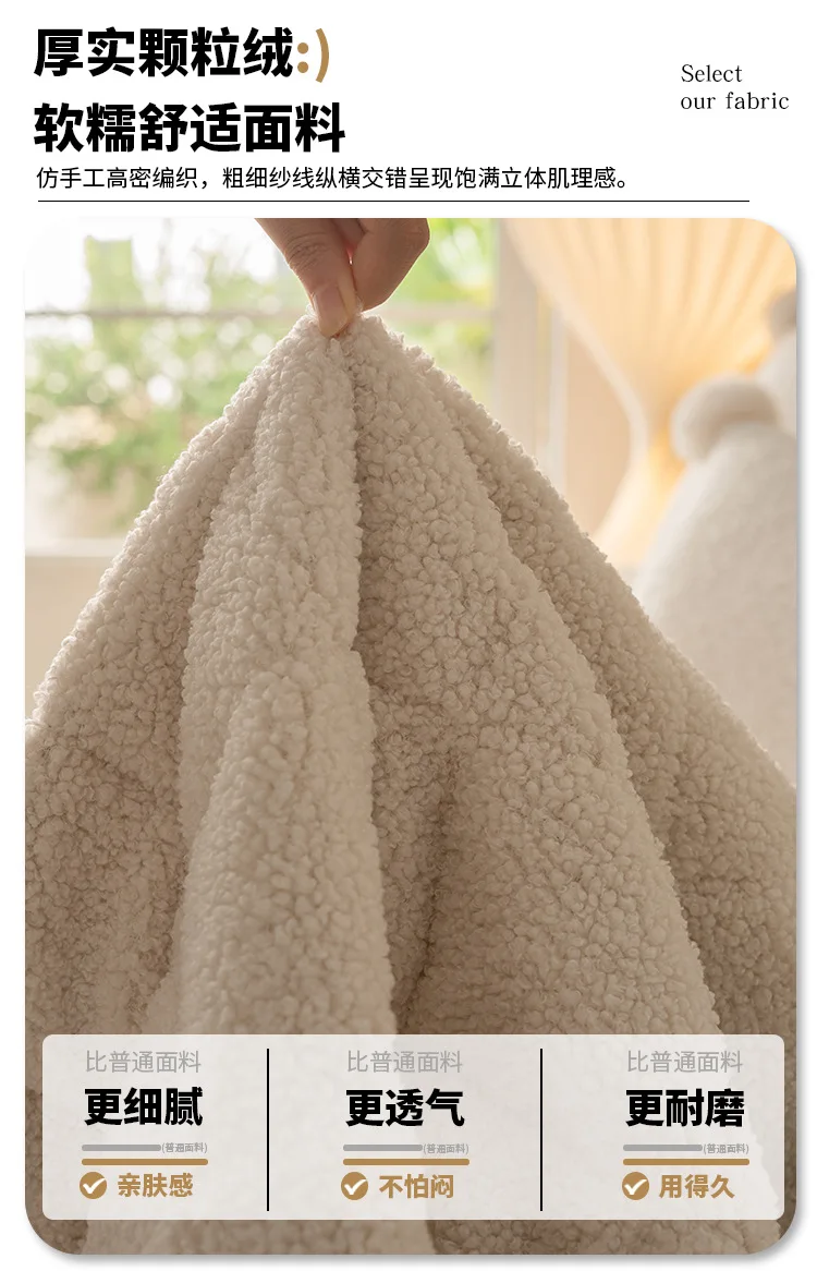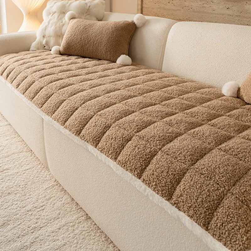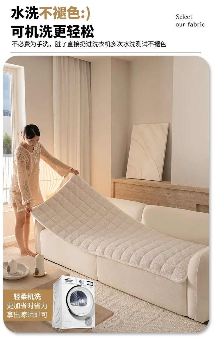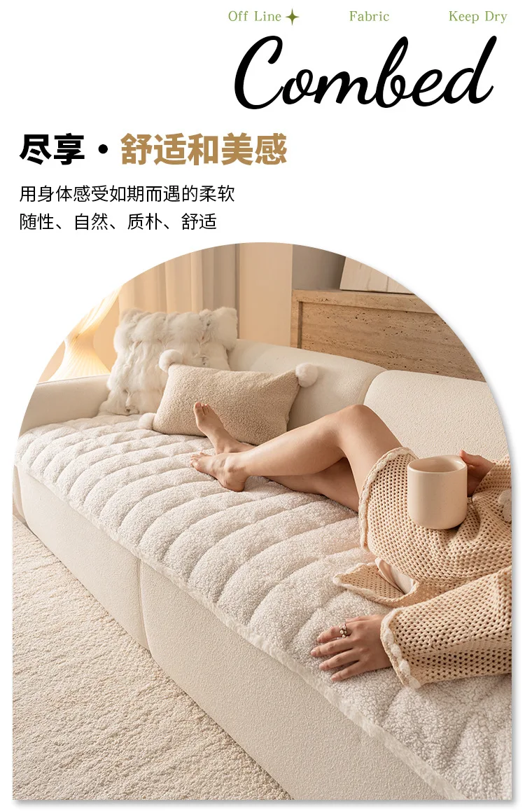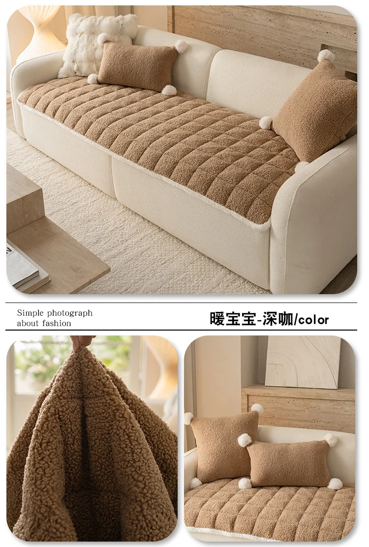 2025 Thick Plush Sofa Cover Cloth Creamy Style Anti Slip Sofa Cushion Solid Color Straight Row Simple Autumn and Winter Style