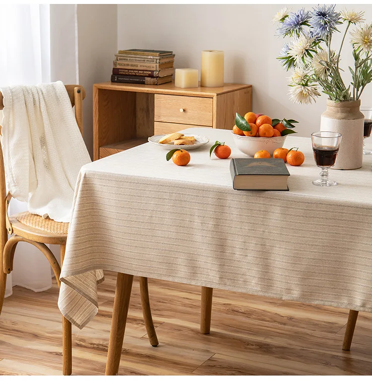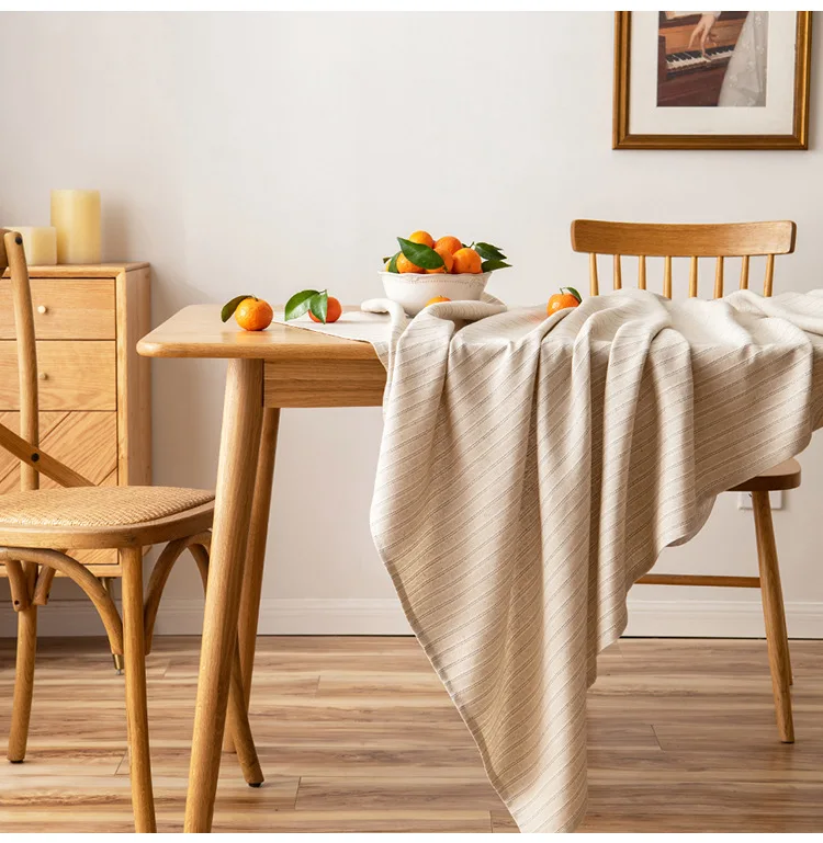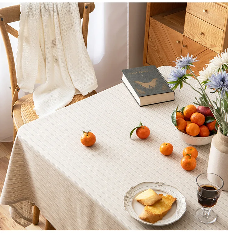 Qfdian Cotton and Linen Tablecloth for Table Retro Striped Coffee Table Cover Nordic Rectangular Table Cloth Home Decor