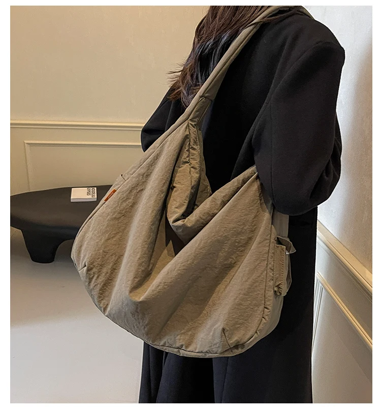 Qfdian Large Oxford Hobos Bags Women Solid Cloth Shoulder Bags Korea Style Canvas Packages Unisex Strong Big Leisure Or Travel Bags