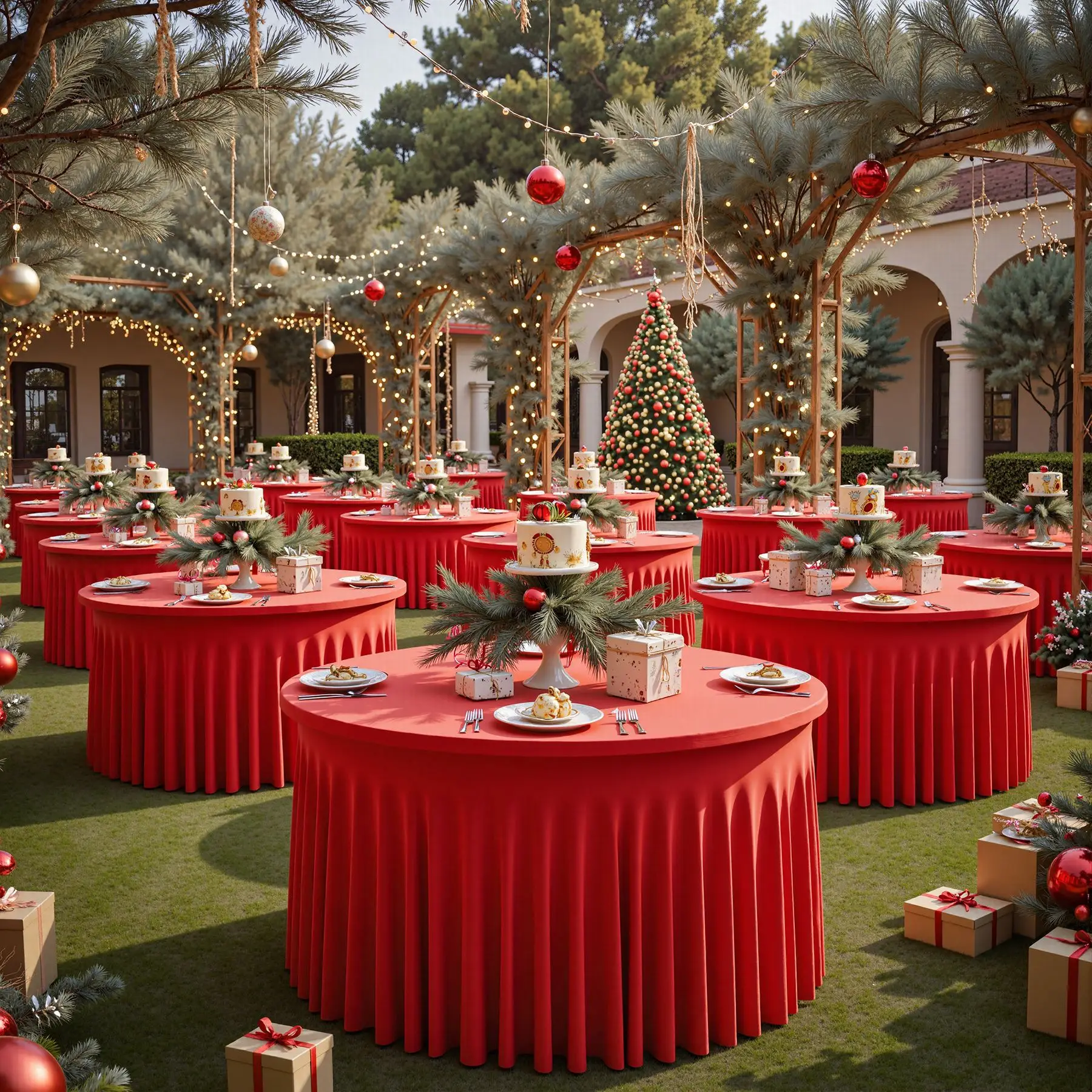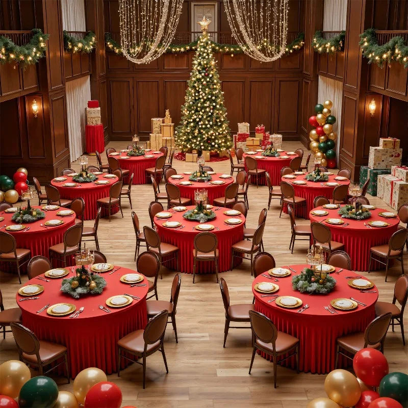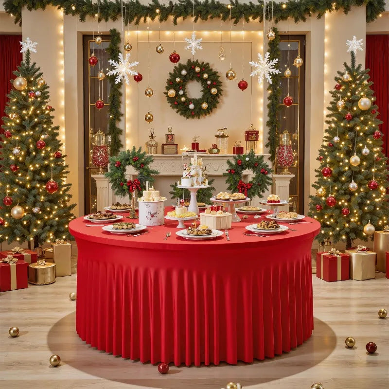 Qfdian Red Christmas Round Tablecloth Wedding Banquet Birthday Party Tablecloth Holiday Atmosphere Decoration Desktop Props Table Set