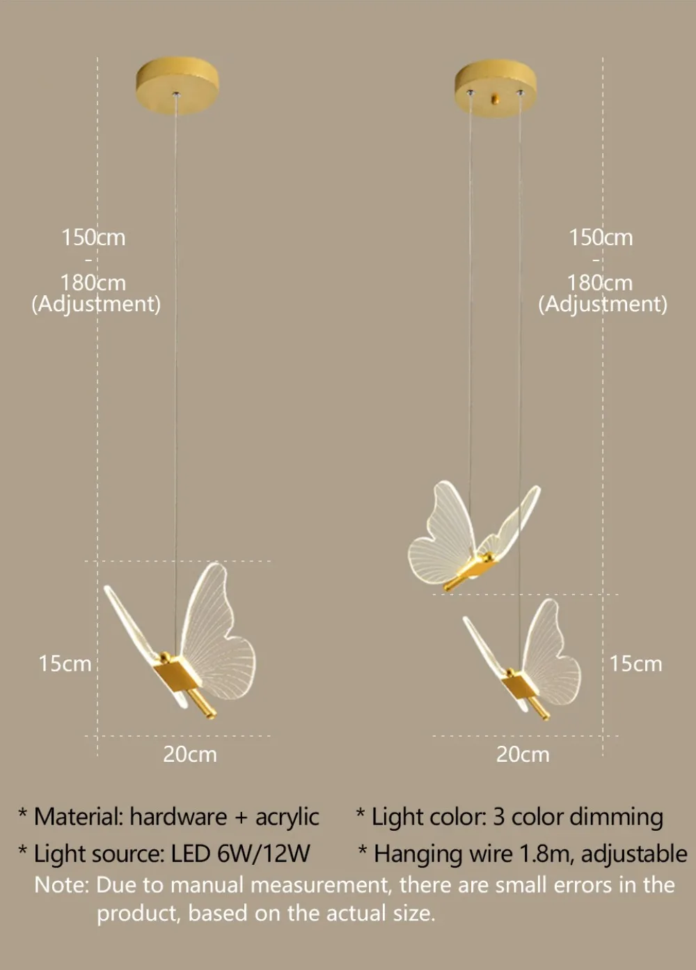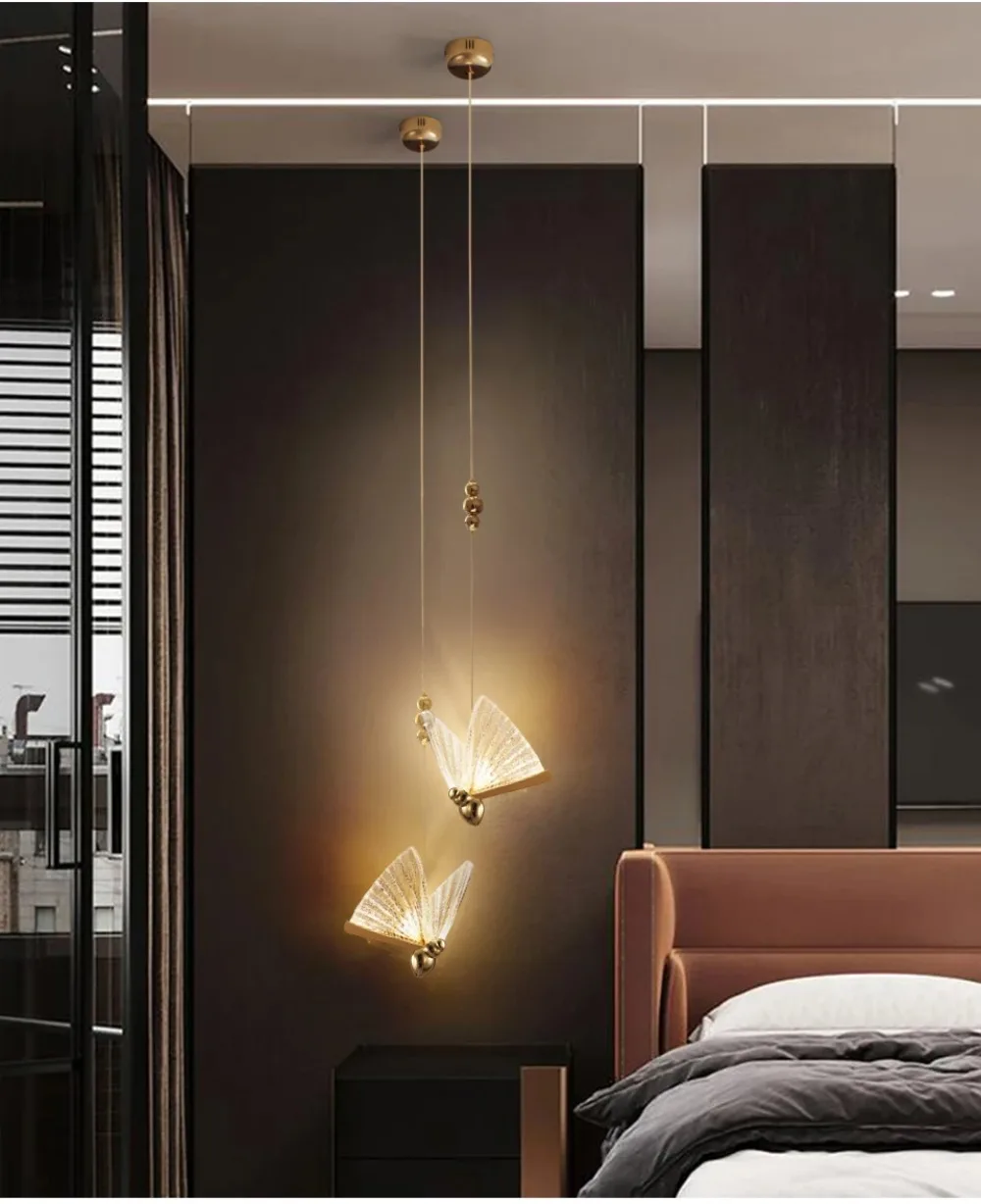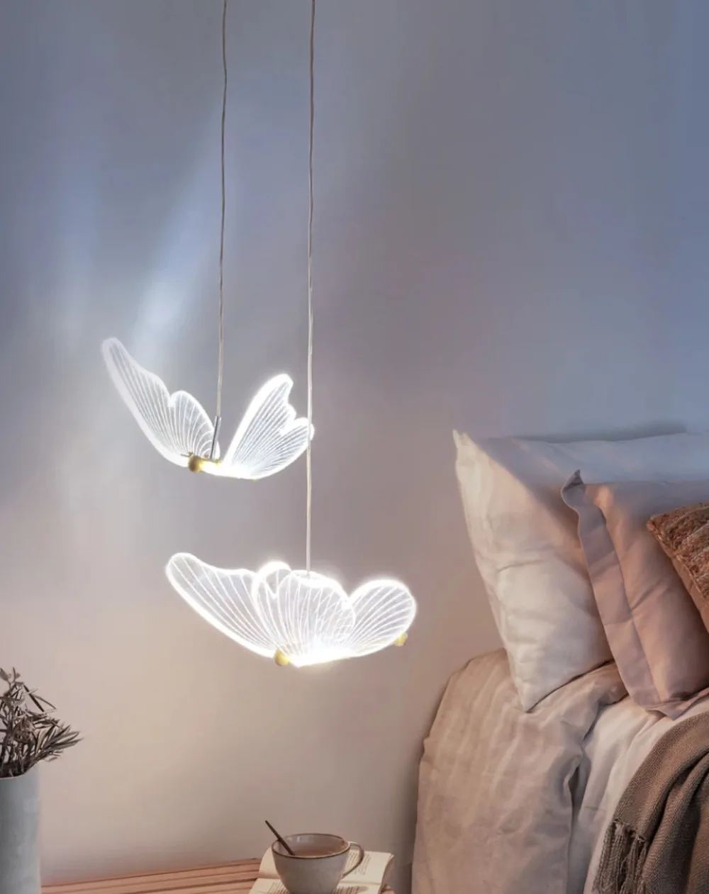 Qfdian Butterfly Chandelier LED Ceiling Pendant Light Hanging Lamps For Home Bedside Dining Living Room Luminaire Decor Indoor Lighting