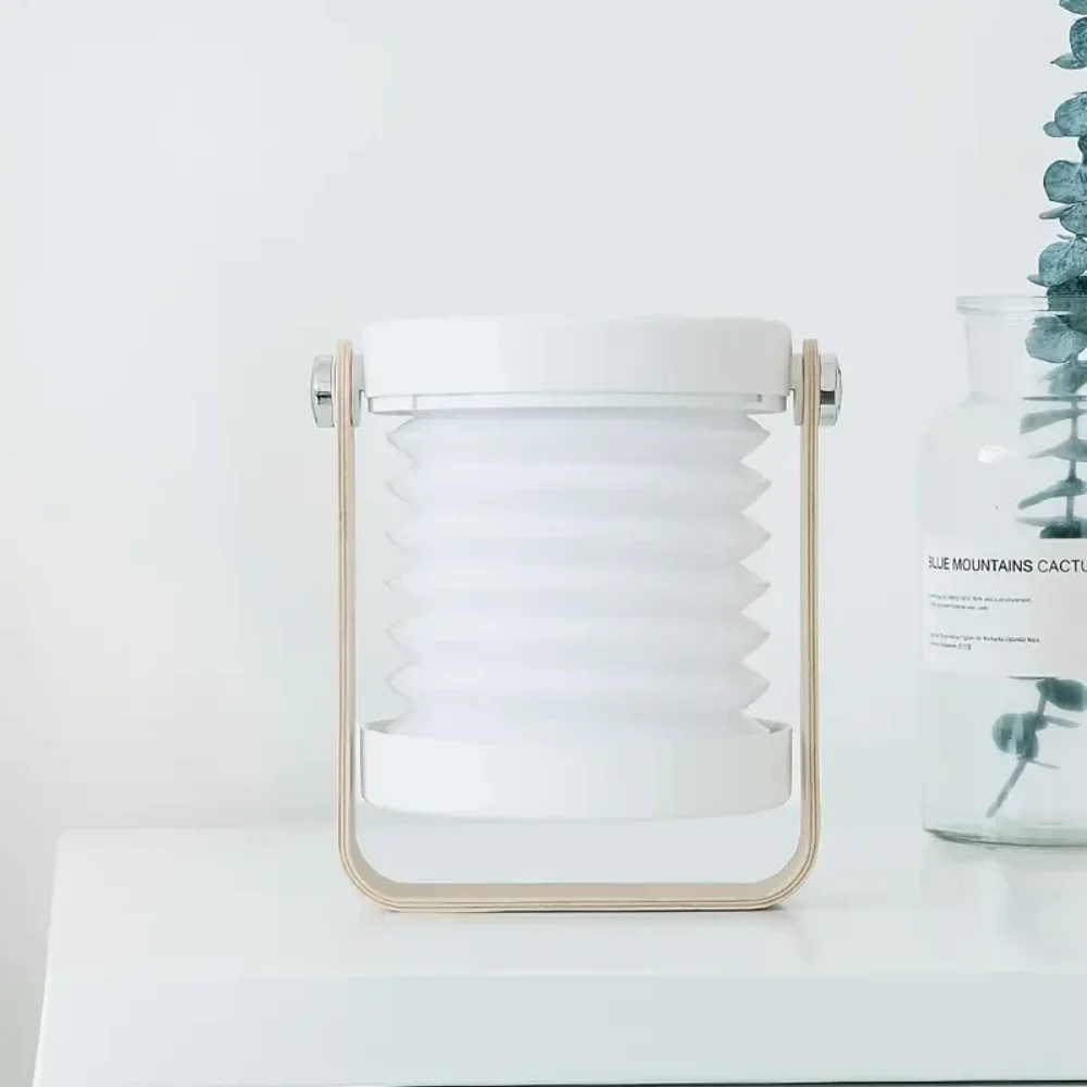 Qfdian New Creative Wooden Handle Portable Lantern Folding Night Lamp Portable Table Lamp Telescopic Home Gift Atmosphere Lamp
