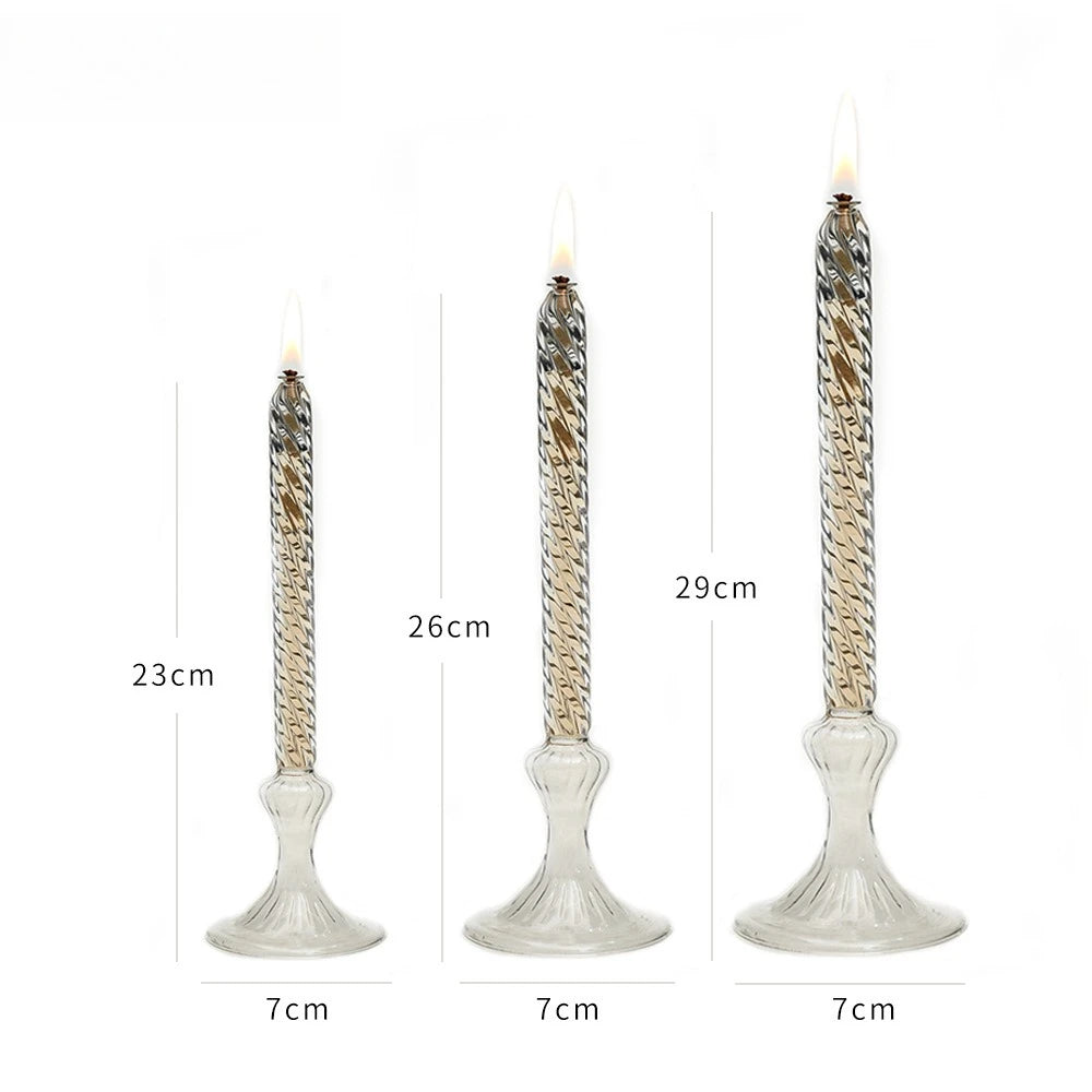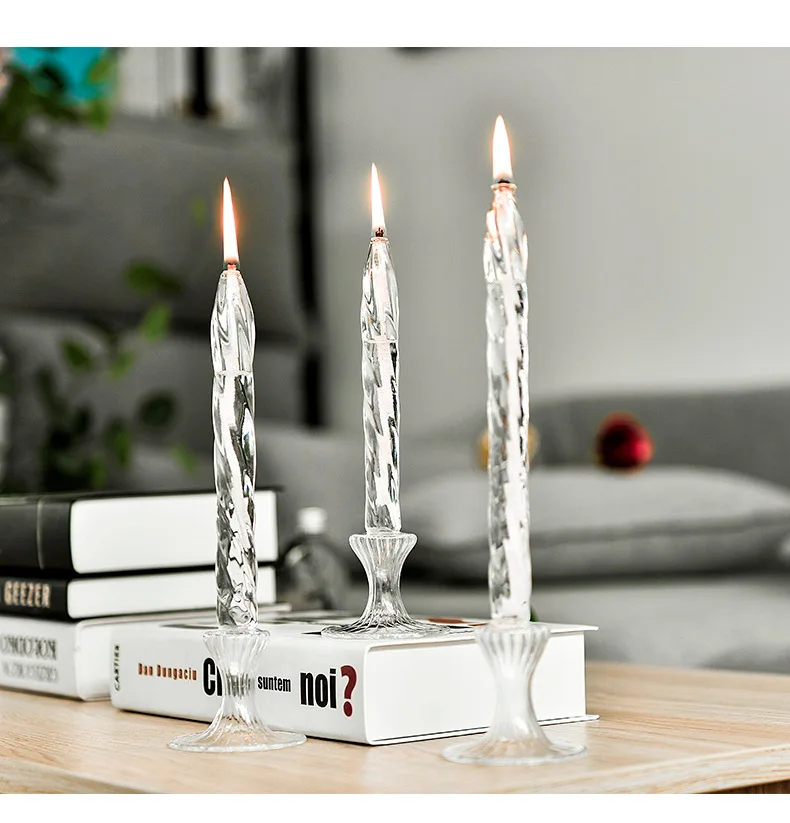 Qfdian Rotate Transparent Glass Candle Holder Smokeless Glass Oil Lamps Candlestick Wedding Decor Romantic Candlelight Dinner Ornaments