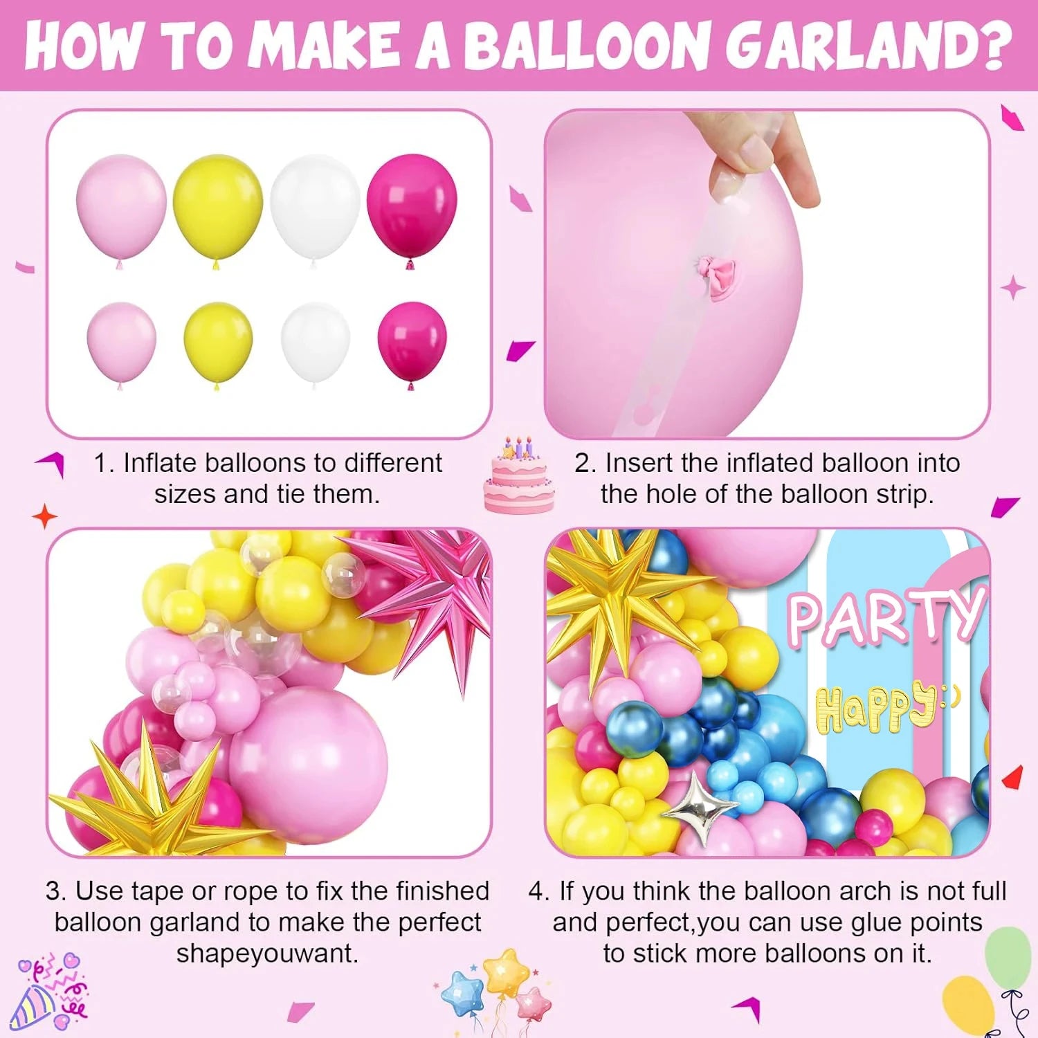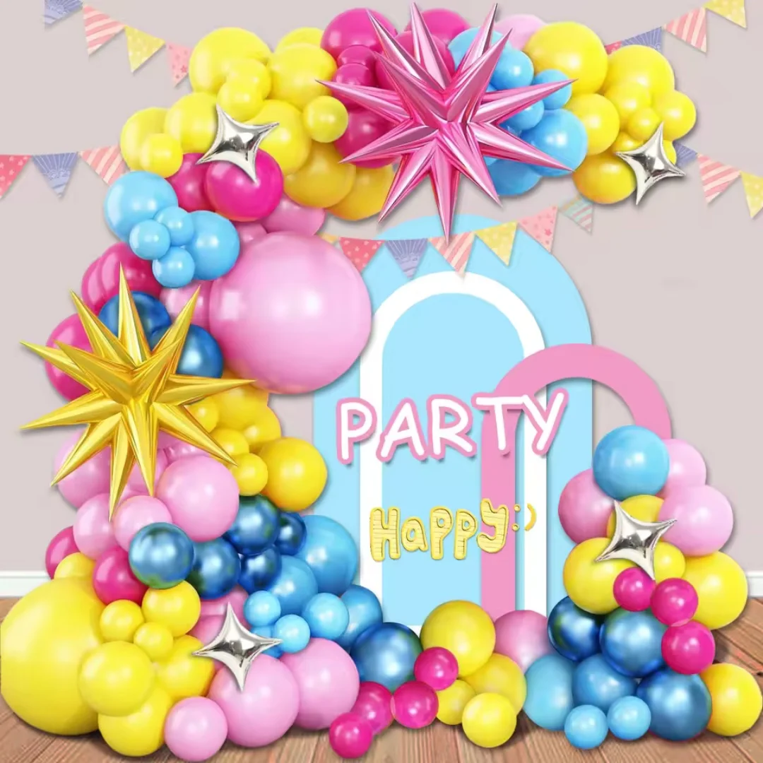 Qfdian 125Pcs Pink Yellow Blue Balloons Arch Set, for Student Bridal Shower Birthday Party Wedding Anniversary Christmas Decoration