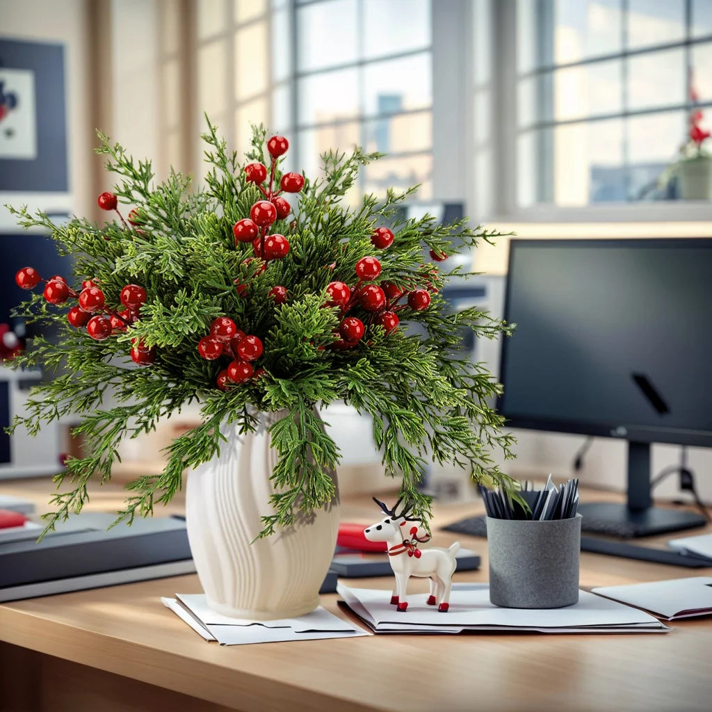 Qfdian 15pcs Artificial Pine Branches with Red Berry Stems Faux Christmas Greenery Pine Cypress DIY Craft Garland Home Christmas Decor
