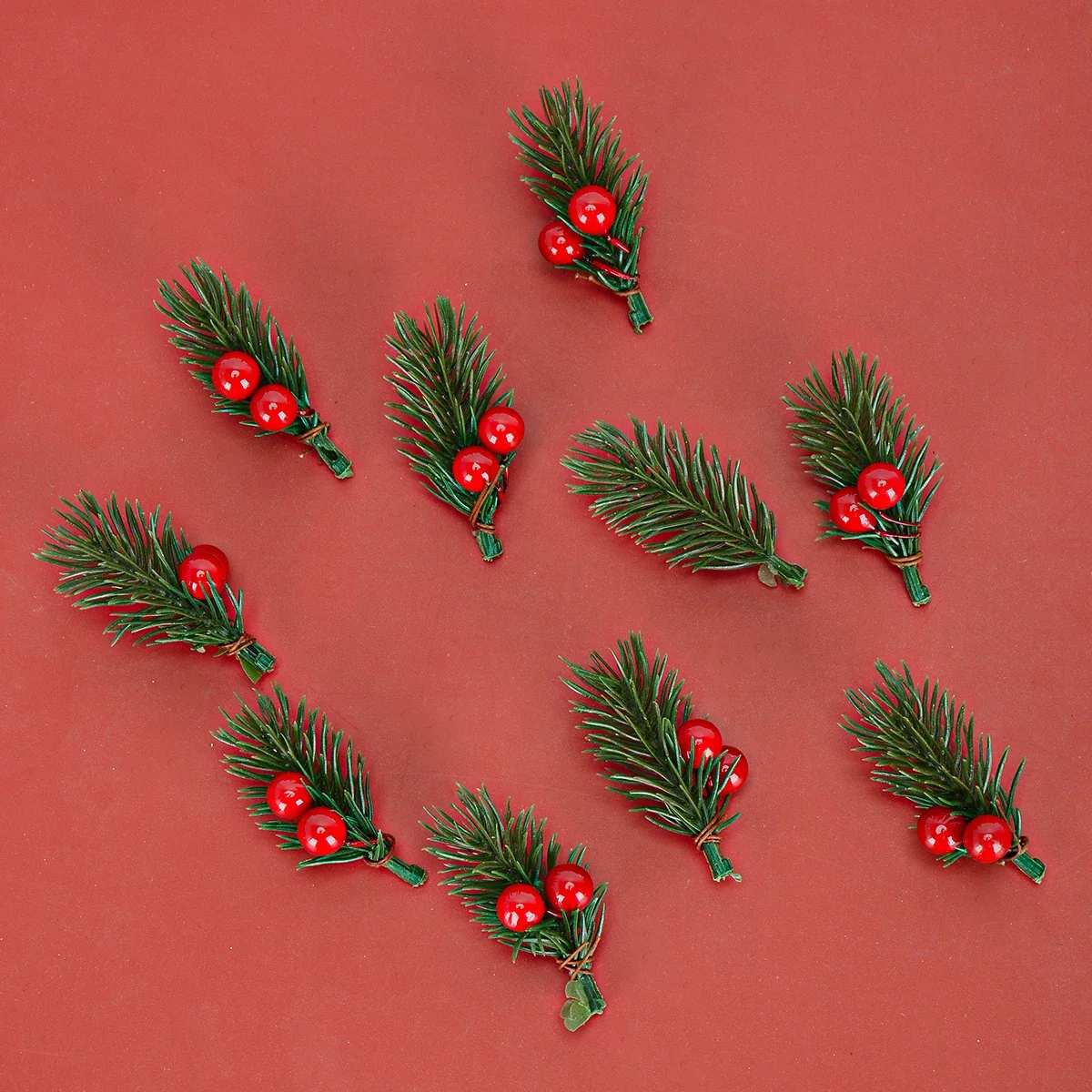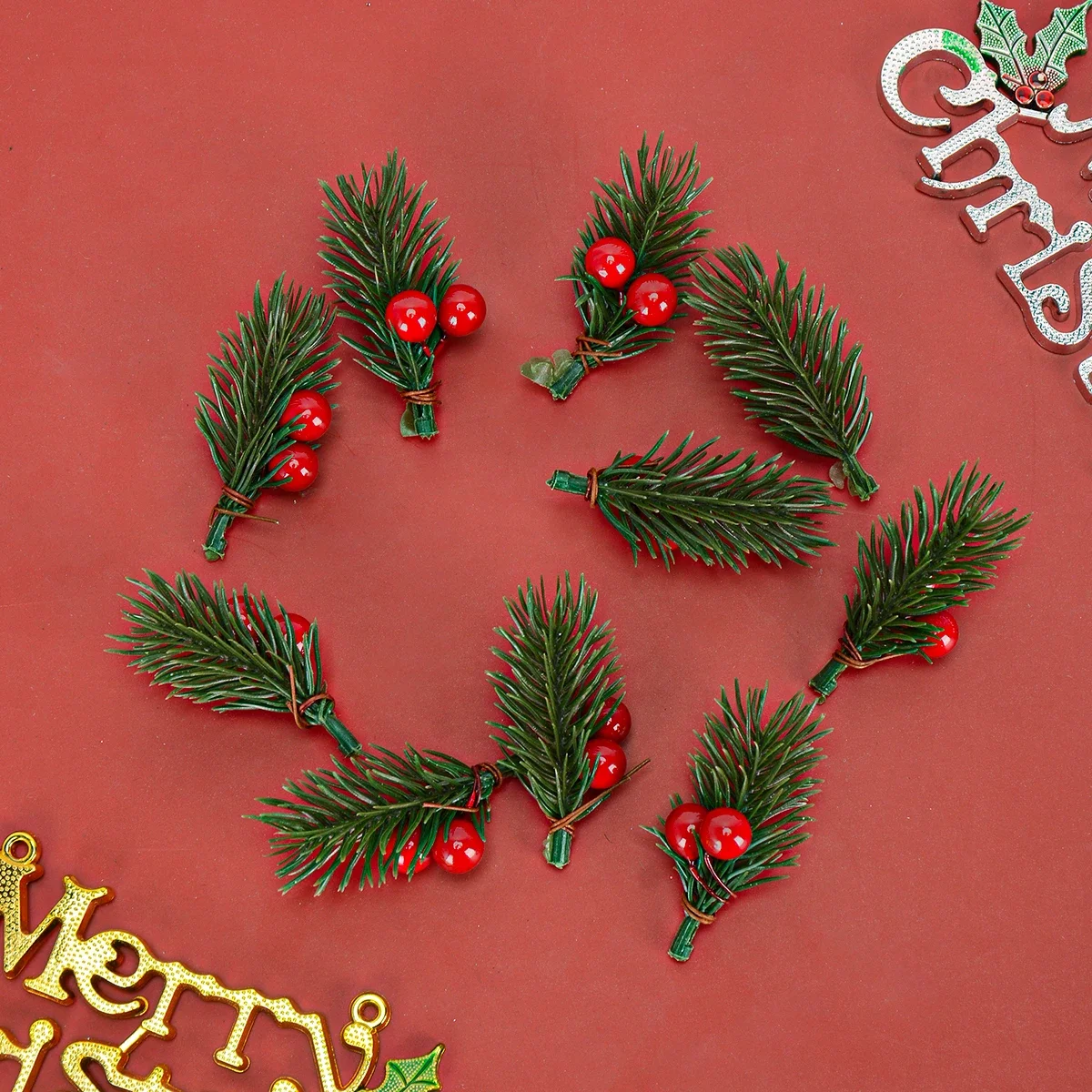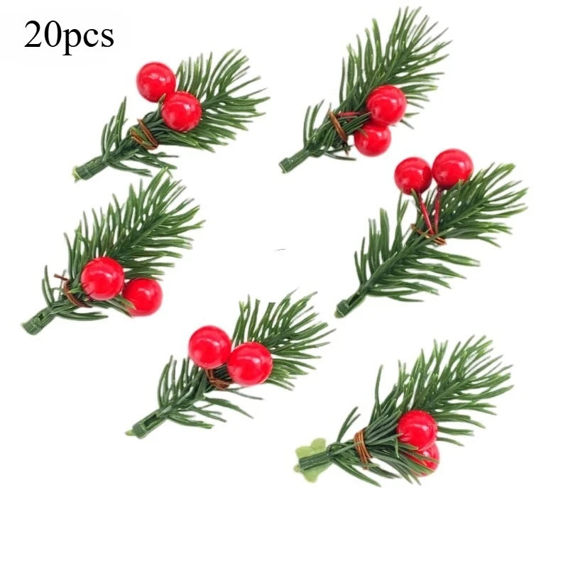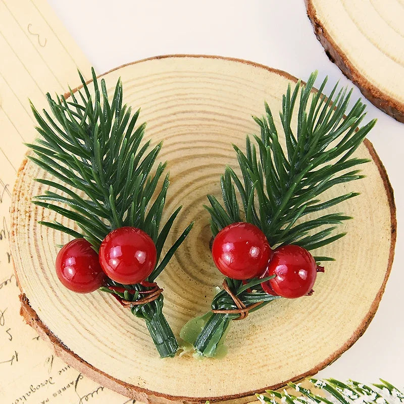 Qfdian Mini Plastic Simulation Red Berries Bouquet Christmas Artificial Pine Needle Berry Home Party Decor DIY Craft Garland Decoration