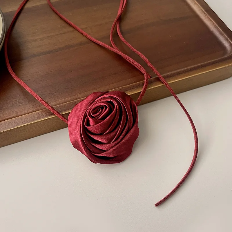 Fashion Retro Rose Necklace Elegant Collar Bohemian Exaggerated Flowers Necklet Handmade Charm Velvets Clavicle Chain jewelry