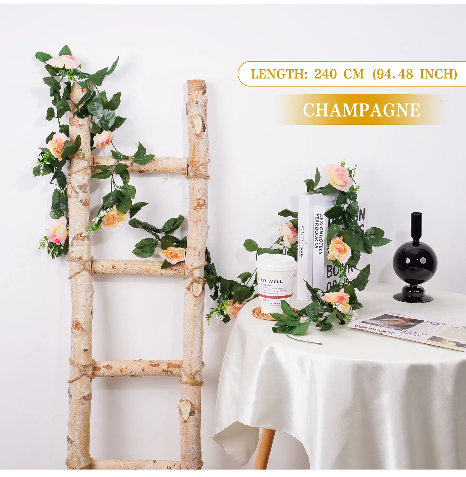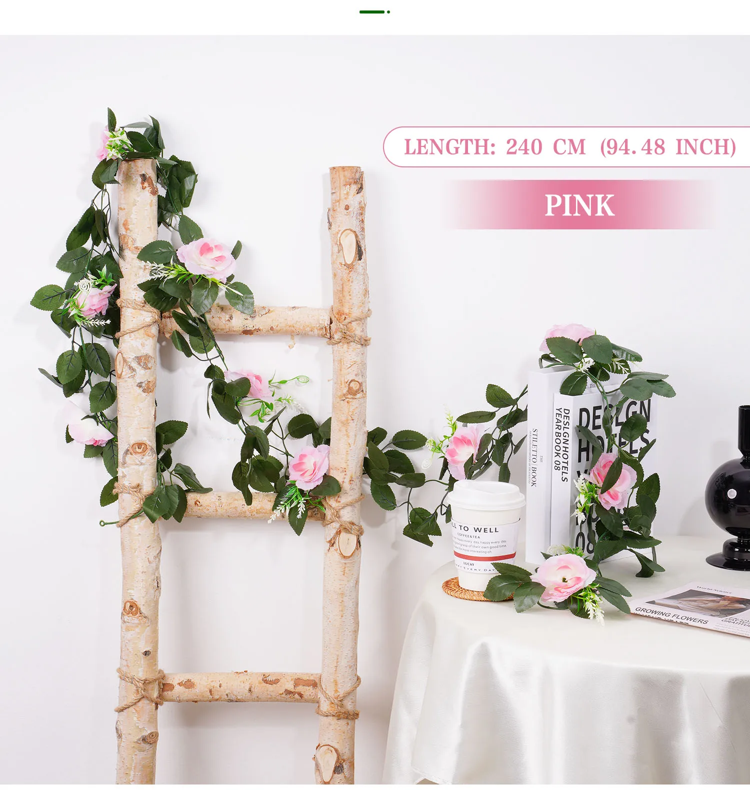 Qfdian 2.4M Rose Artificial Flower Spring Autumn Garden Arch Decor DIY Fake Flowers Vine for Wedding Garland Home Decoration ornements
