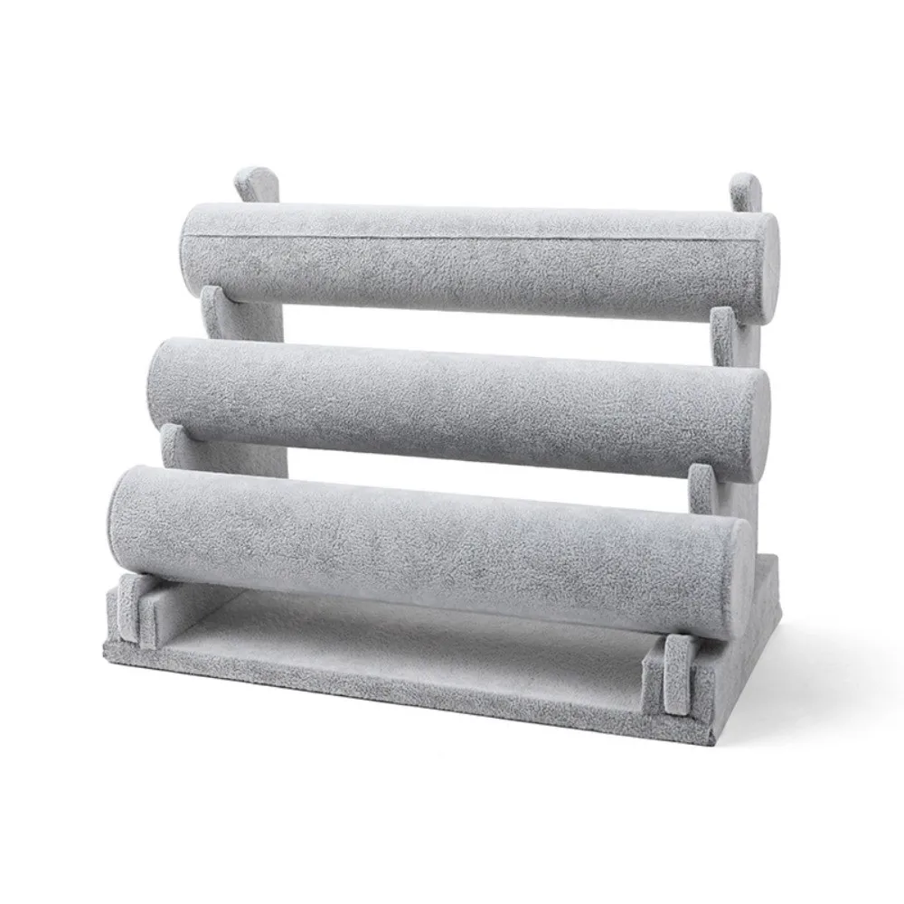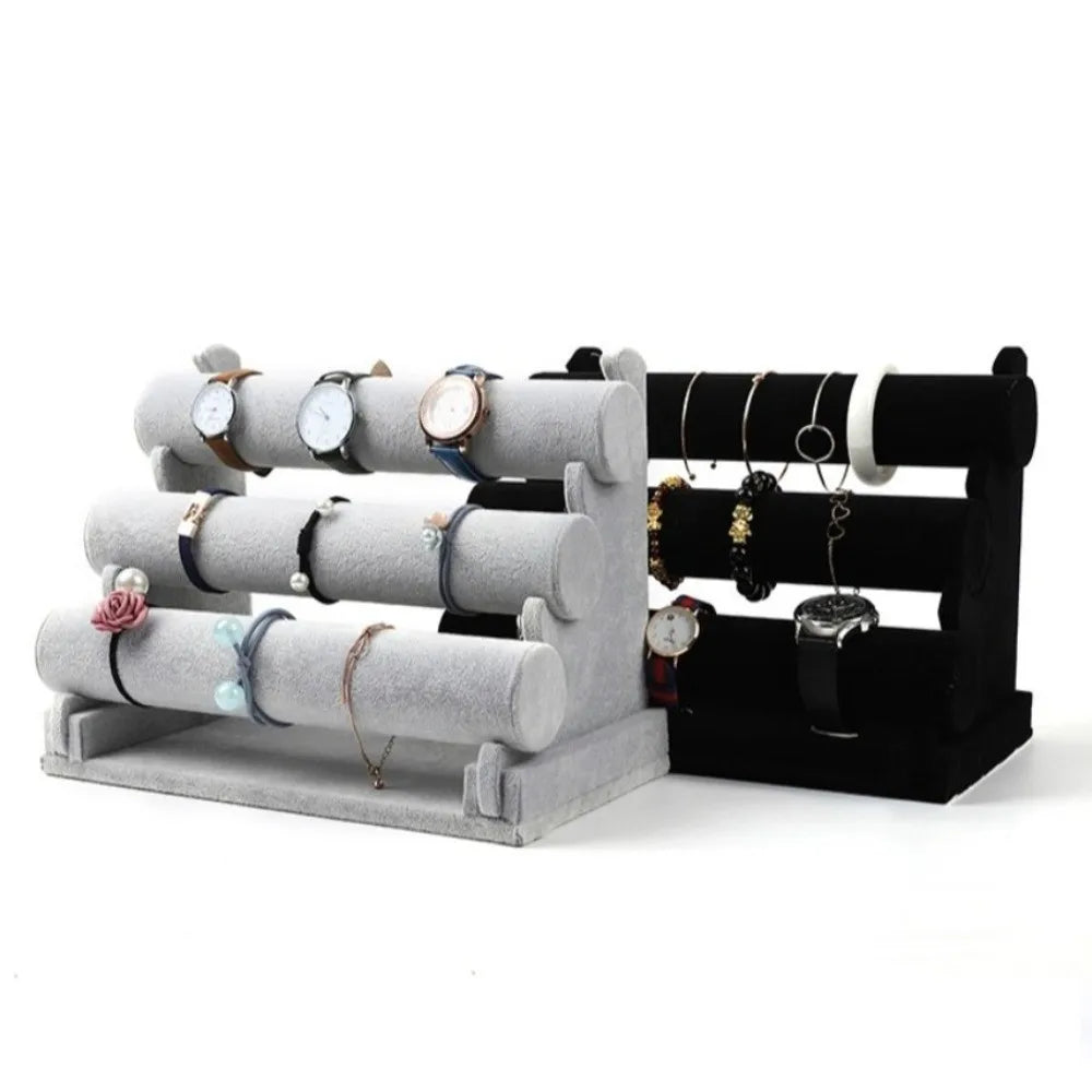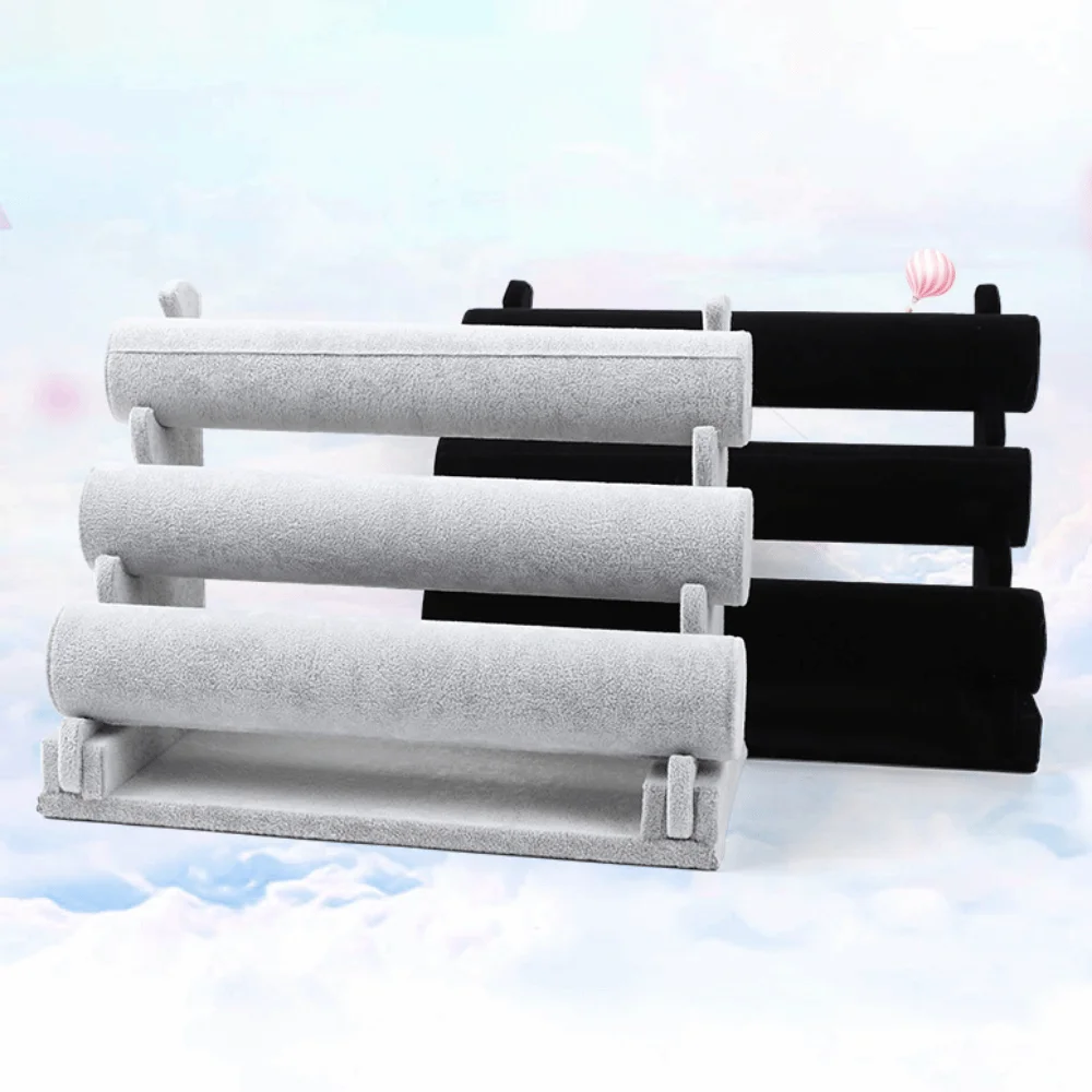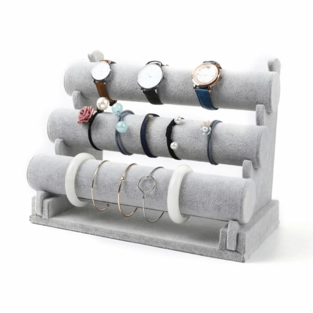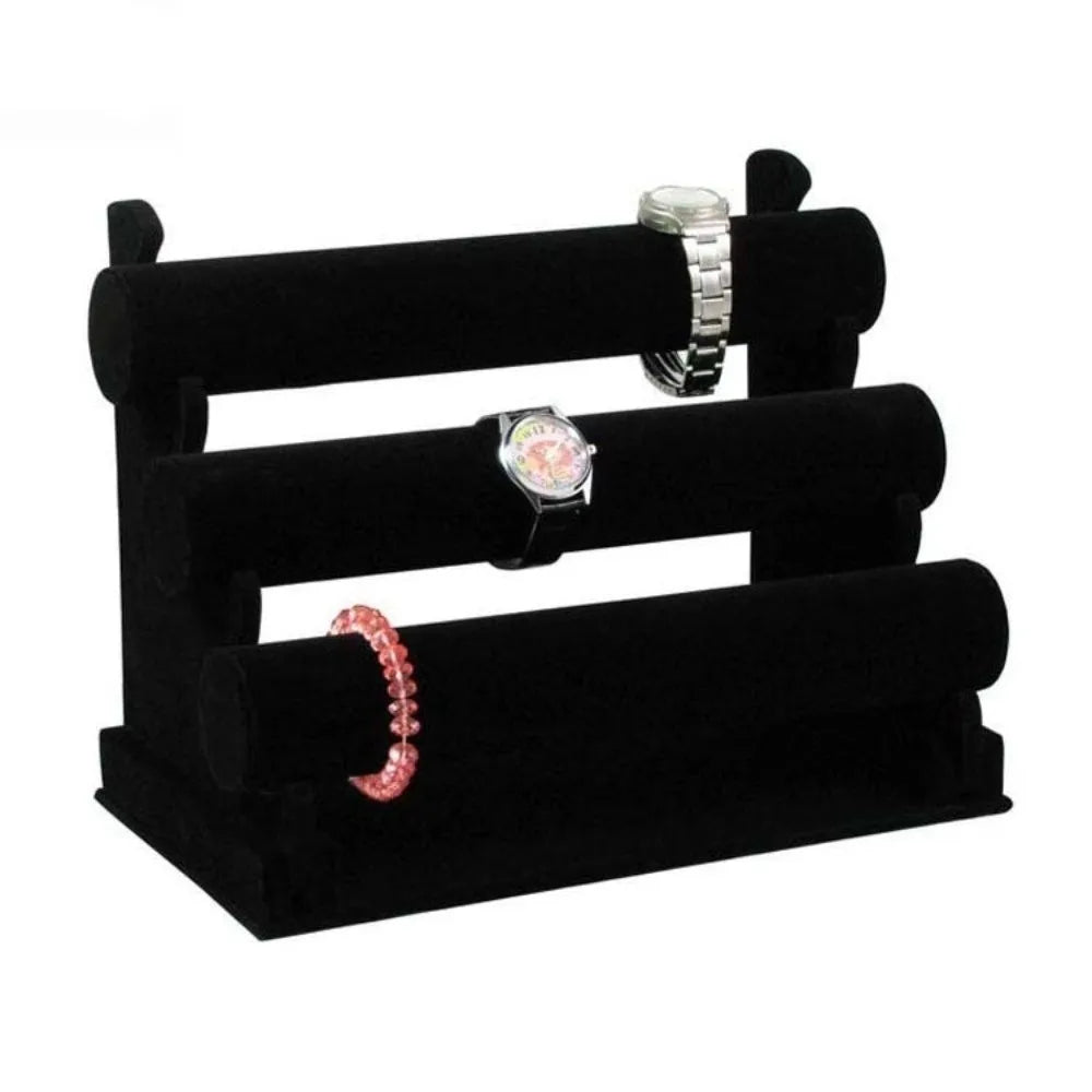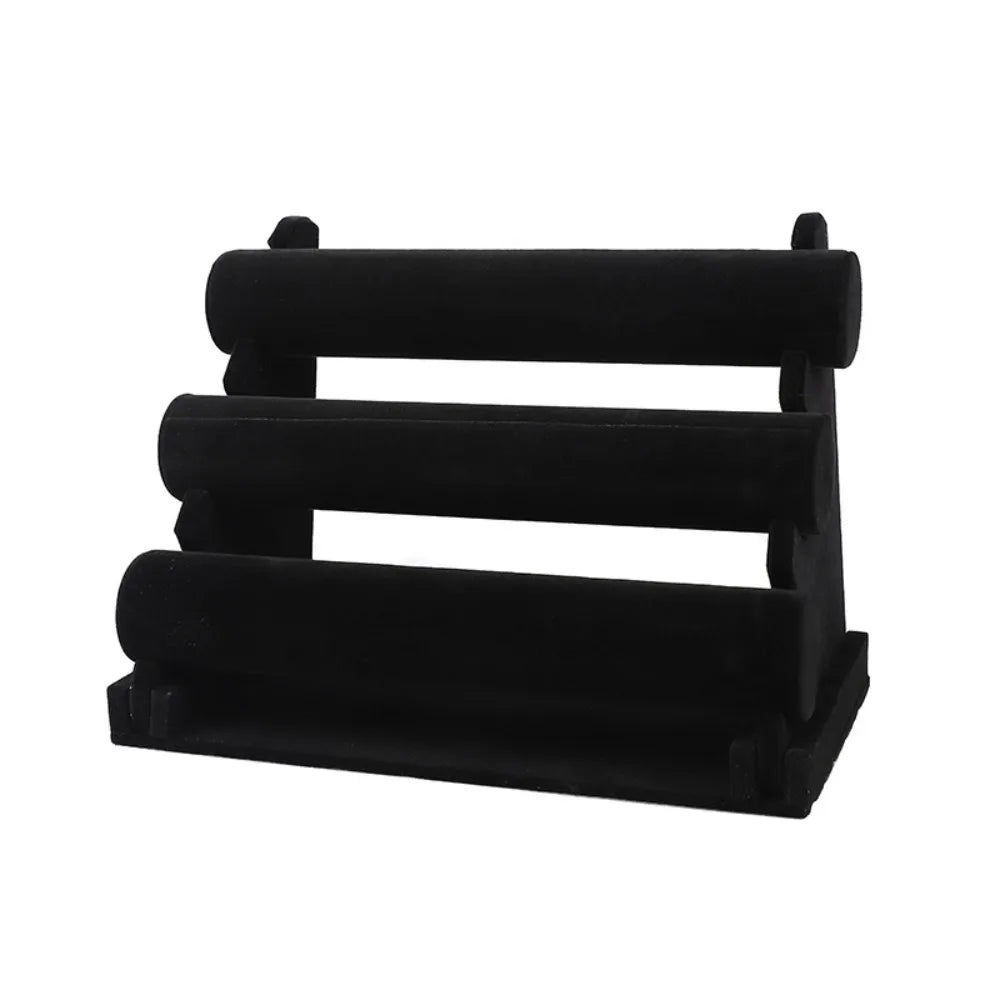 Qfdian 3Layer Velvet Jewelry Holder Multifunctional Space Saving Bracelet Chain Watch T-Bar Rack Retro Large Capacity Jewelry Organizer