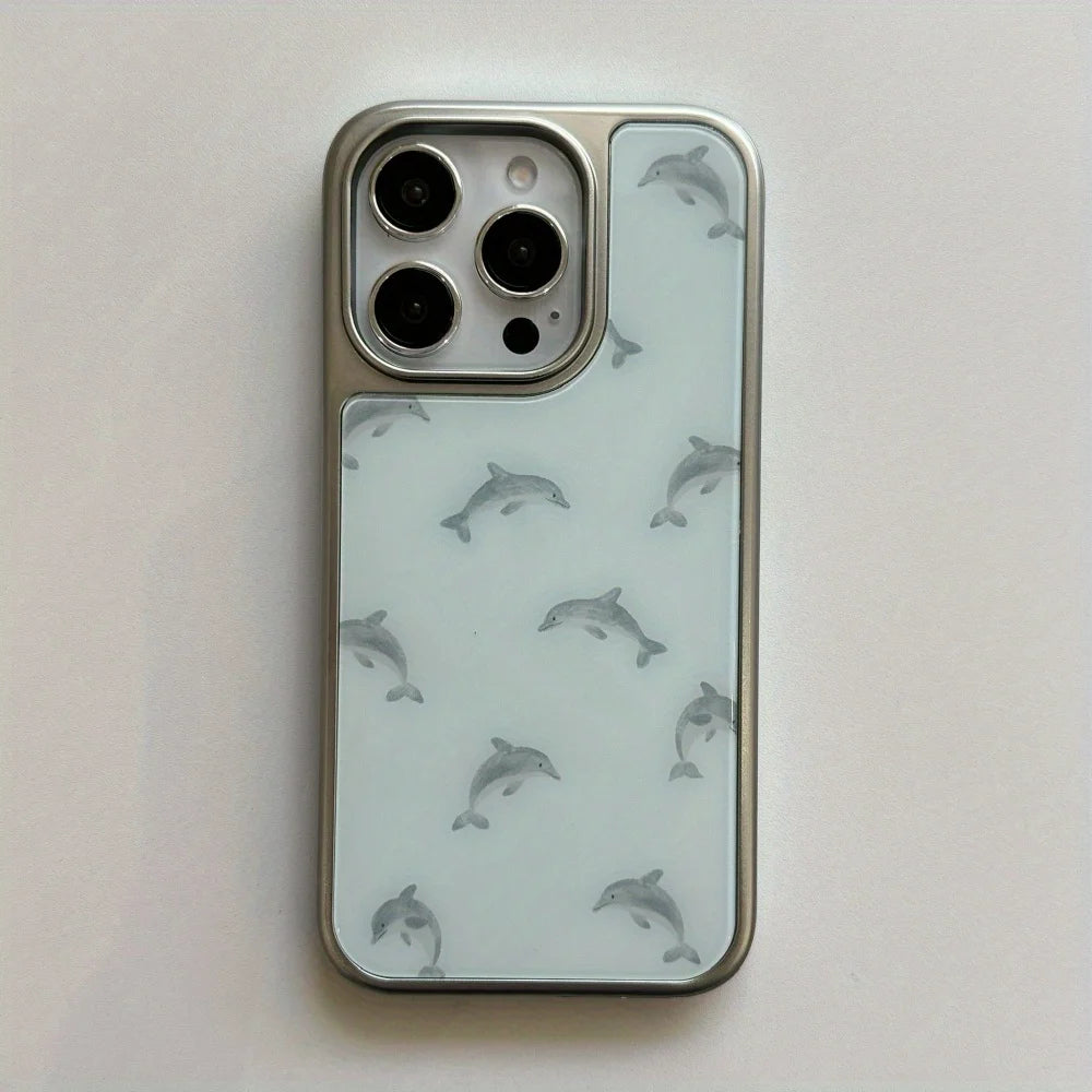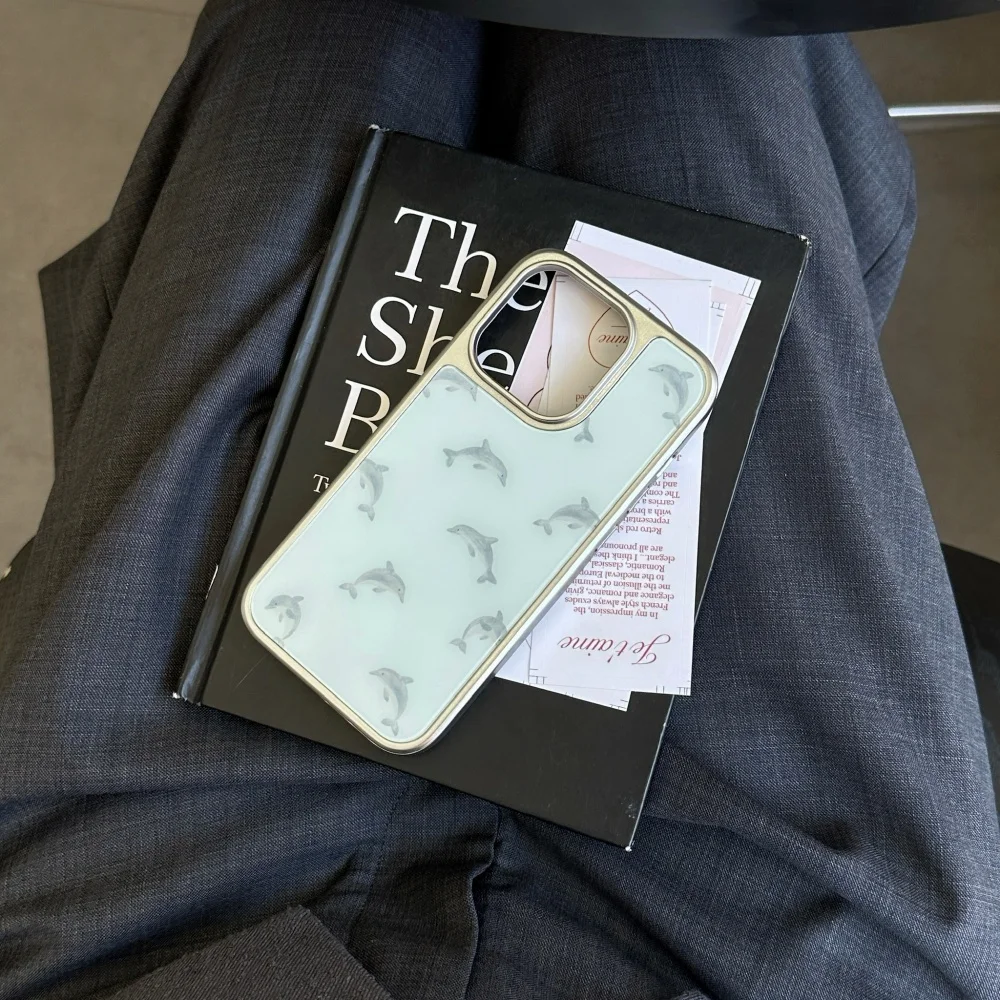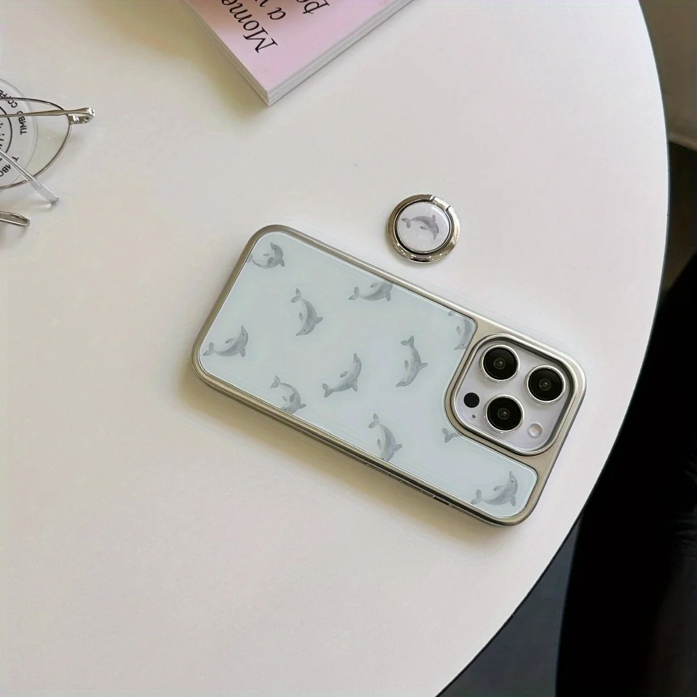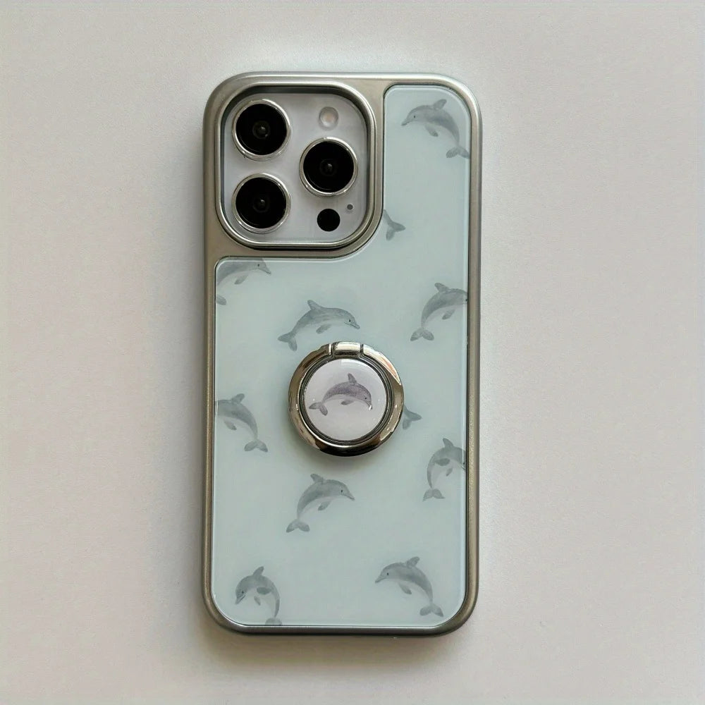 Qfdian Cute niche blue bottom dolphin ring bracket is suitable for Apple 16promax mobile phone case iPhone15pro new model