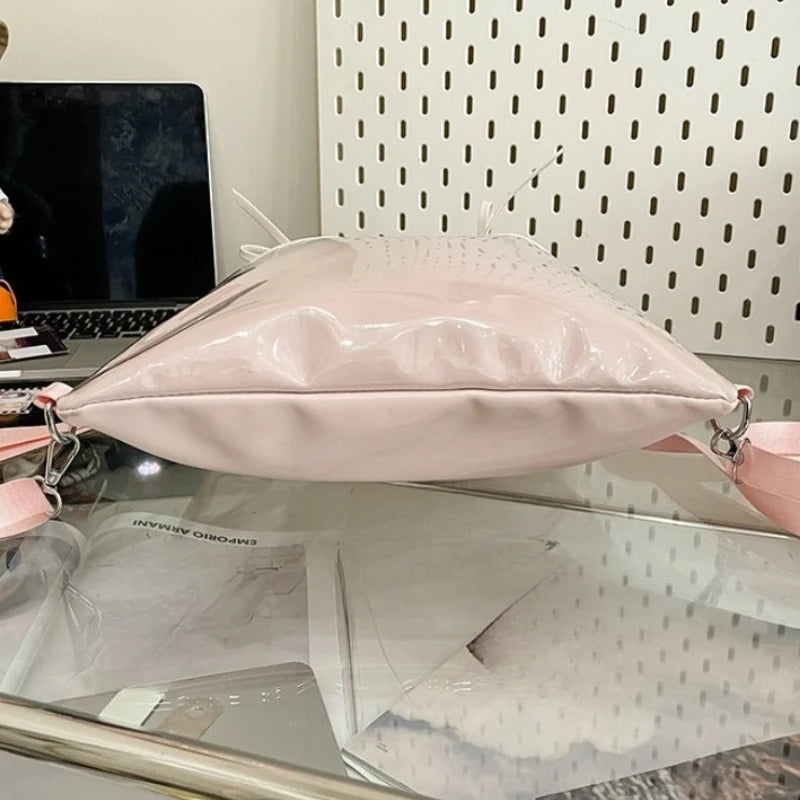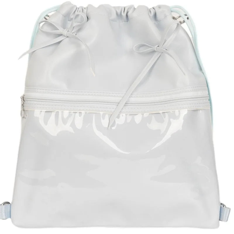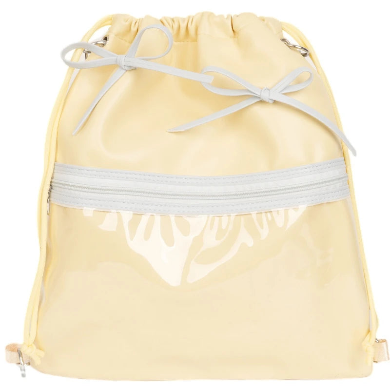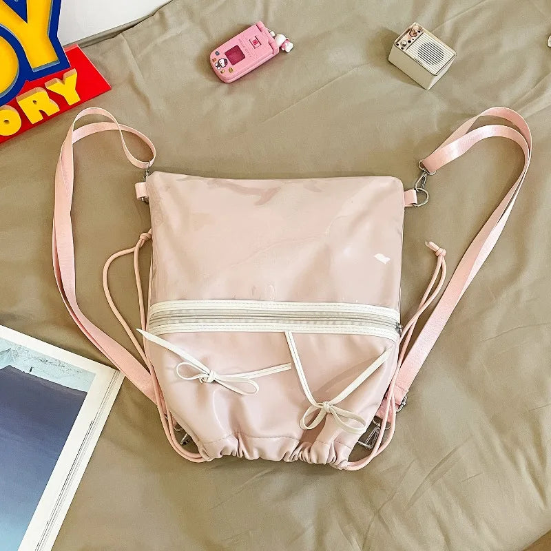 Drawstring Bow Pleated Shoulder Crossbody Bags Transparent Casual Travel Ita Bag Fashion Ins Sweet Women Backpacks Y2k Aesthetic