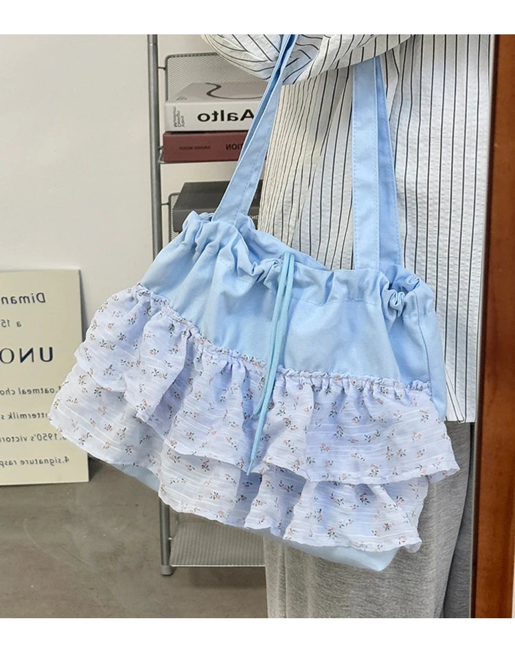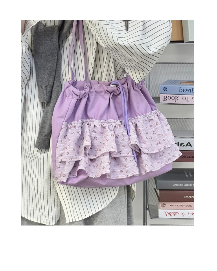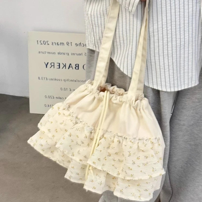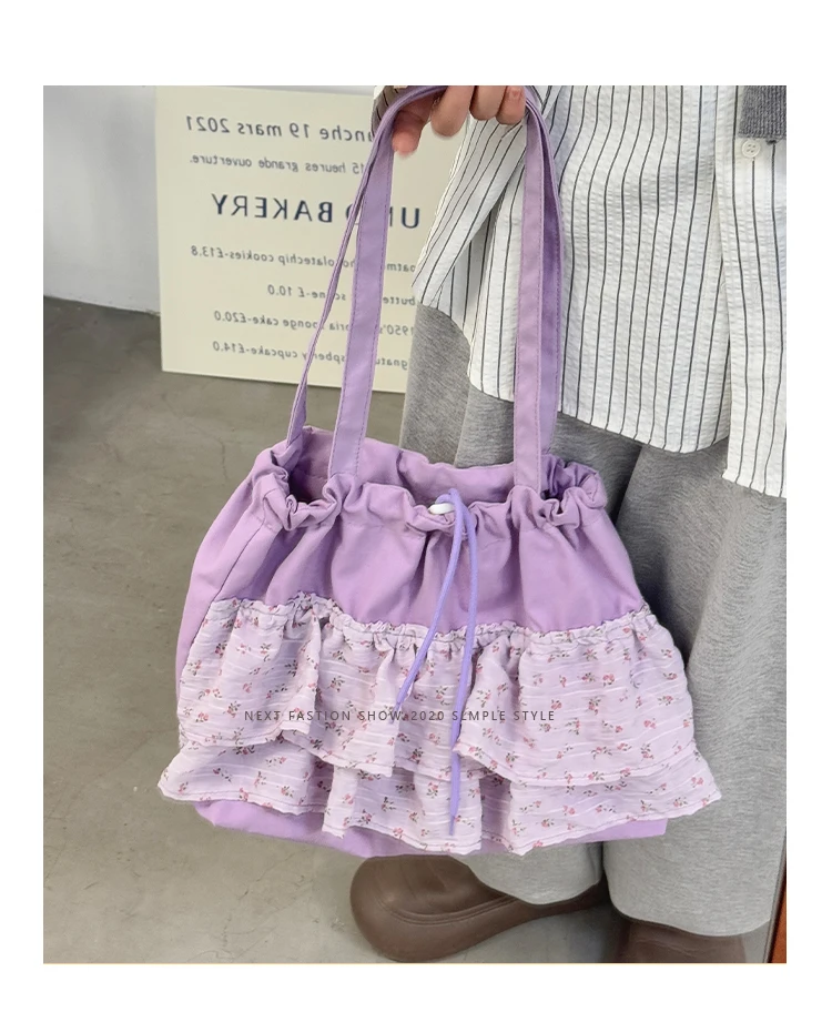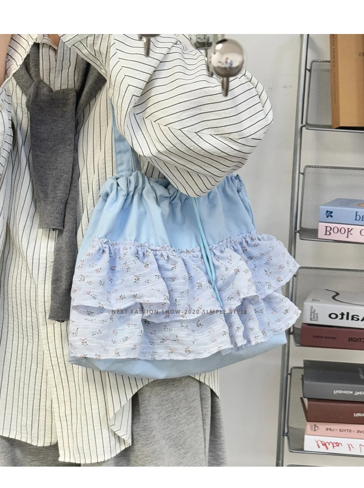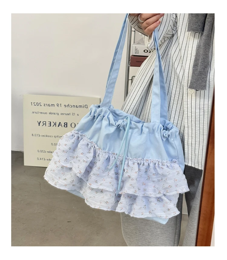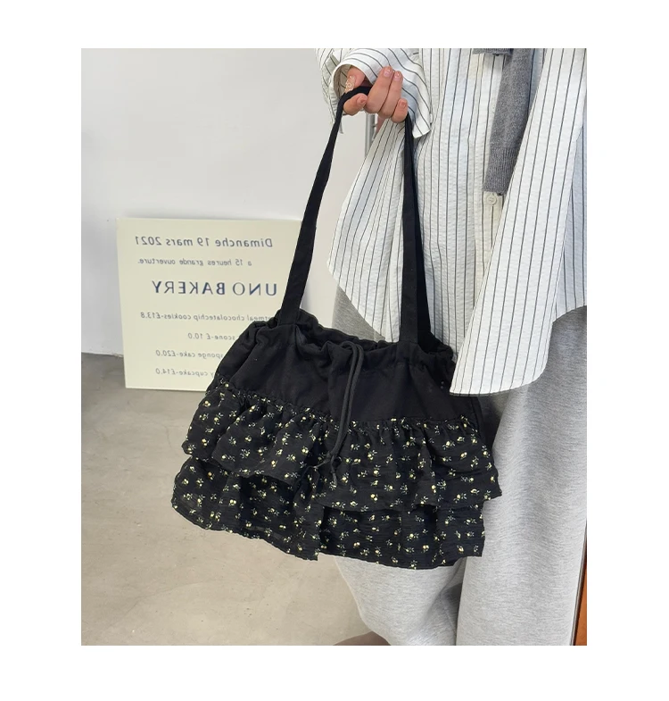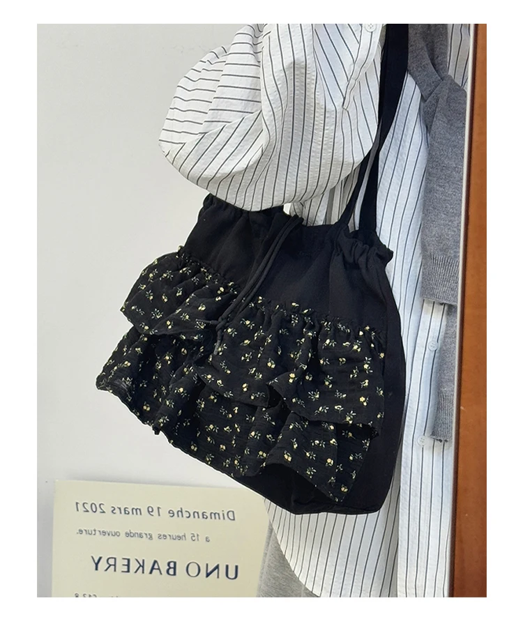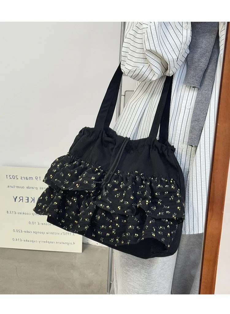 Qfdian Fashion Sweet Y2k Flower Print Shoulder Bags Casual All Match Chic Office Lady Women's Handbags Drawstring Pleated Underarm Bag