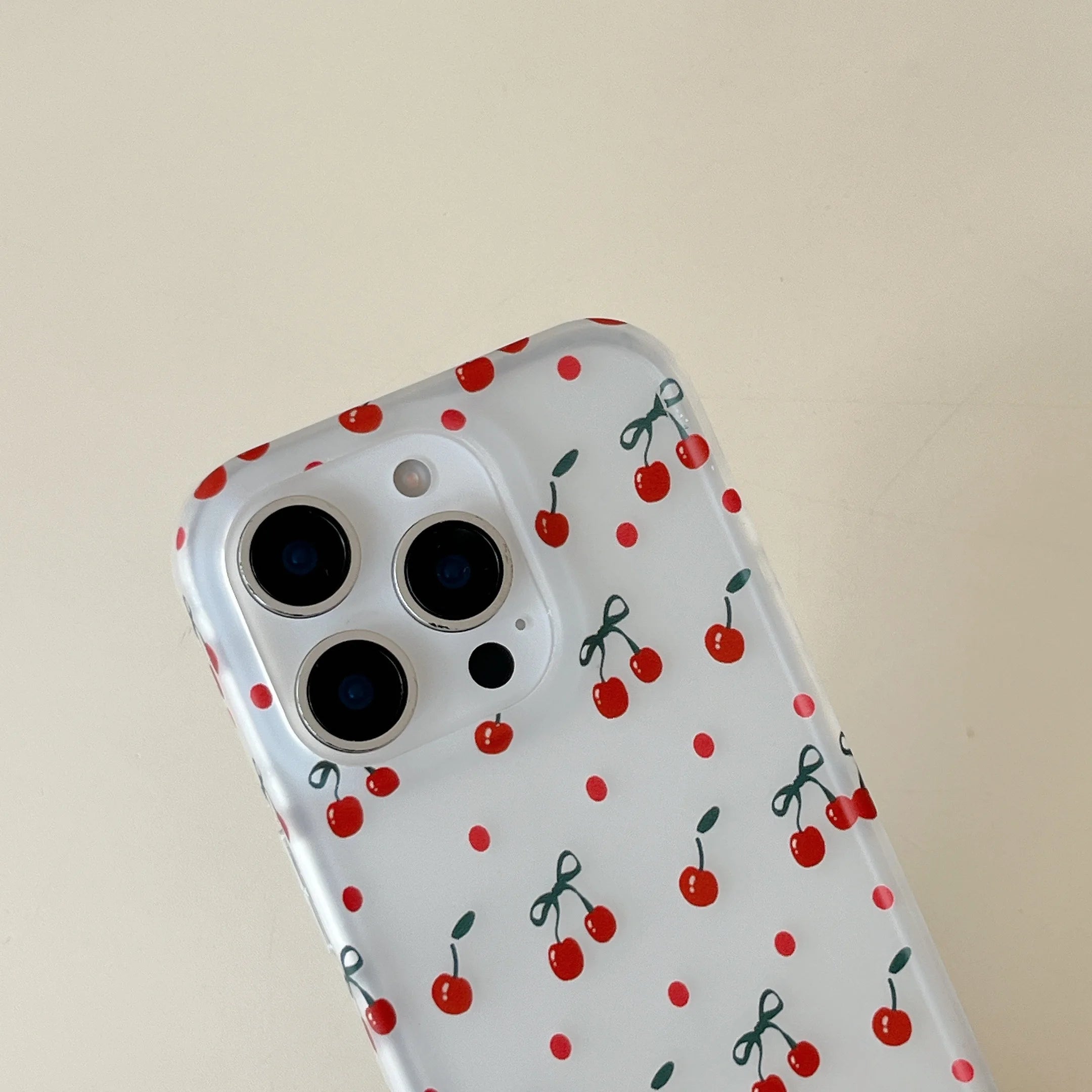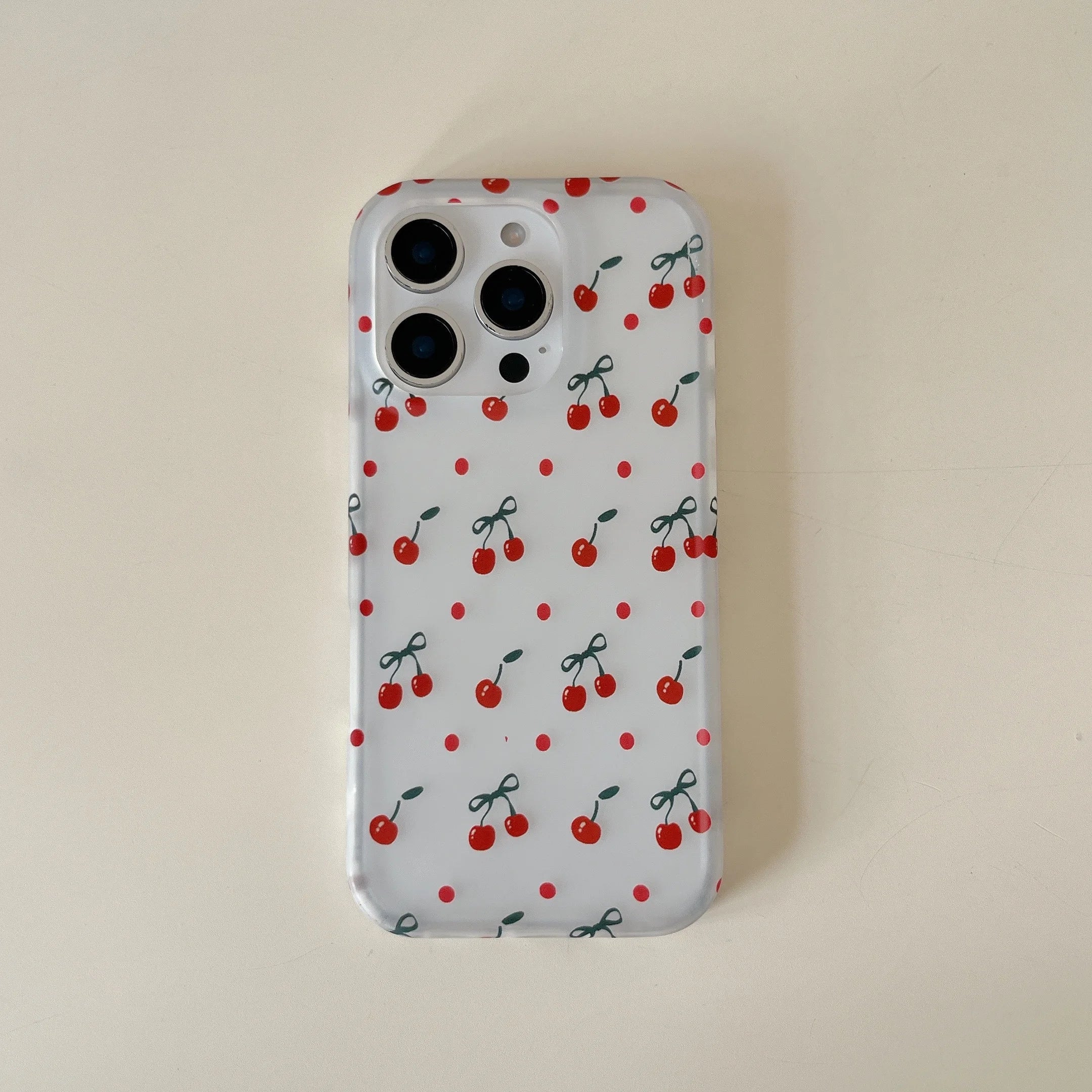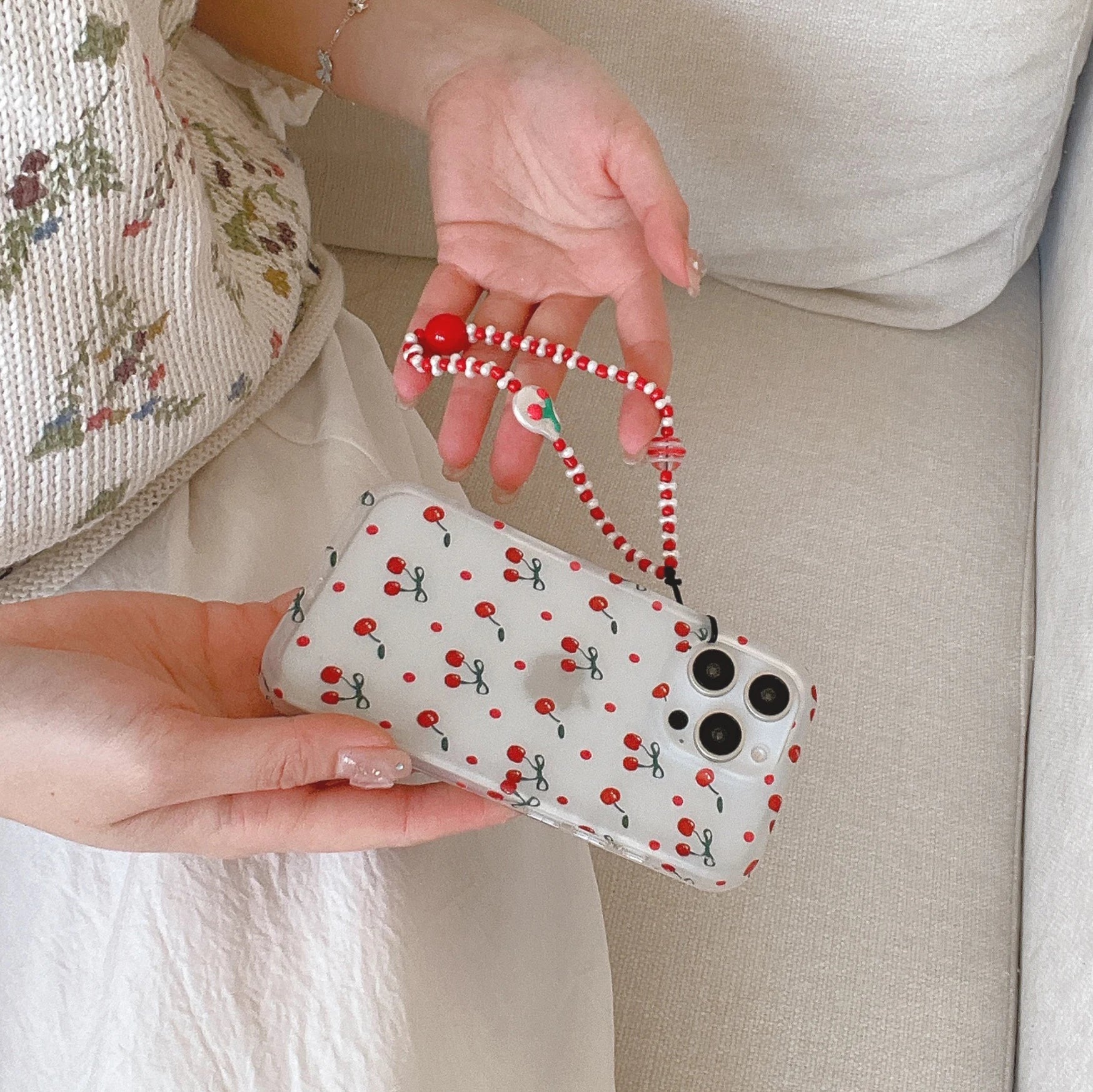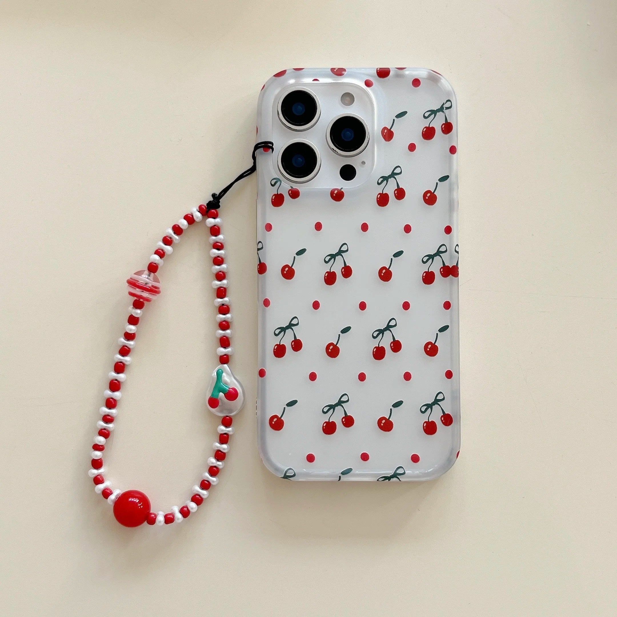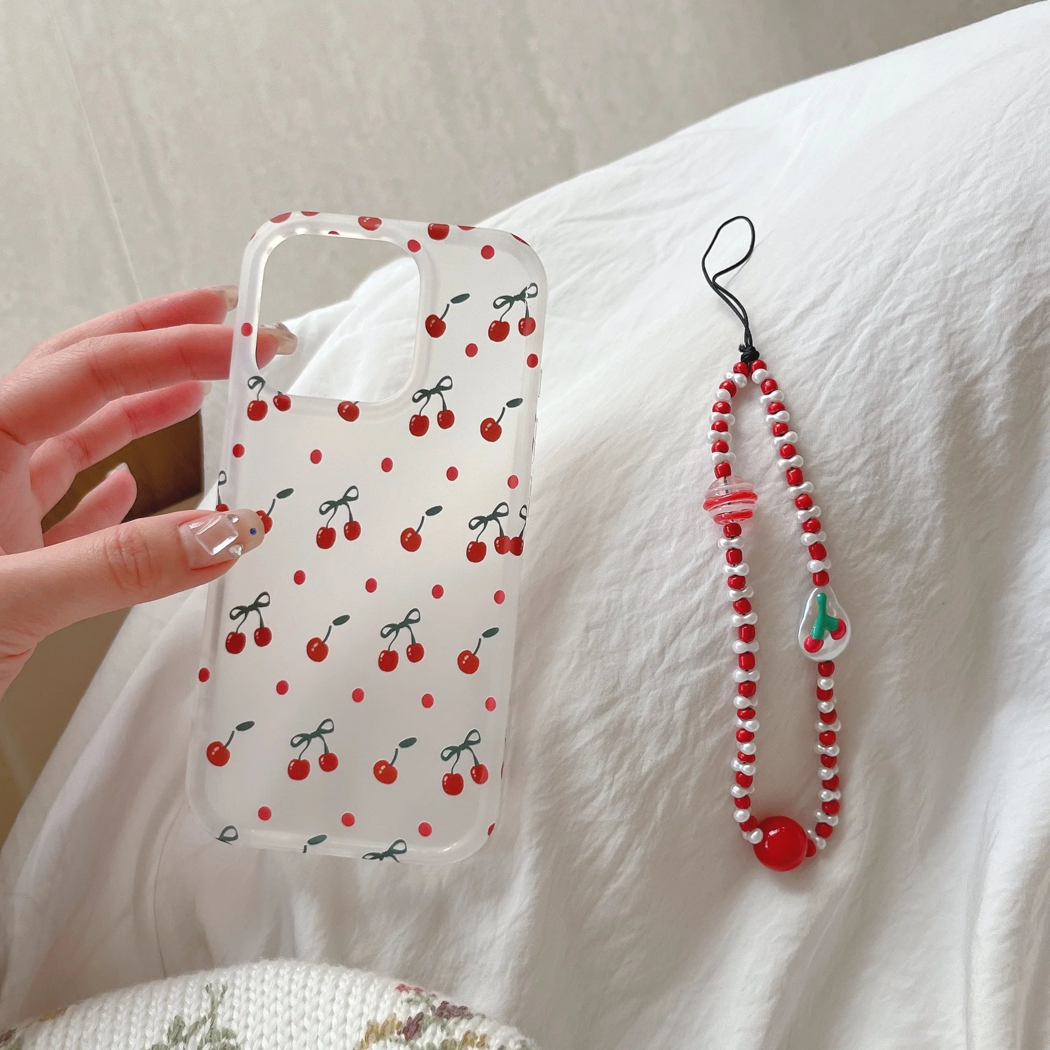 Qfdian INS Korea Cherry Fruit Phone Case For Iphone 15ProMax 16Pro 13 14 15 16 Pro Max Pendant Bracelet Fundas Cover