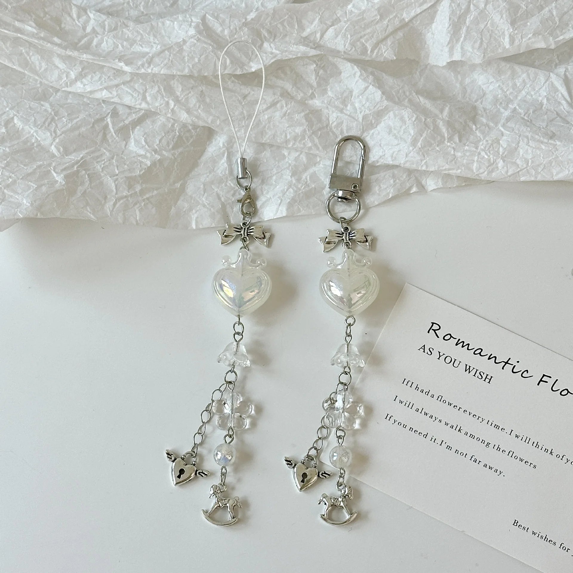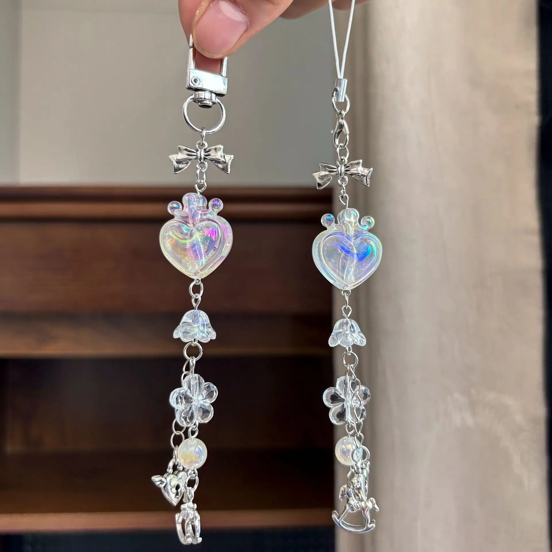Qfdian Laser Heart rocking horse Beaded Charm Phone Pendant Crystal Wristband Keychain Bracelet Lanyard Cord