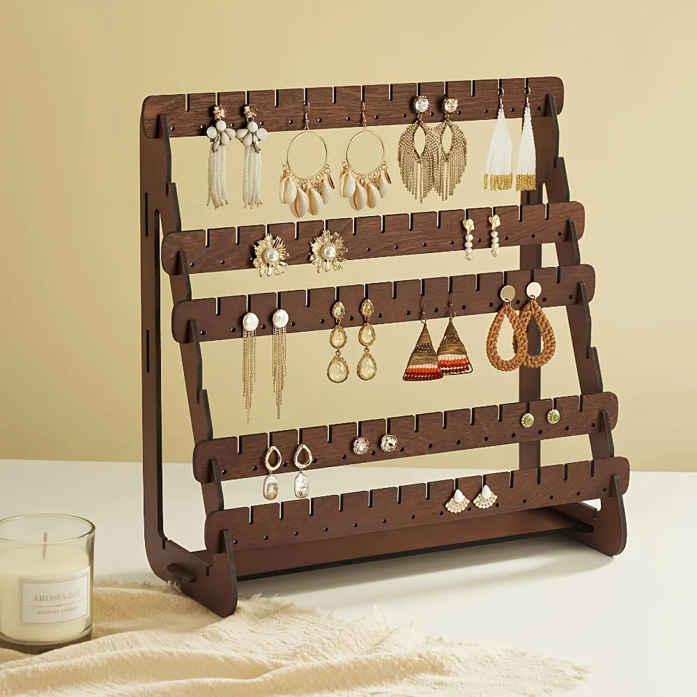 Qfdian Multilayer Solid Wooden Earring Stand Holder High-capacity Jewelry Storage Organizer Shelf Home Living Room Bedroom Desktop