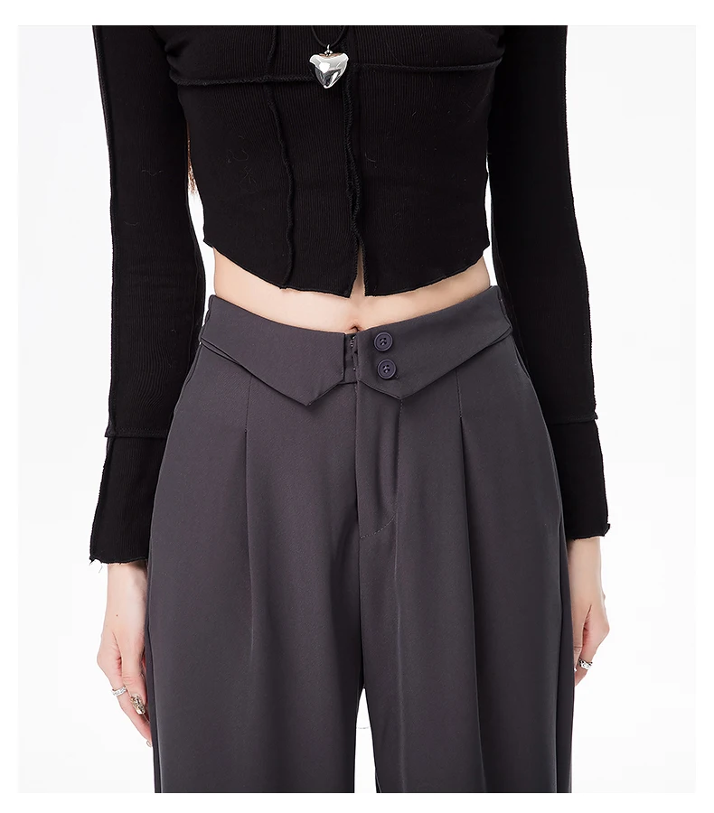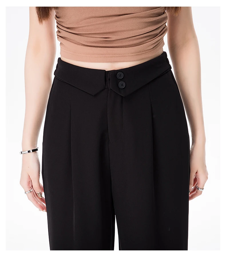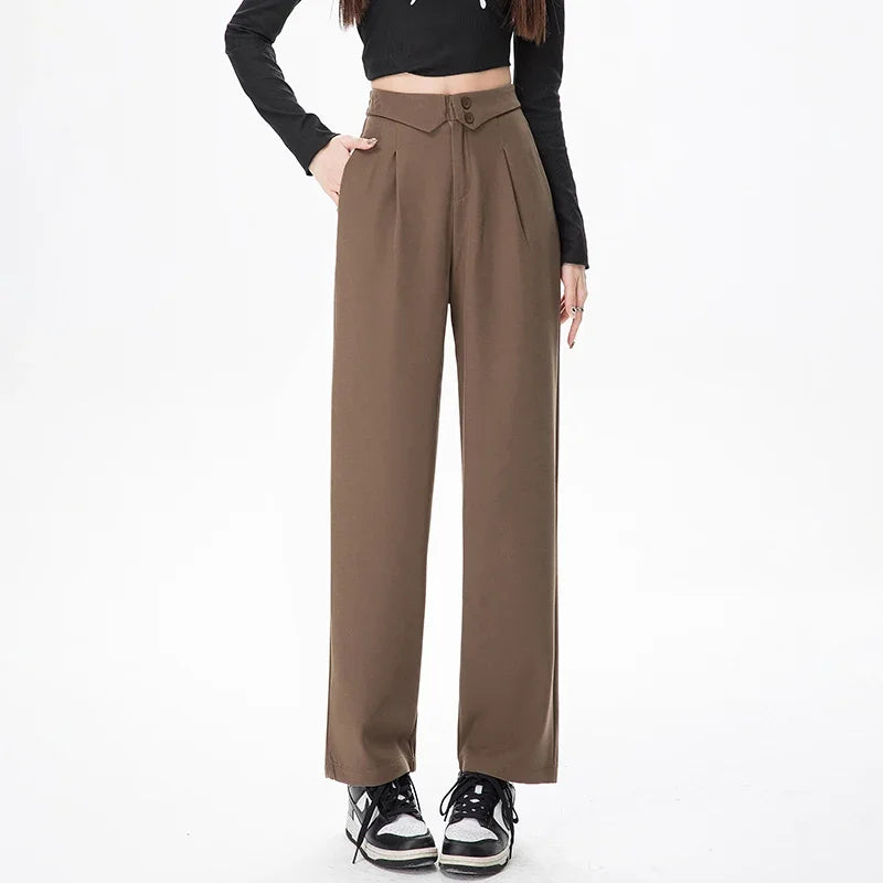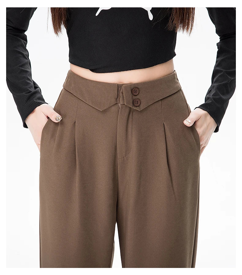 Qfdian Spring Korean Fashion Flipped Casual Women's Suit Pants New Solid Color Versatile Straight Leg Women Loose Wide Leg Pants