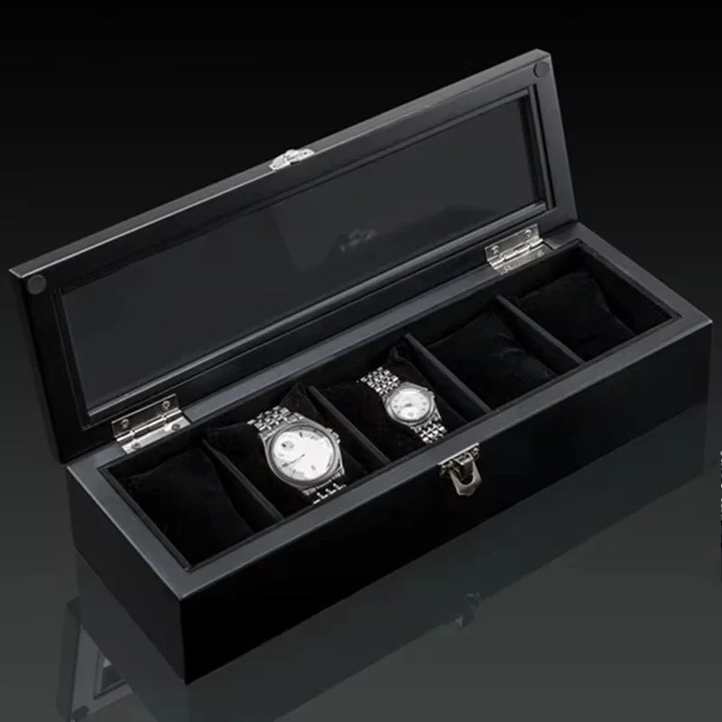 Qfdian  Wood Watch Organizer Box Men Luxury Jewelry Watch Storage Showcase New Fashion Glass Window Box Portable Watch Display Holder