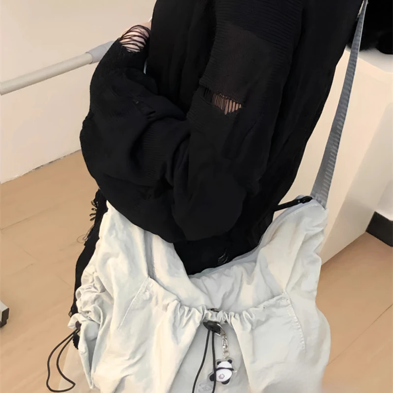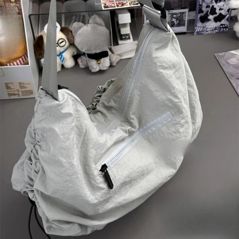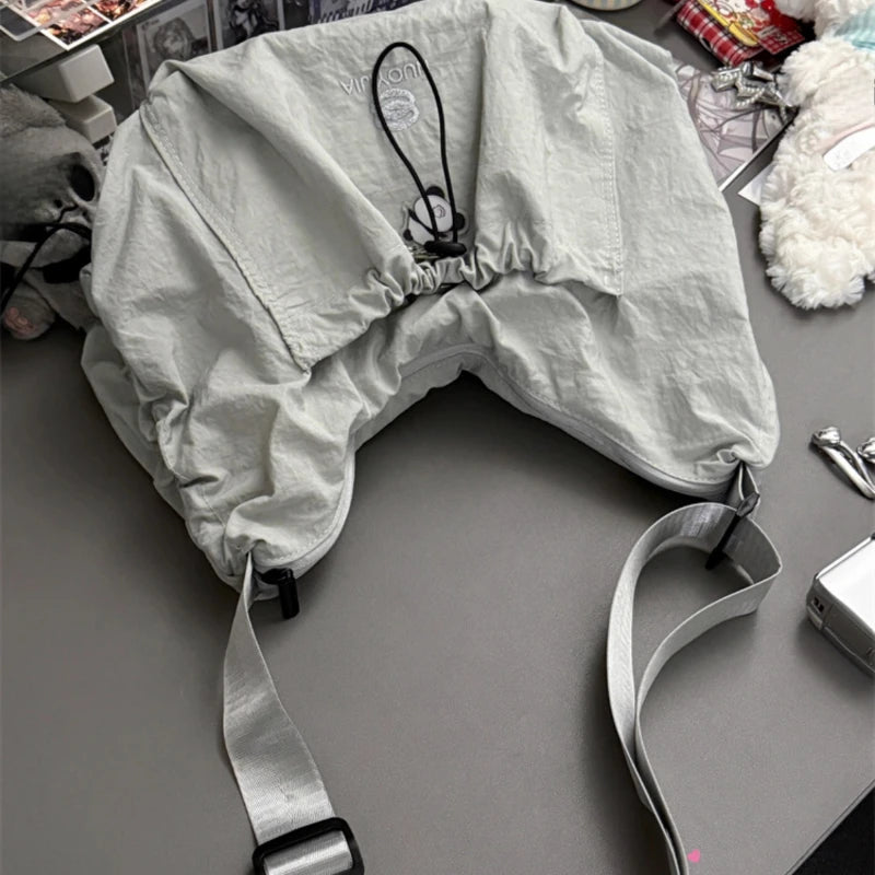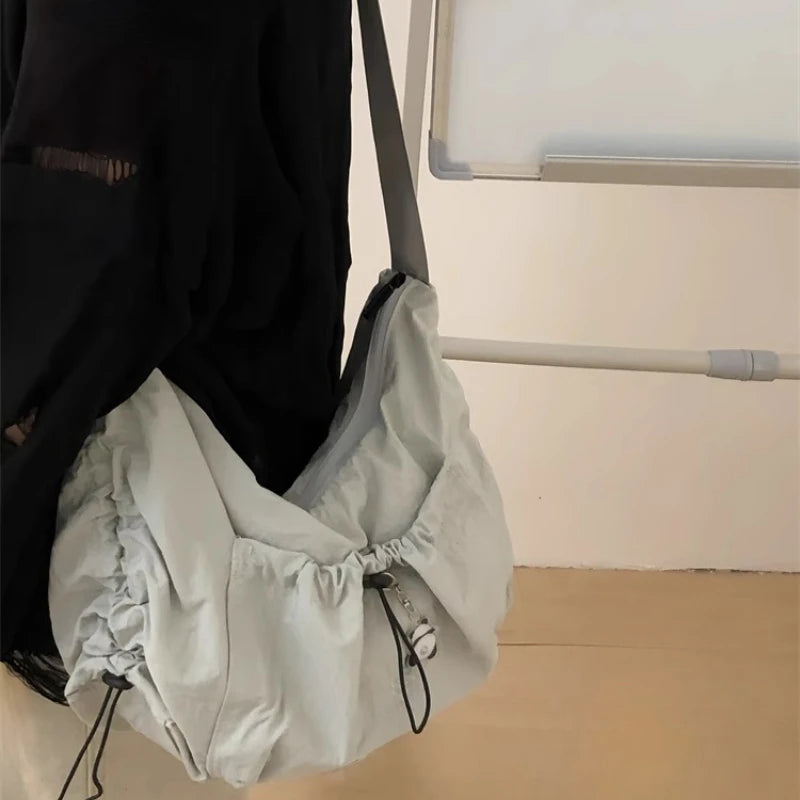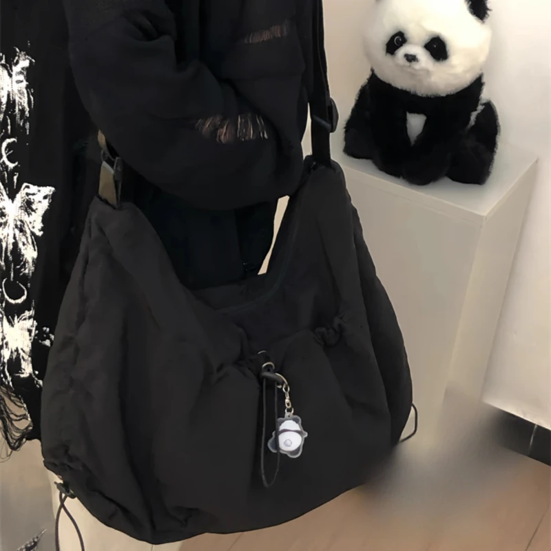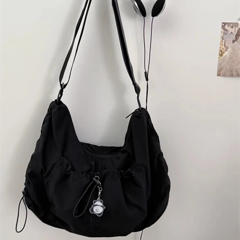 Qfdian  Y2k Aesthetic Vintage All Match Handbags Casual Women Drawstring Pleated Shoulder Bag Simple Streetwear Crossbody Bags Trendy