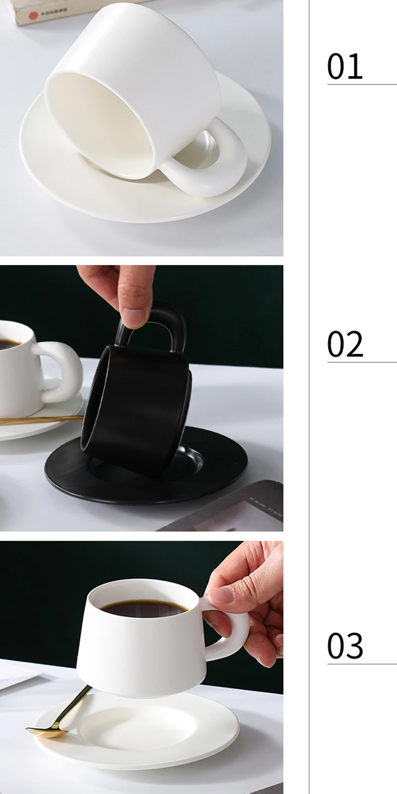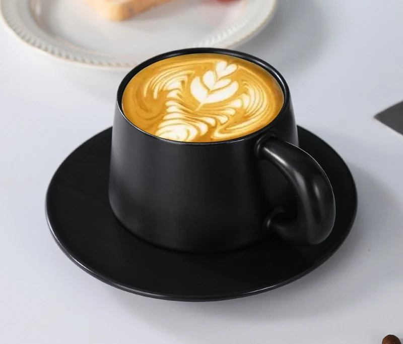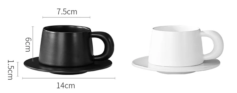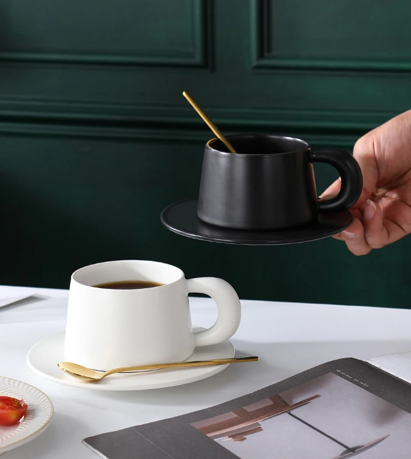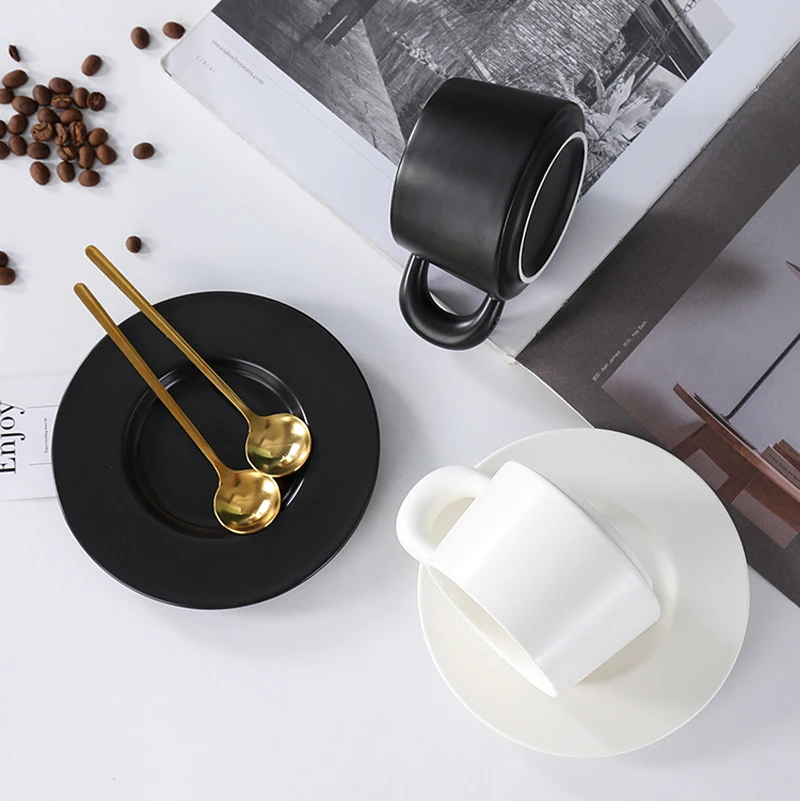 Qfdian 1pc Black/White Mug Ceramic Home Dining Table Office Restaurant Supplies Breakfast Afternoon Tea Milk Water Coffee Cup Plate Set