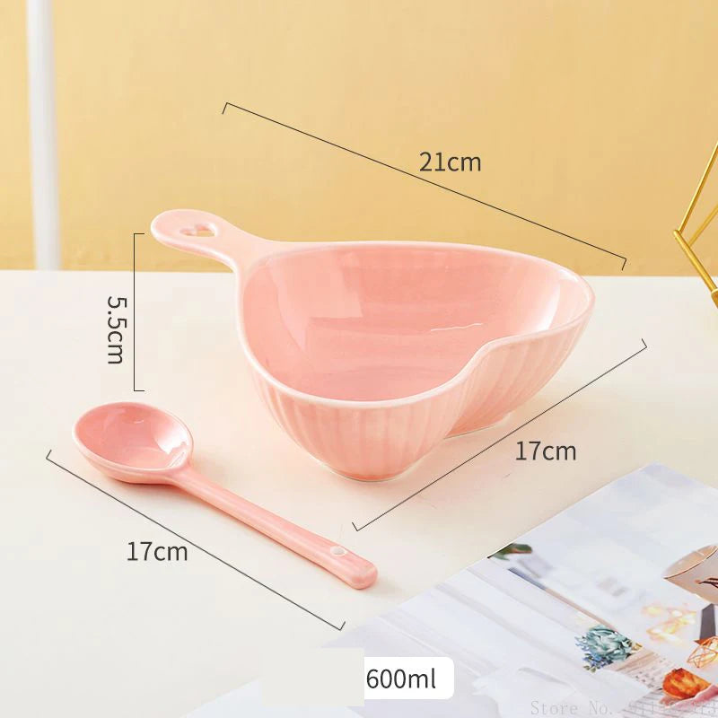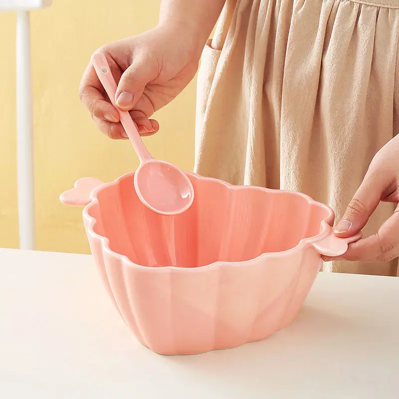 Qfdian 1pc Creative New Style Ceramic Tableware Household Kitchen Restaurant Supplies Anti Scalding Double Ear Pink Cute Love Soup Bowl