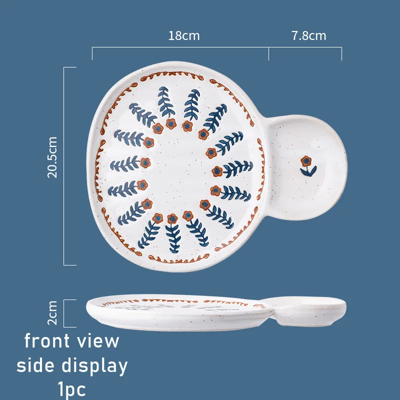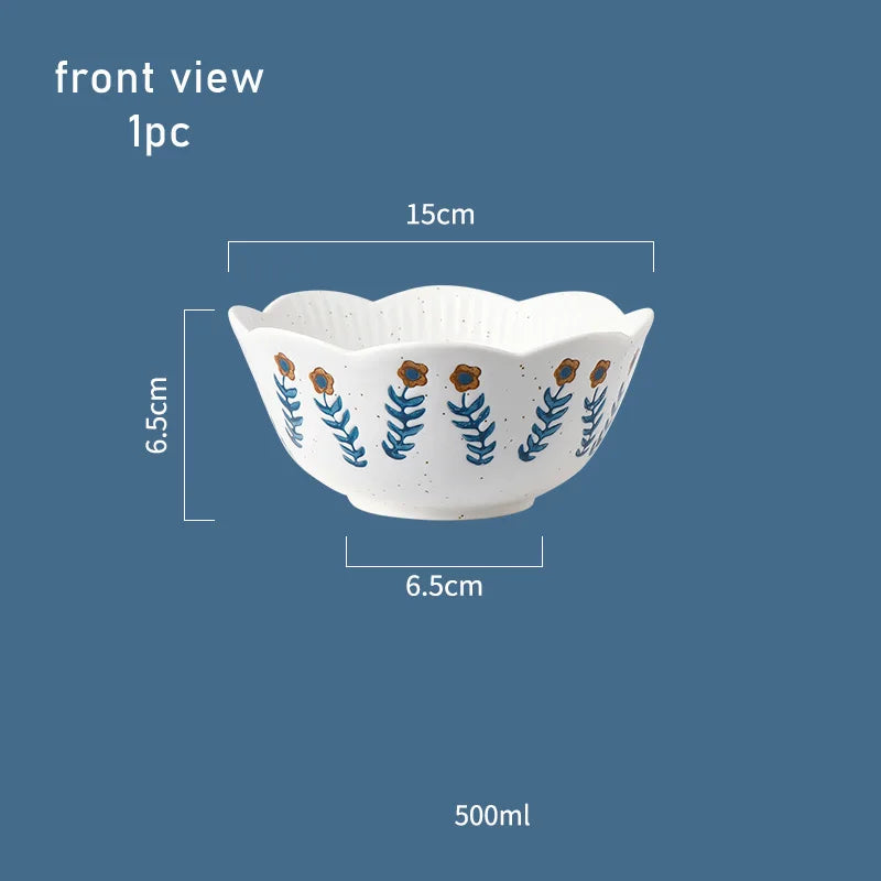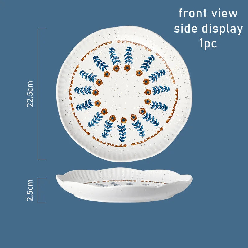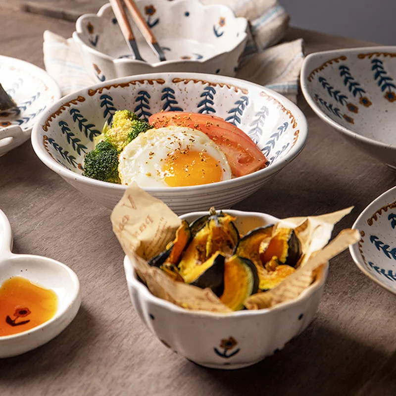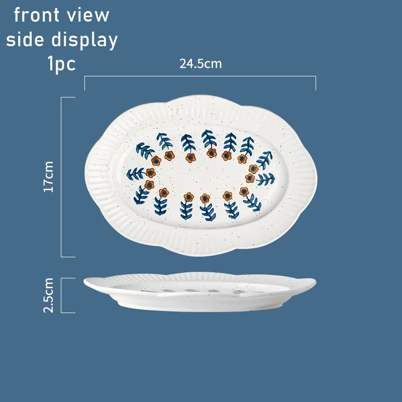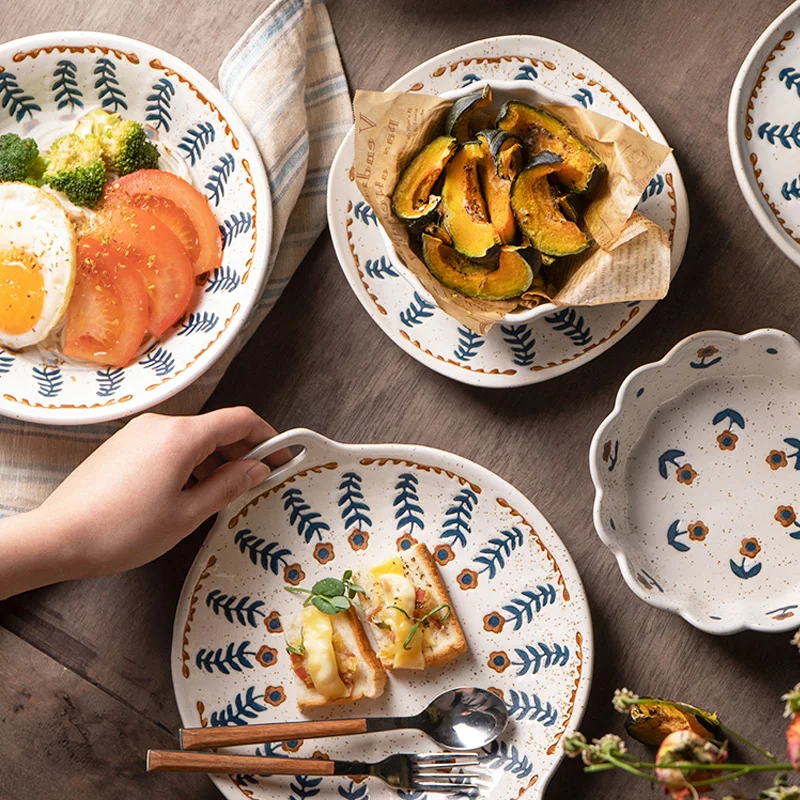 Qfdian Japanese Hand-painted Flower Tableware, Ceramic Dessert Dishes, Dessert Pastry, Heart, amphora Plate, Lace Bowl, Retro, Creative