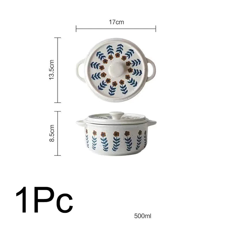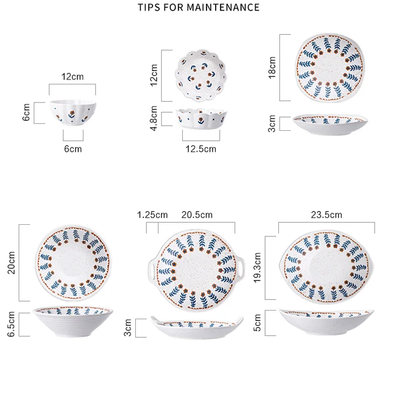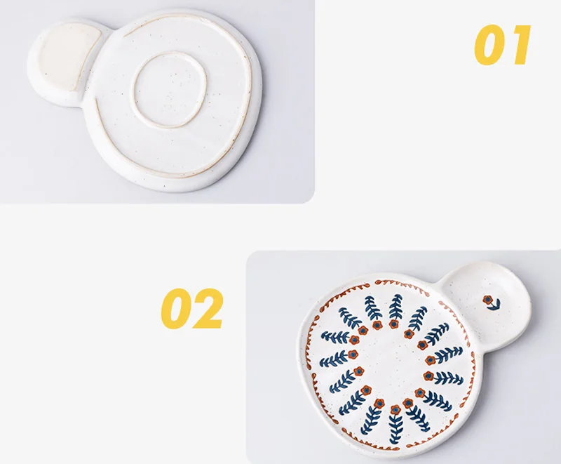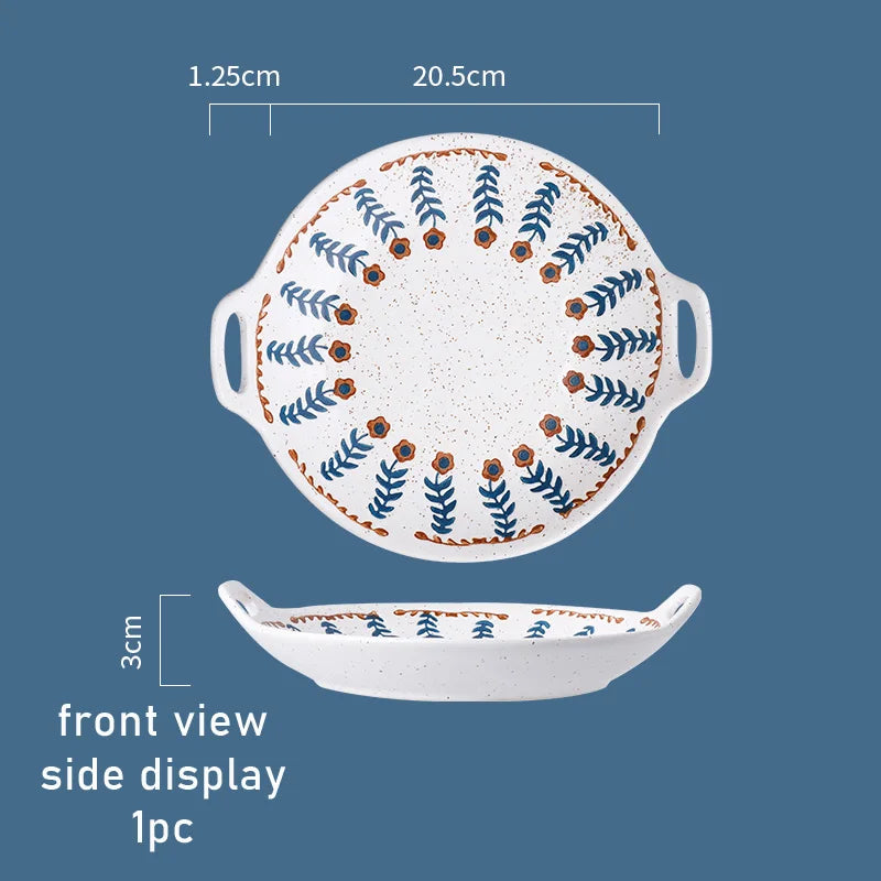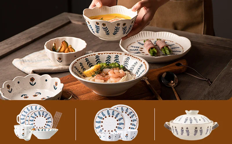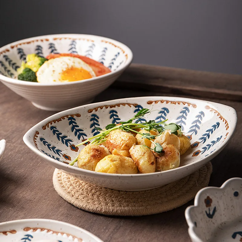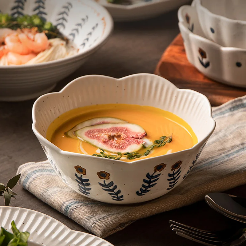 Qfdian Japanese Hand-painted Flower Tableware, Ceramic Dessert Dishes, Dessert Pastry, Heart, amphora Plate, Lace Bowl, Retro, Creative