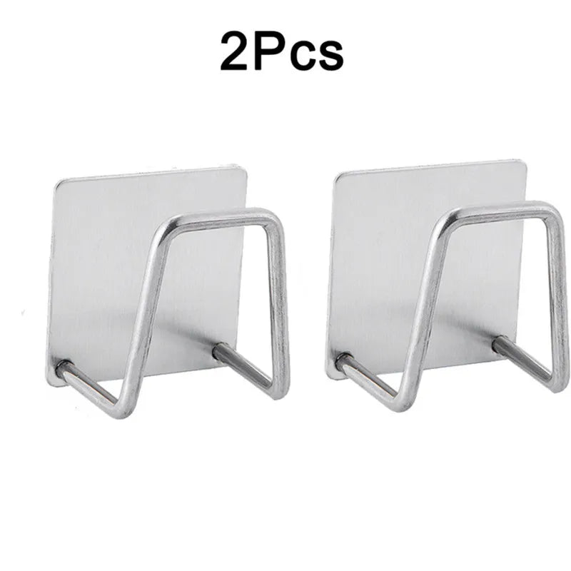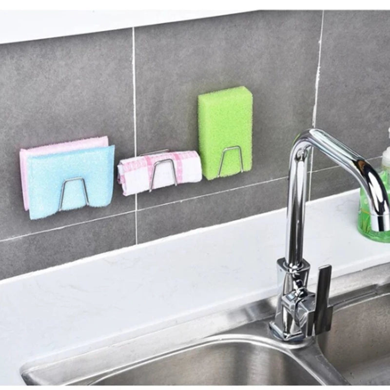 Qfdian Kitchen Sink Accessories organizer shelf Sponges Drain Drying Rack Stainless Steel Kitchen Sponges Holder Self Adhesive Sink