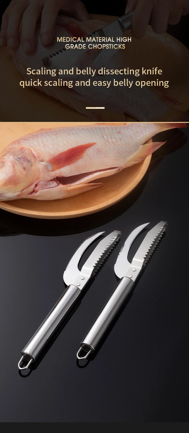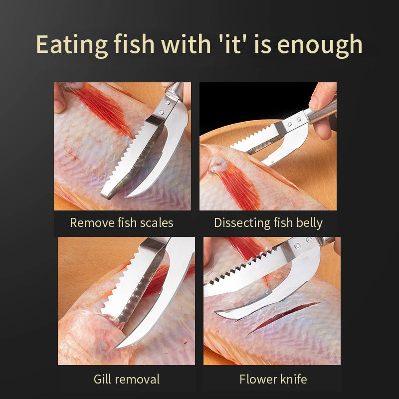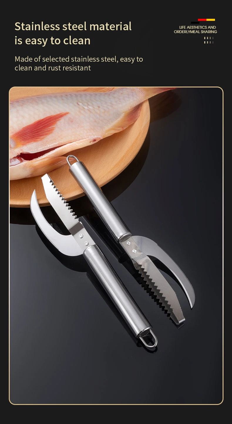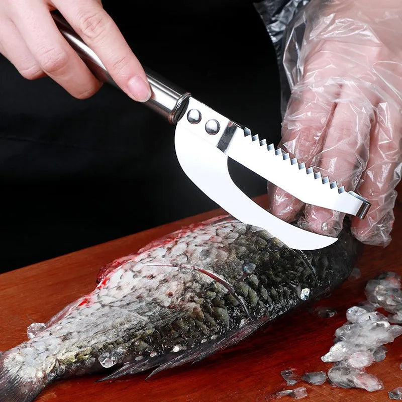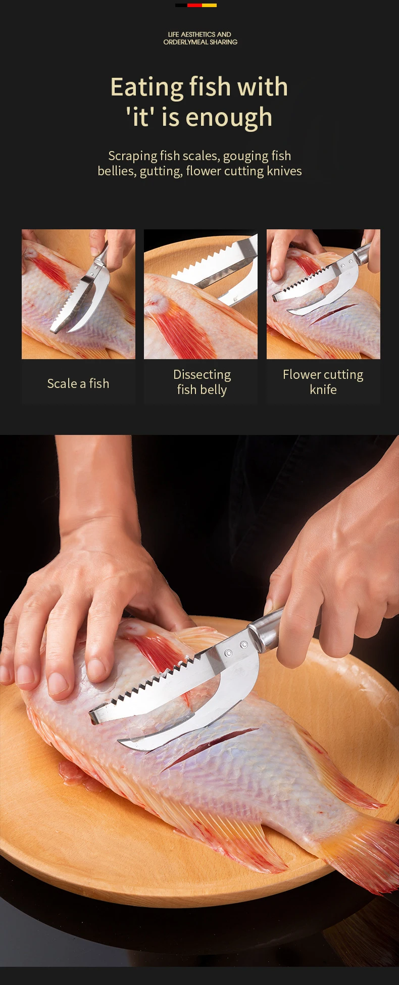 Qfdian Stainless Steel 3 in 1 Fish Scale Knife Sawtooth Peelers Scraping Boning Filleting Fish Scale Remover Tools Kitchen Accesories